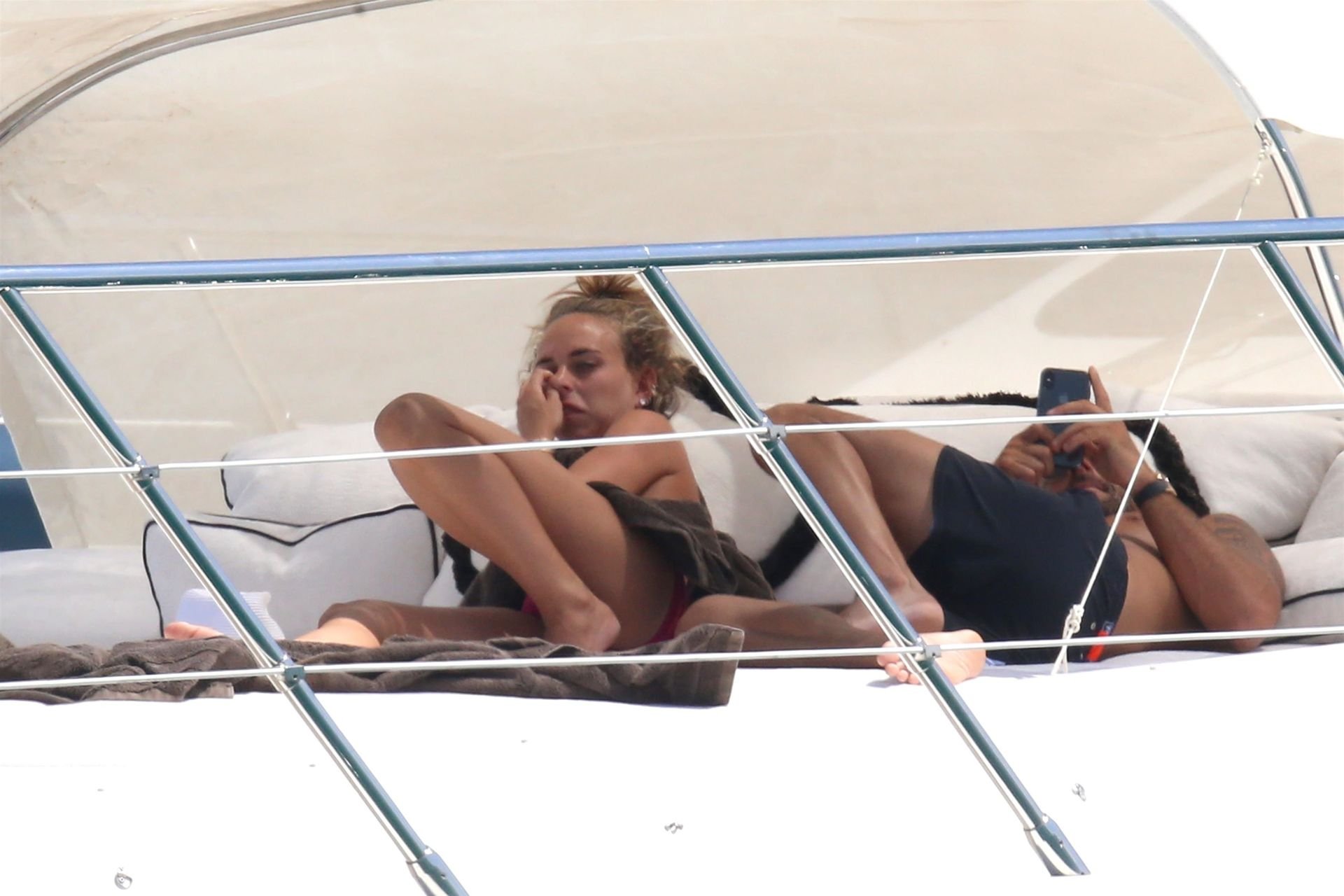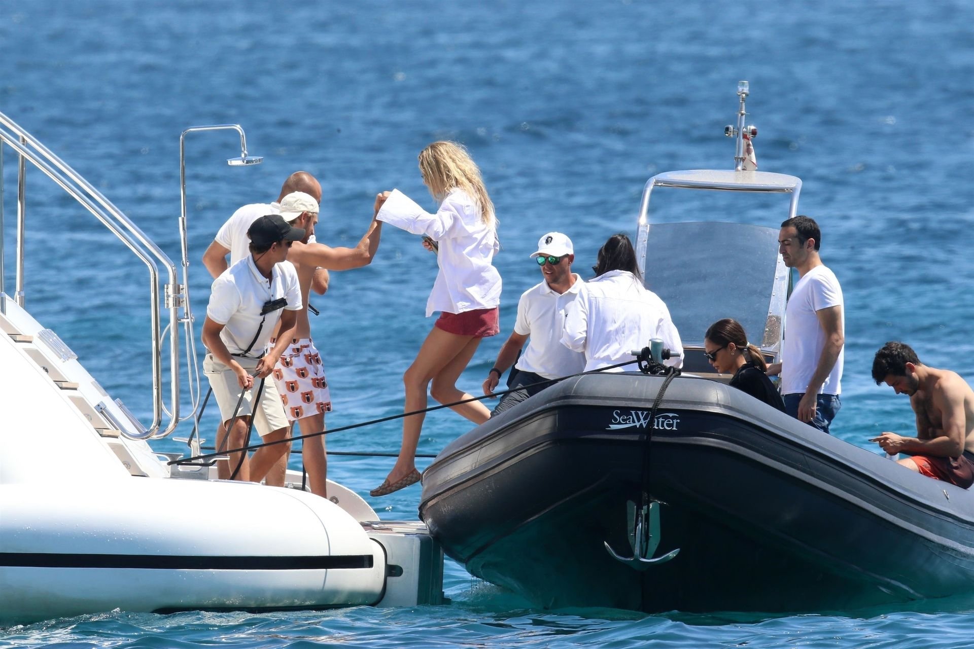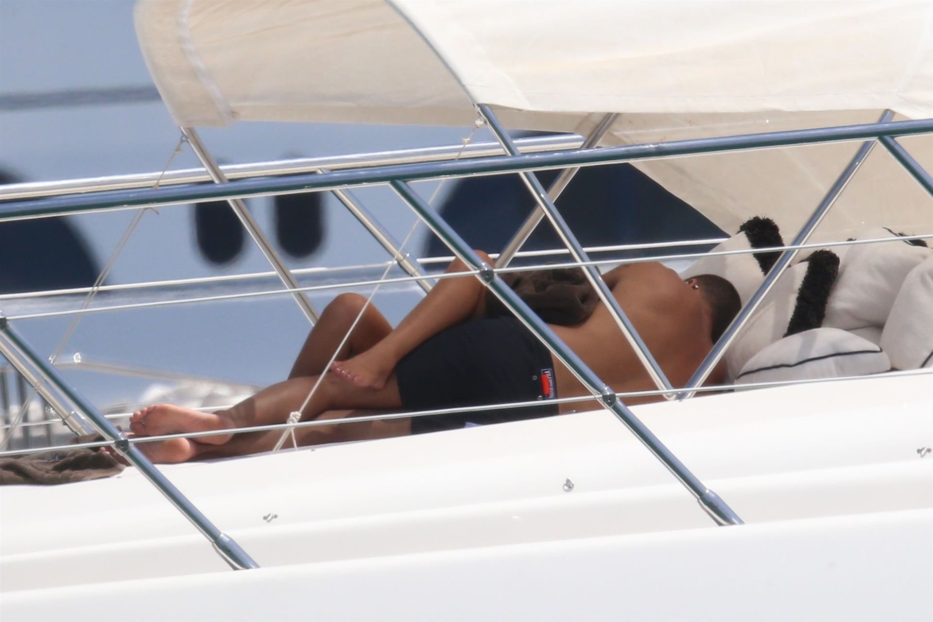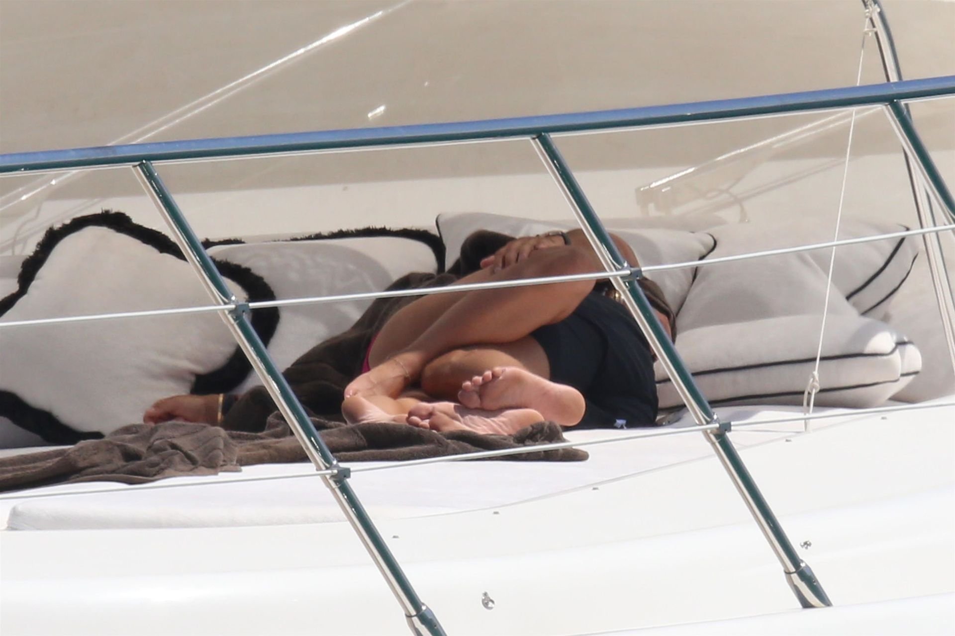 Chloe Green desnuda y un hombre desconocido se acercan mientras descansan en el mega yate Lion Heart de su padre en Cerdeña, Italia, 11/08/2019. La hija del multimillonario Philip Green fue vista recientemente sin el anillo de compromiso de su “Prófugo Sexy” Jeremy Meeks y, por lo que parece, ha seguido adelante.