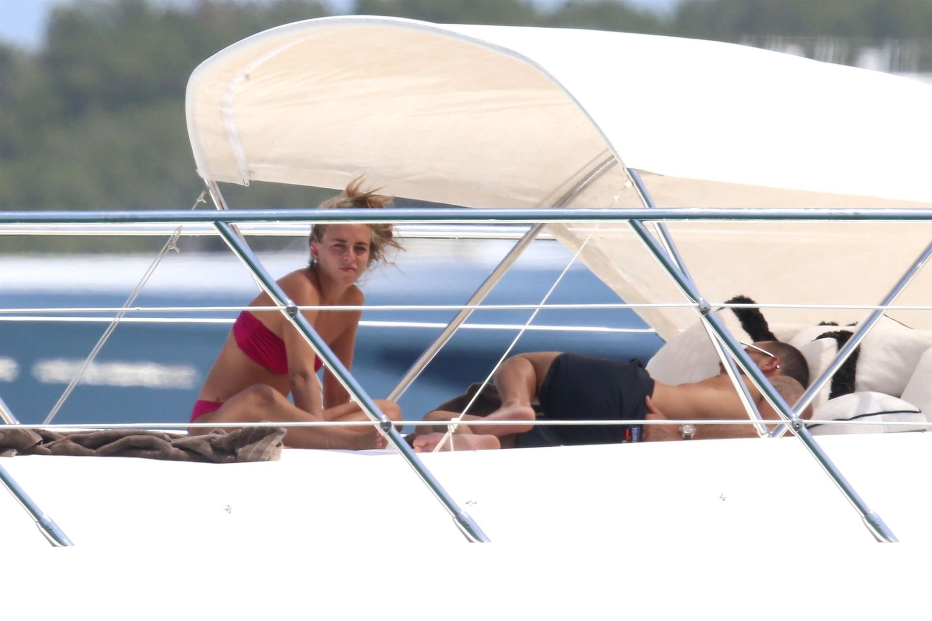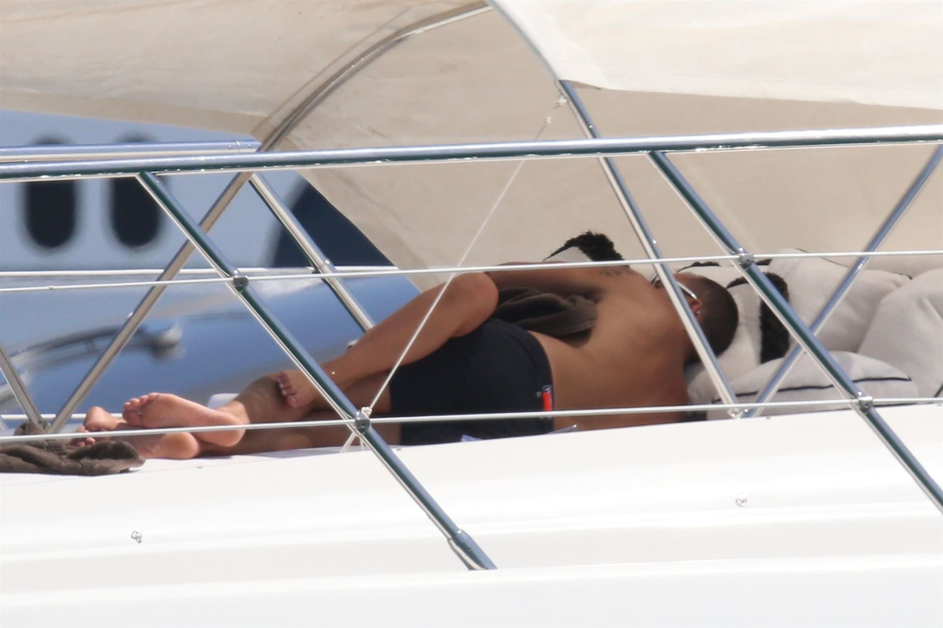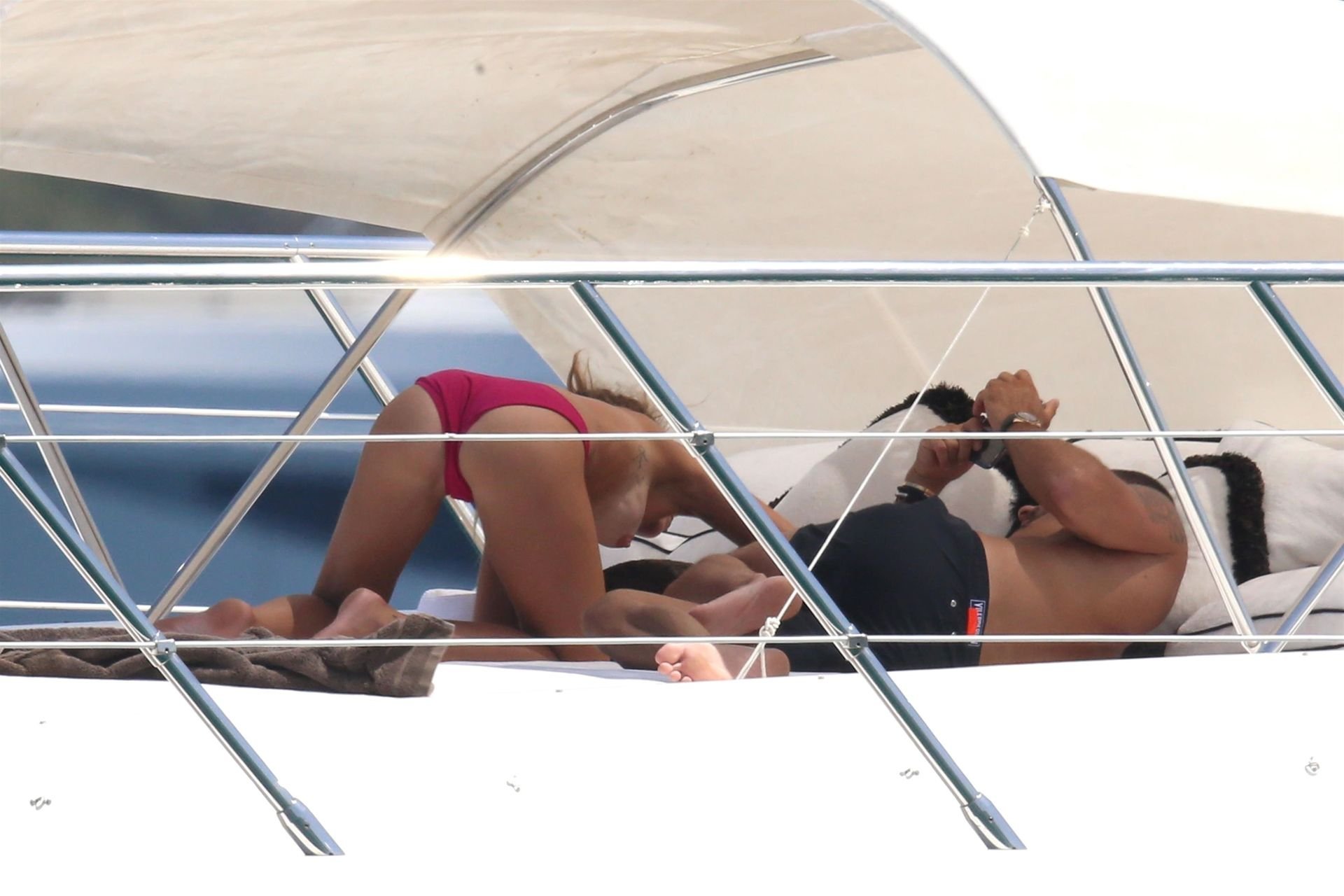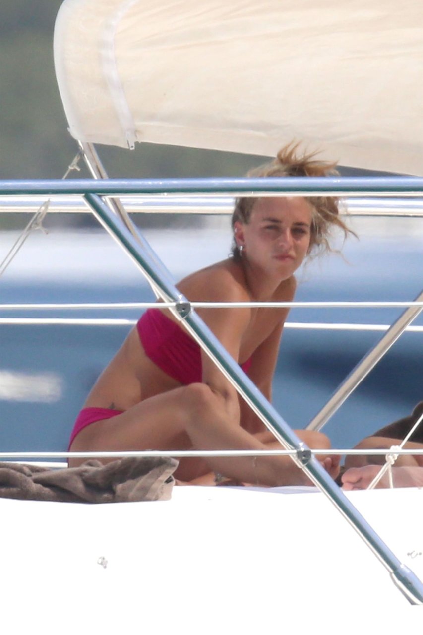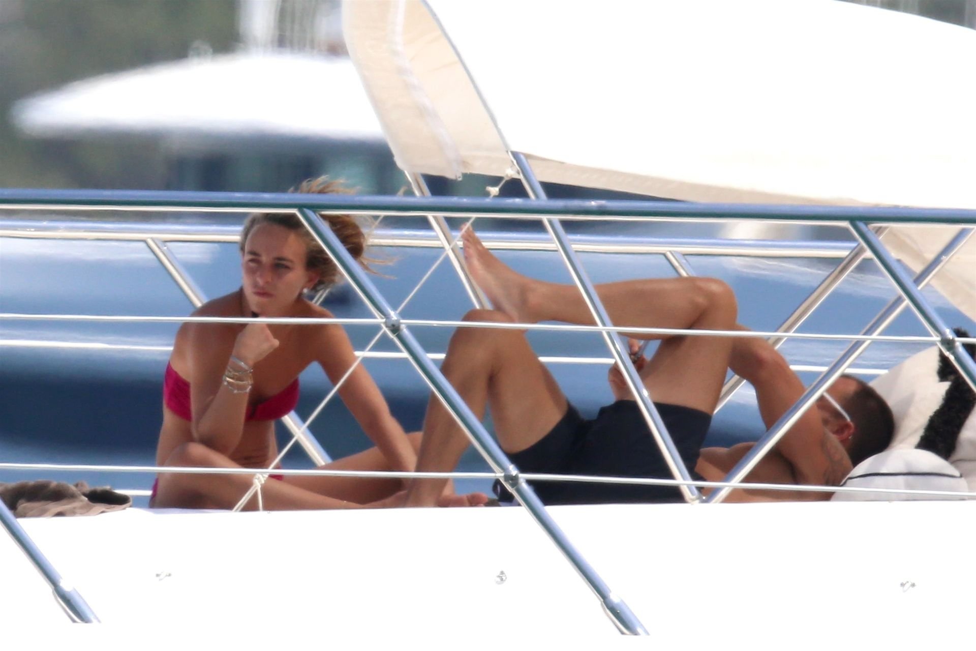 Chloe Green desnuda y un hombre desconocido se acercan mientras descansan en el mega yate Lion Heart de su padre en Cerdeña, Italia, 11/08/2019. La hija del multimillonario Philip Green fue vista recientemente sin el anillo de compromiso de su “Prófugo Sexy” Jeremy Meeks y, por lo que parece, ha seguido adelante.