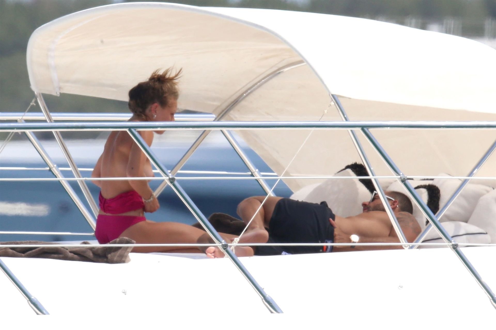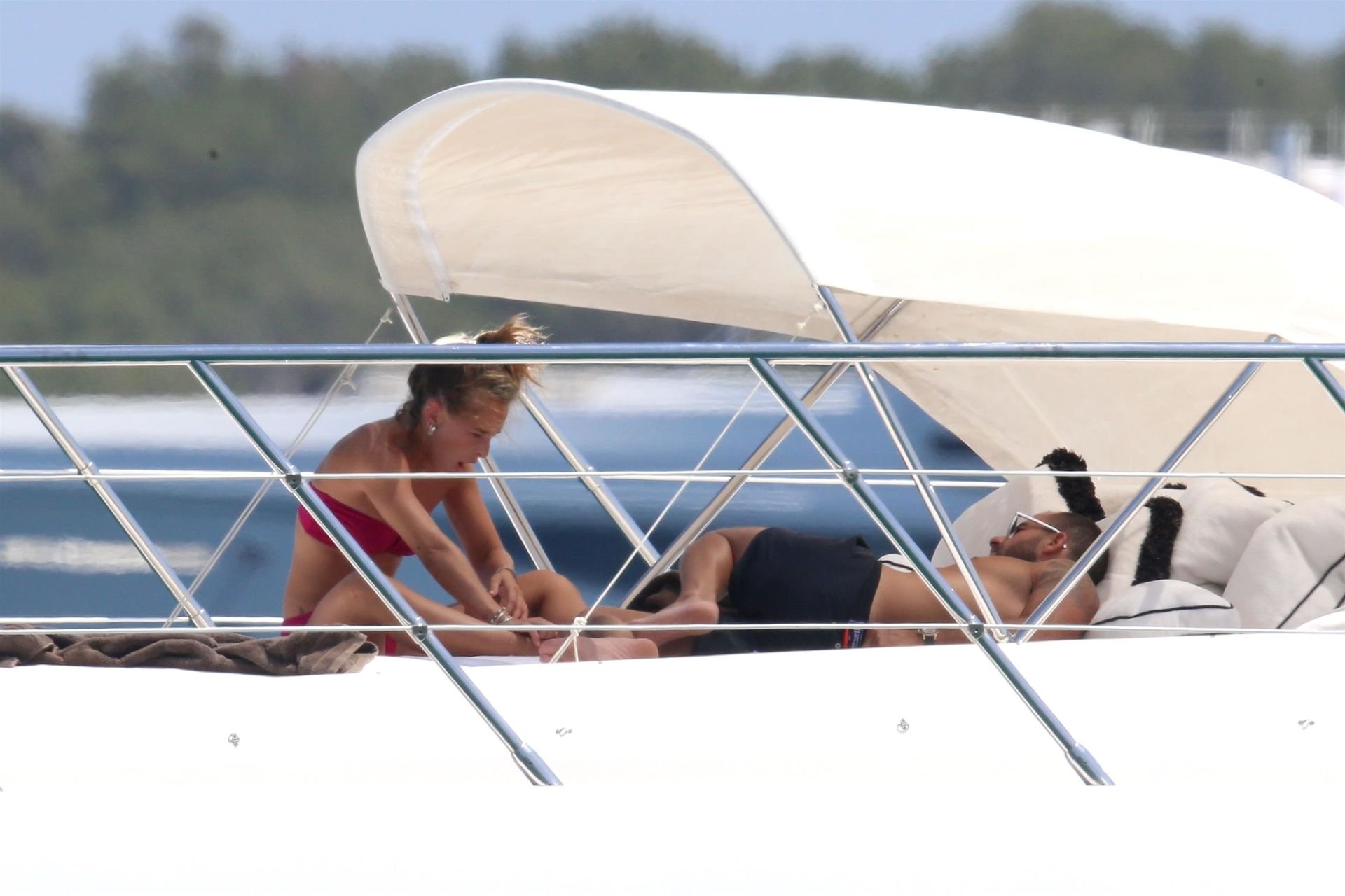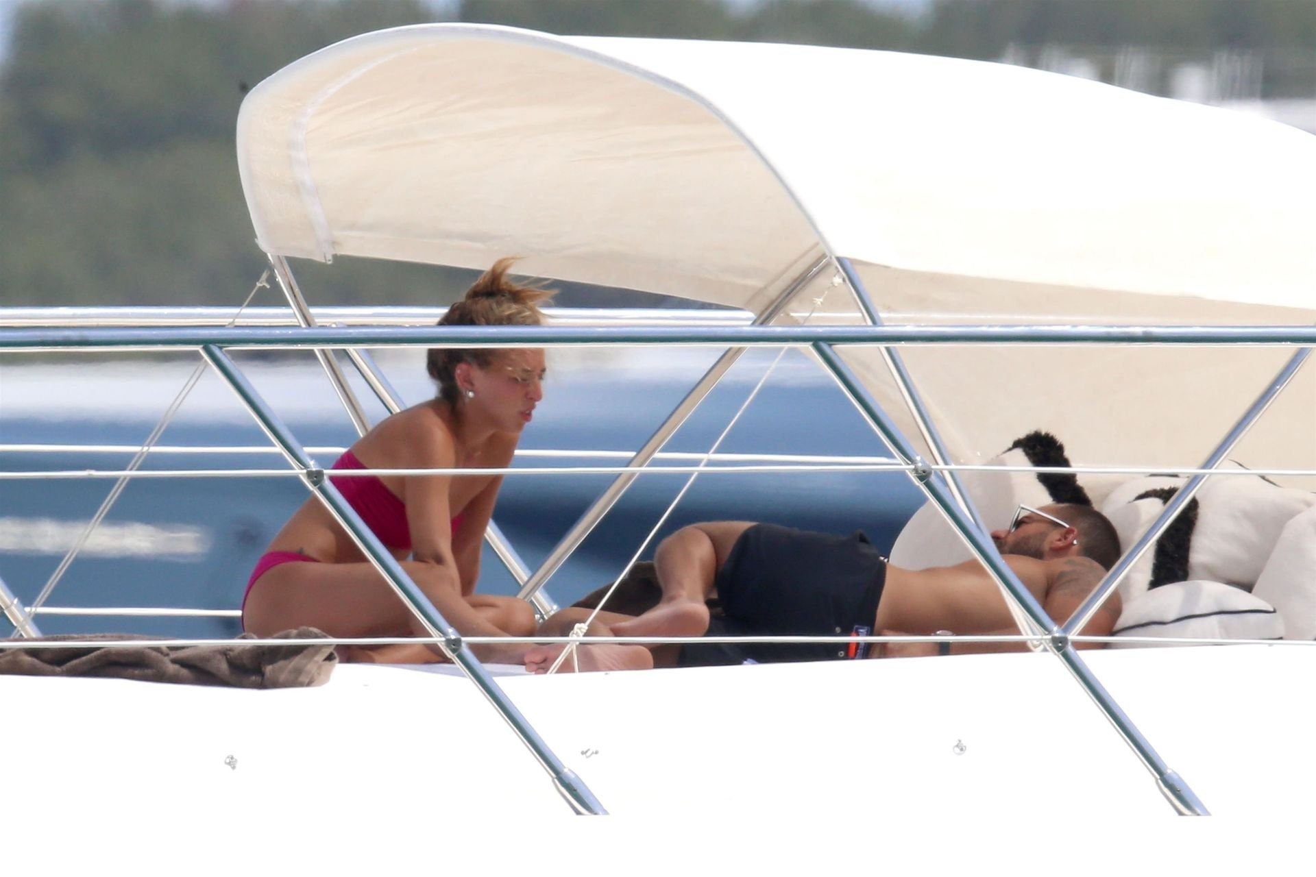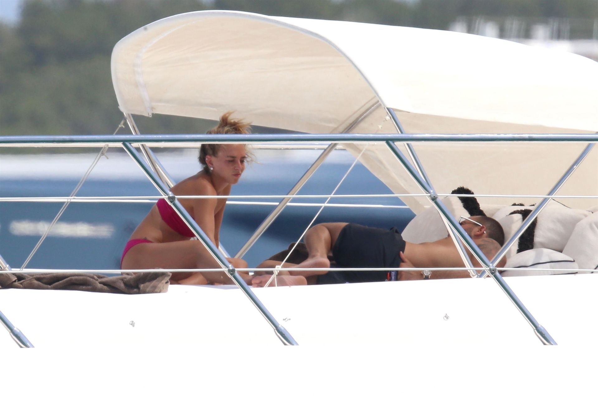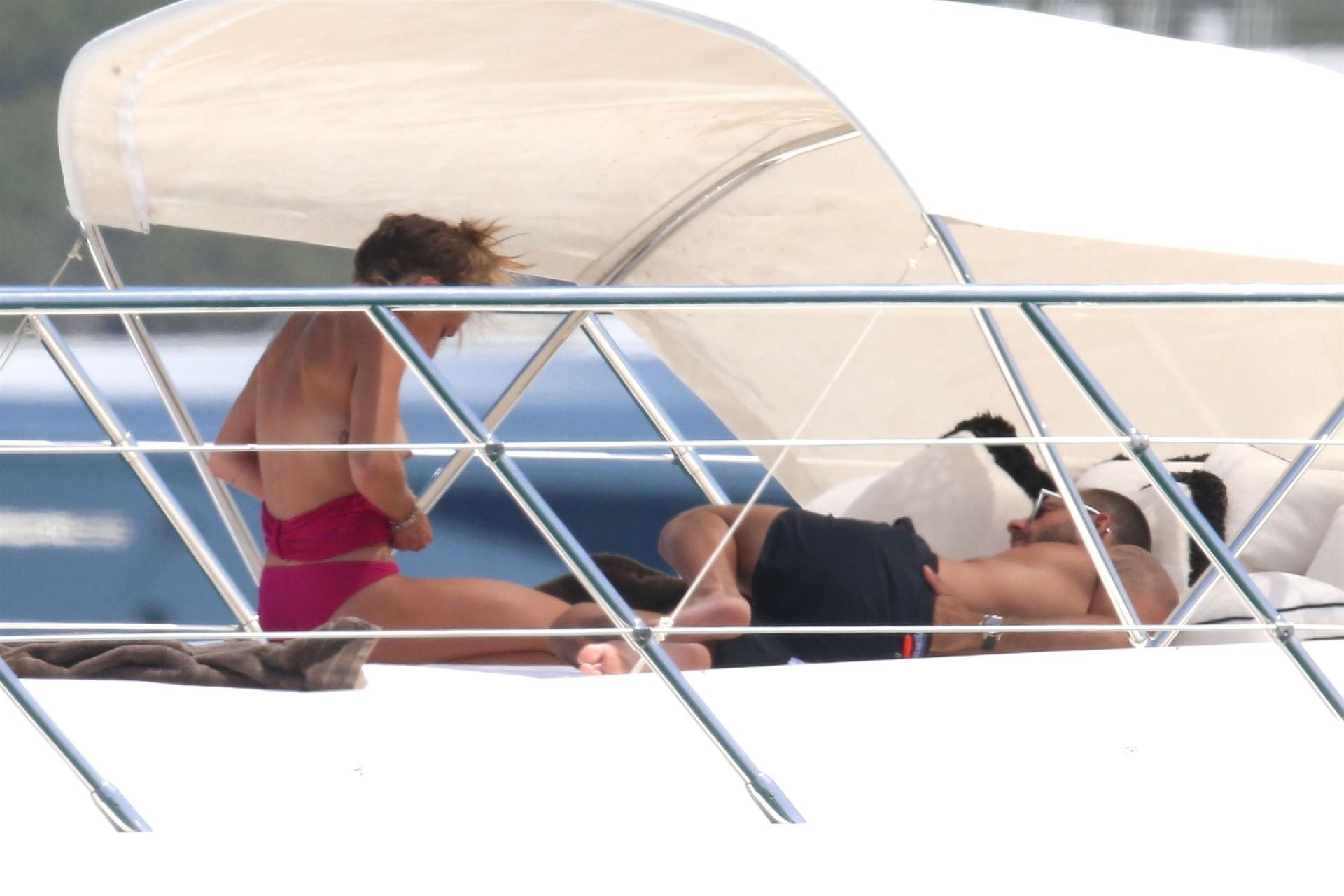 Chloe Green desnuda y un hombre desconocido se acercan mientras descansan en el mega yate Lion Heart de su padre en Cerdeña, Italia, 11/08/2019. La hija del multimillonario Philip Green fue vista recientemente sin el anillo de compromiso de su “Prófugo Sexy” Jeremy Meeks y, por lo que parece, ha seguido adelante.