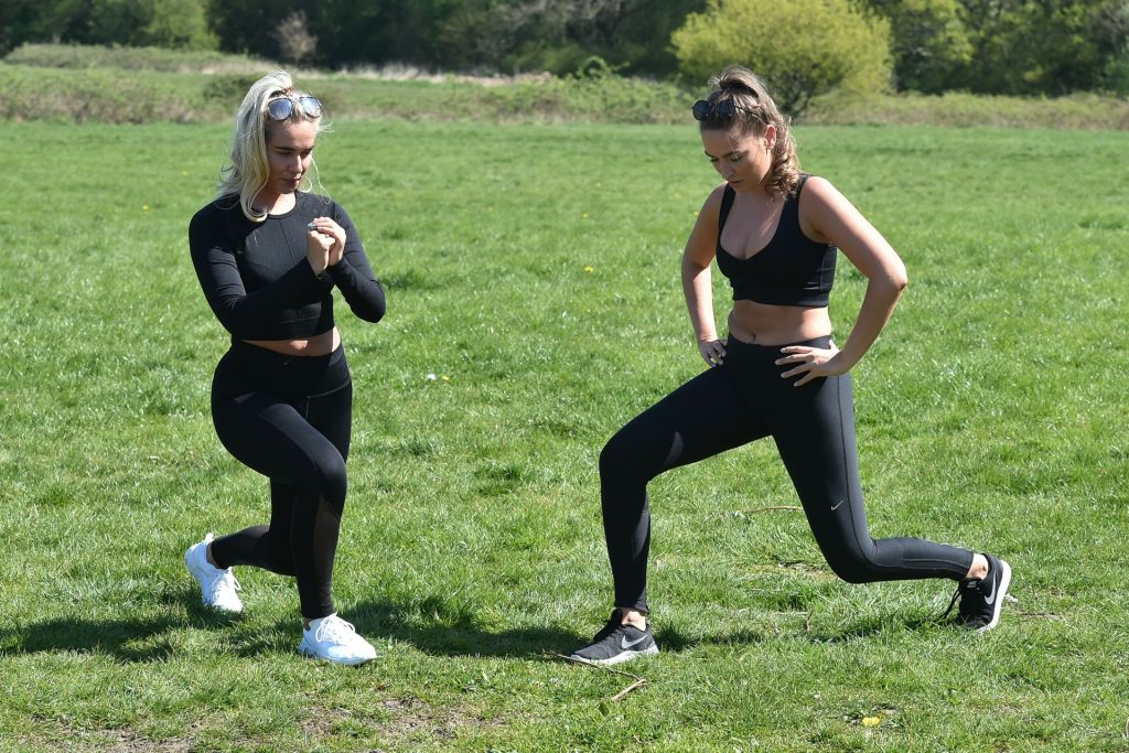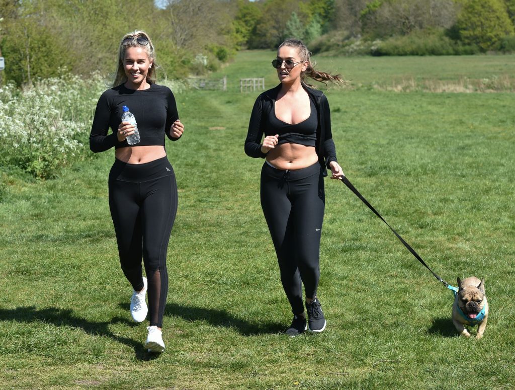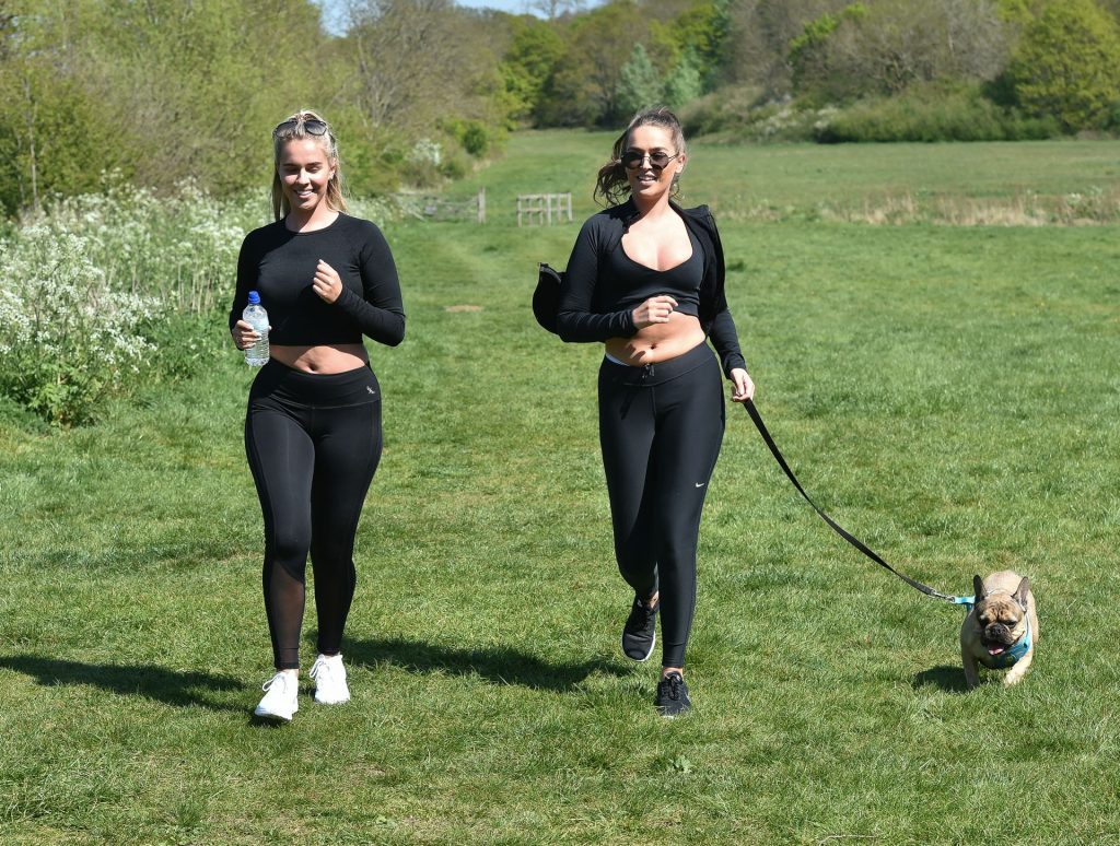 TOWIE estrella Chloe Ross fue vista haciendo su entrenamiento matutino con su hermana Maddy en un parque en Chigwell, Essex, 05/04/2020.