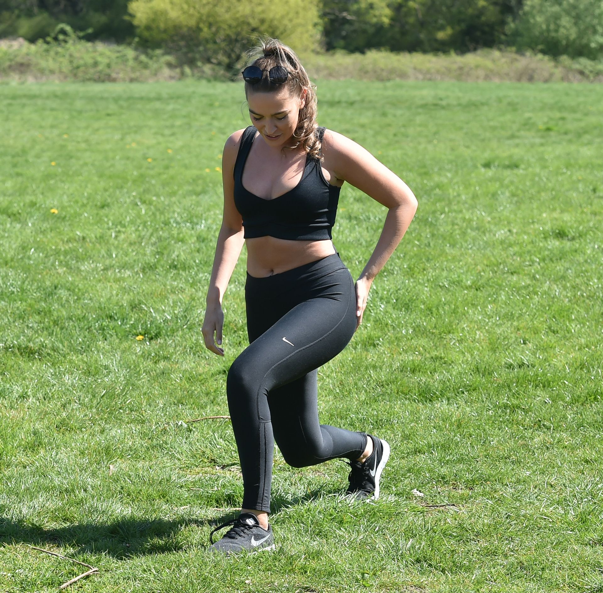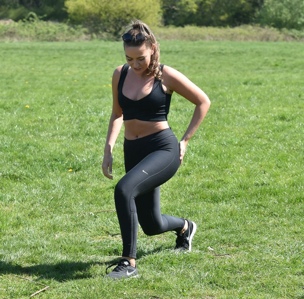 Chloe Ross Muestra Su Escote Haciendo Su Entrenamiento Matutino en un Parque (17 Fotos)