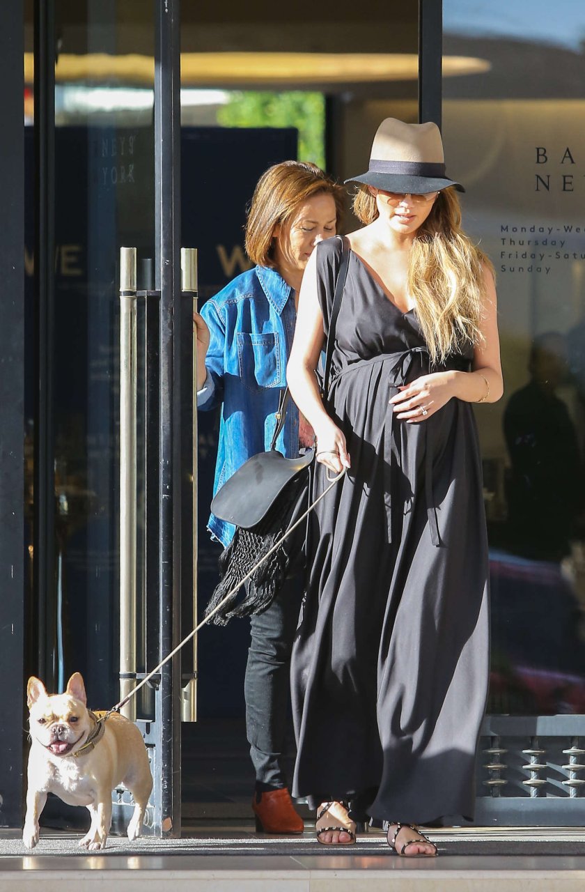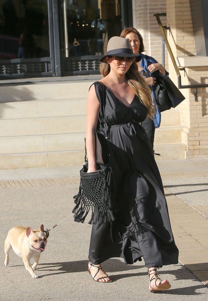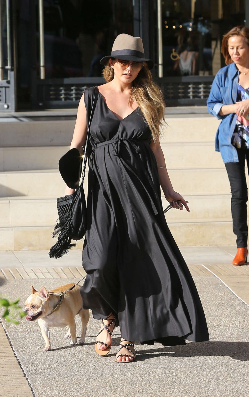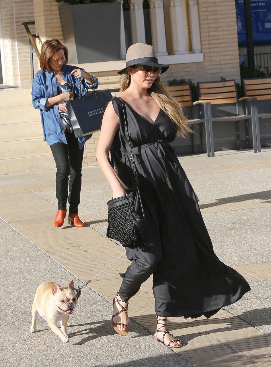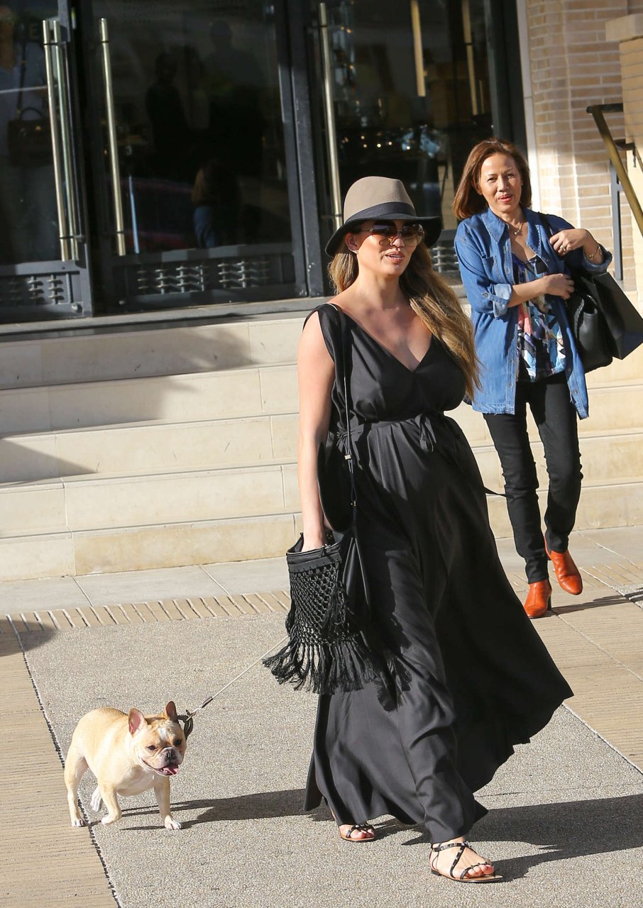Chrissy Teigen con vestido negro en Barneys New York en Los Ángeles, 14/03/2016. ¡¡Pechos súper lechosos!! Chrissy Teigen es una modelo estadounidense. Edad 30 (30 de noviembre de 1985). Altura 174 cm.