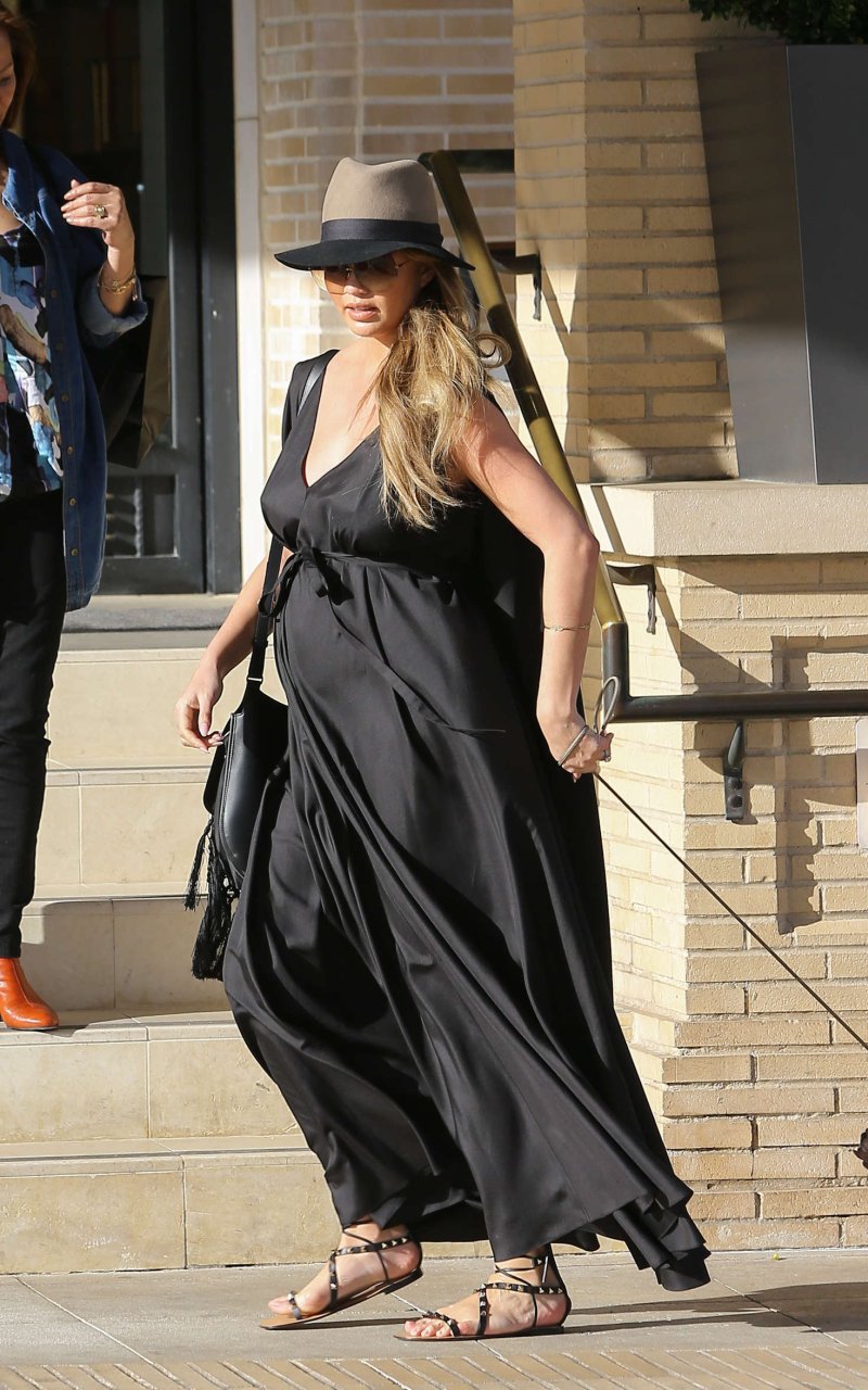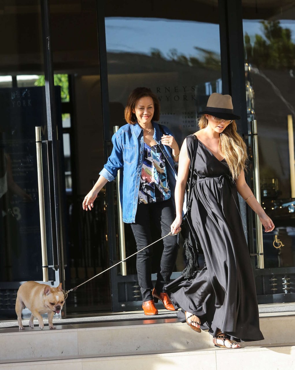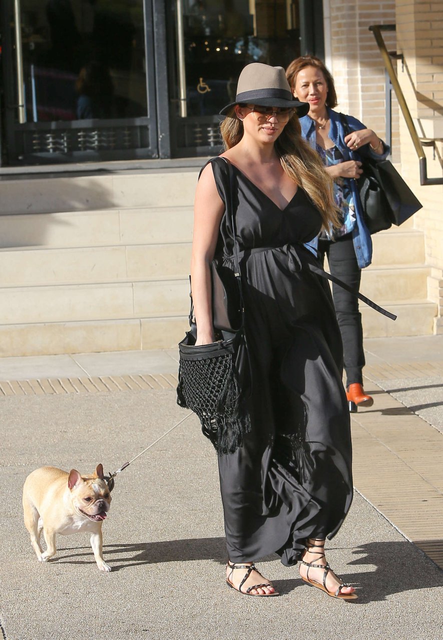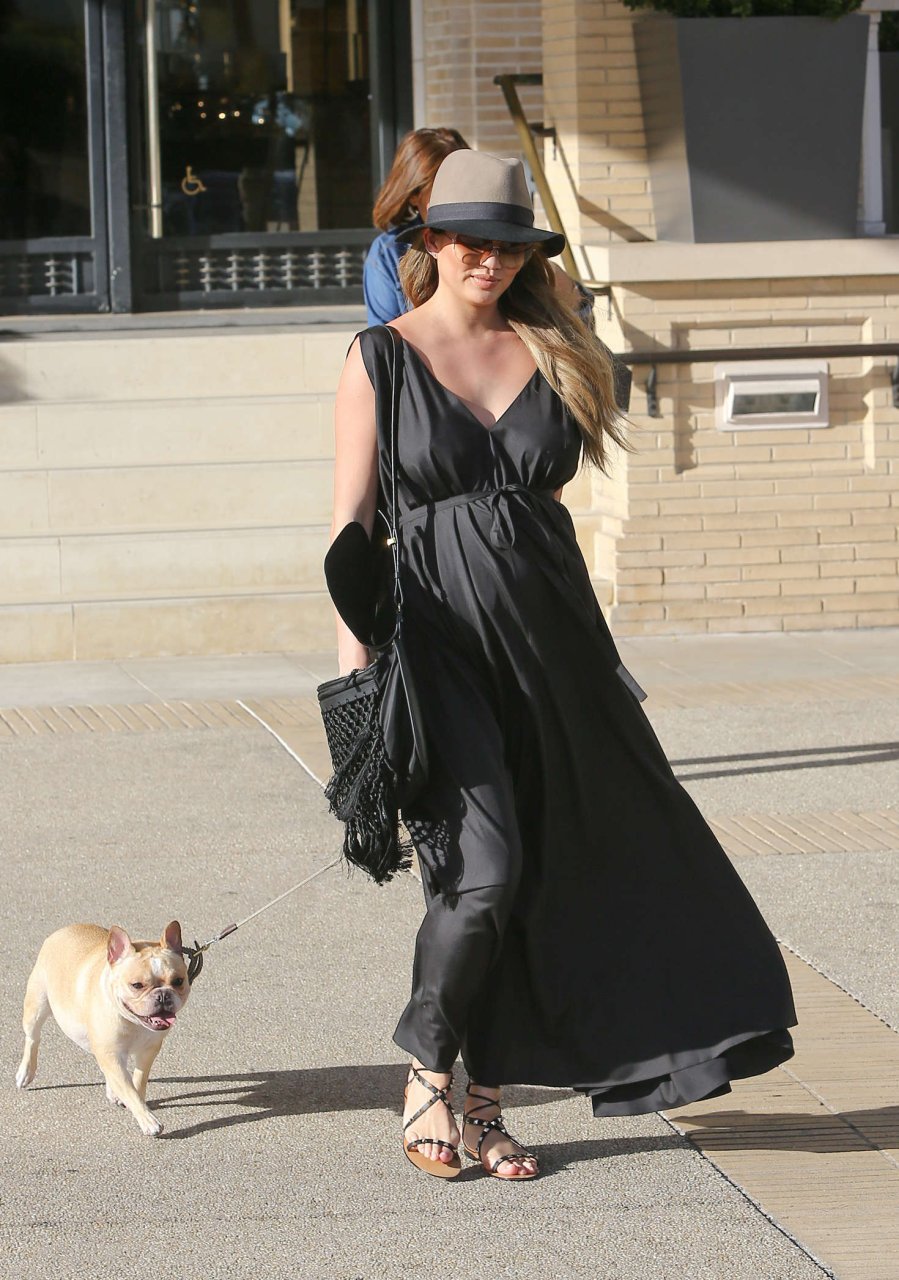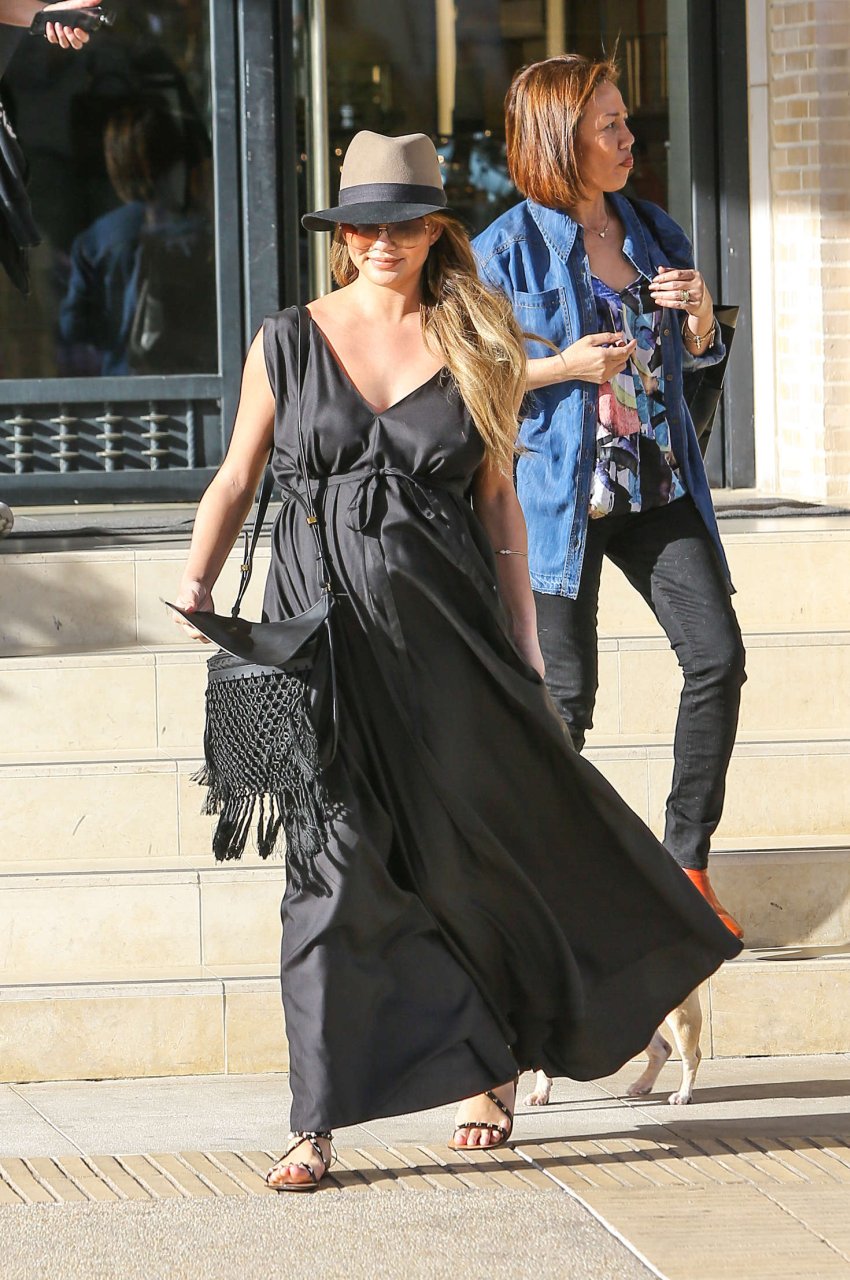 Chrissy Teigen con vestido negro en Barneys New York en Los Ángeles, 14/03/2016. ¡¡Pechos súper lechosos!! Chrissy Teigen es una modelo estadounidense. Edad 30 (30 de noviembre de 1985). Altura 174 cm.