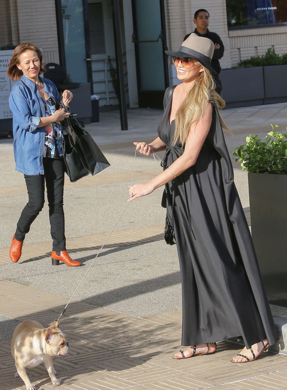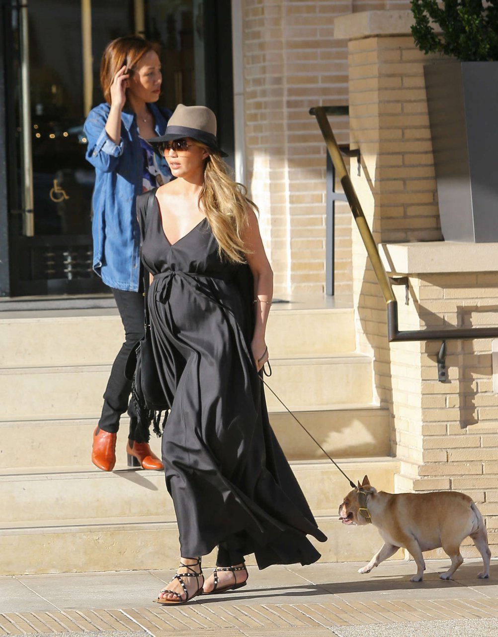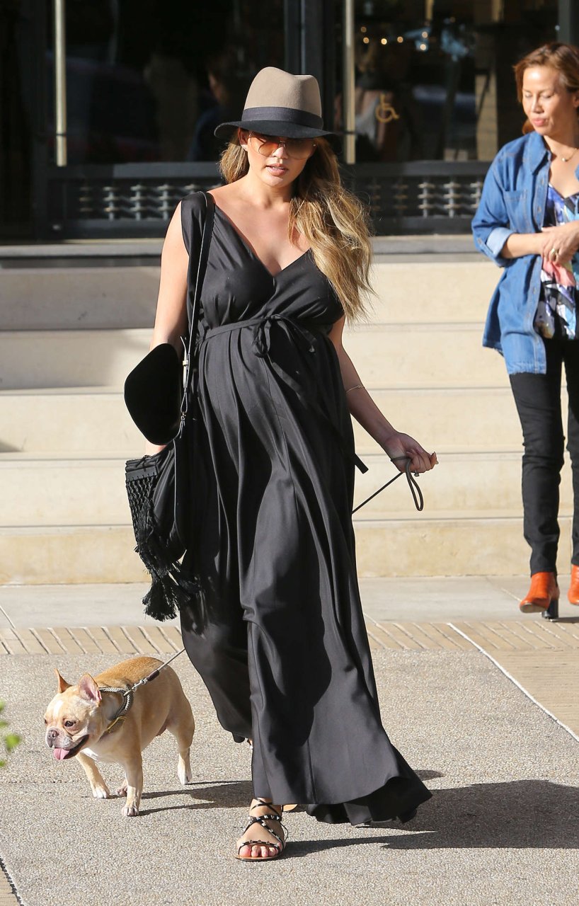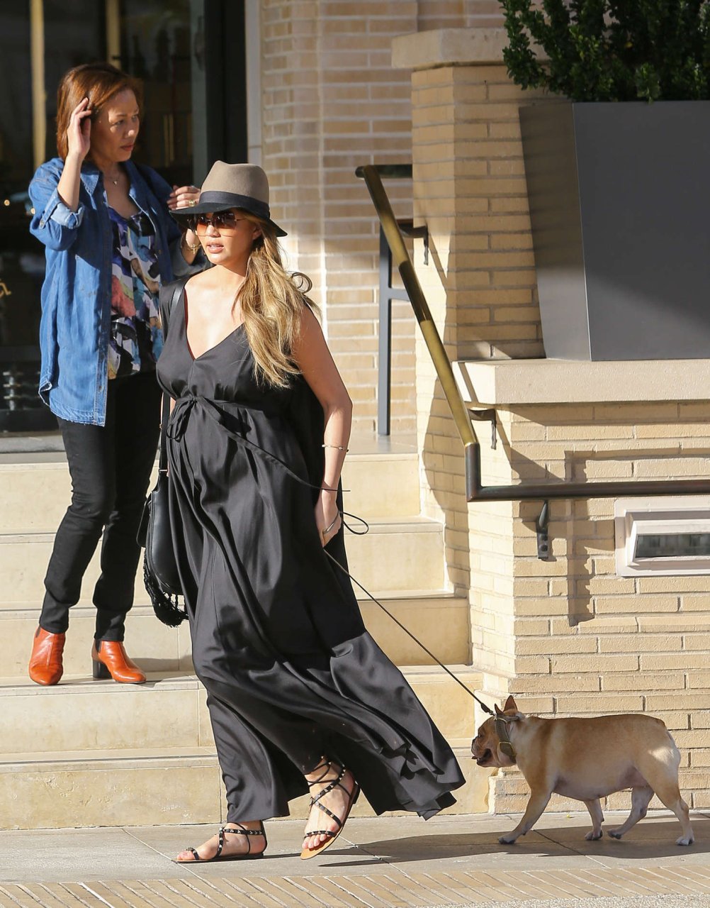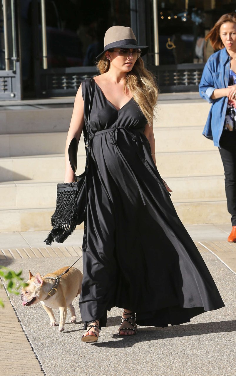 Chrissy Teigen con vestido negro en Barneys New York en Los Ángeles, 14/03/2016. ¡¡Pechos súper lechosos!! Chrissy Teigen es una modelo estadounidense. Edad 30 (30 de noviembre de 1985). Altura 174 cm.