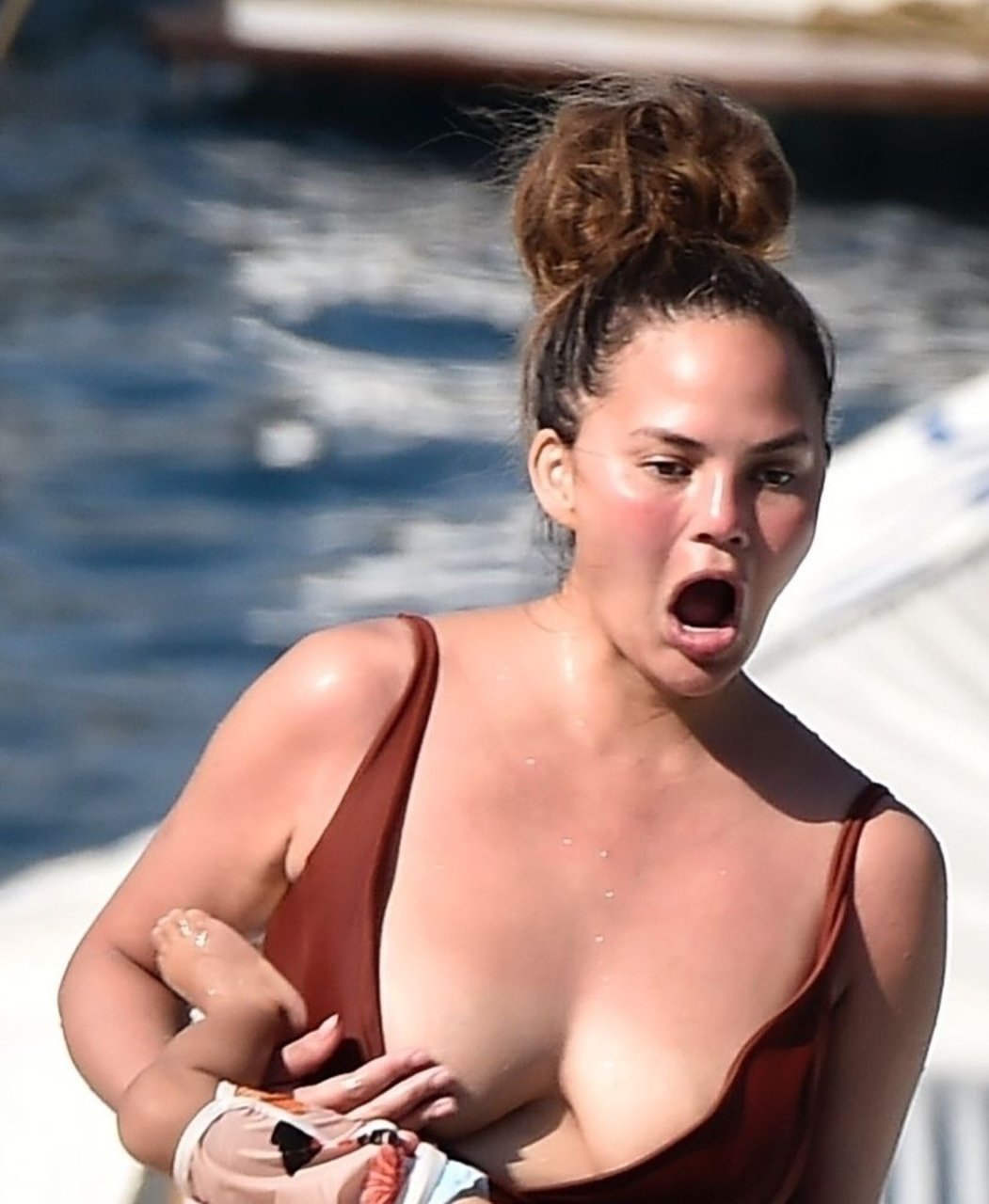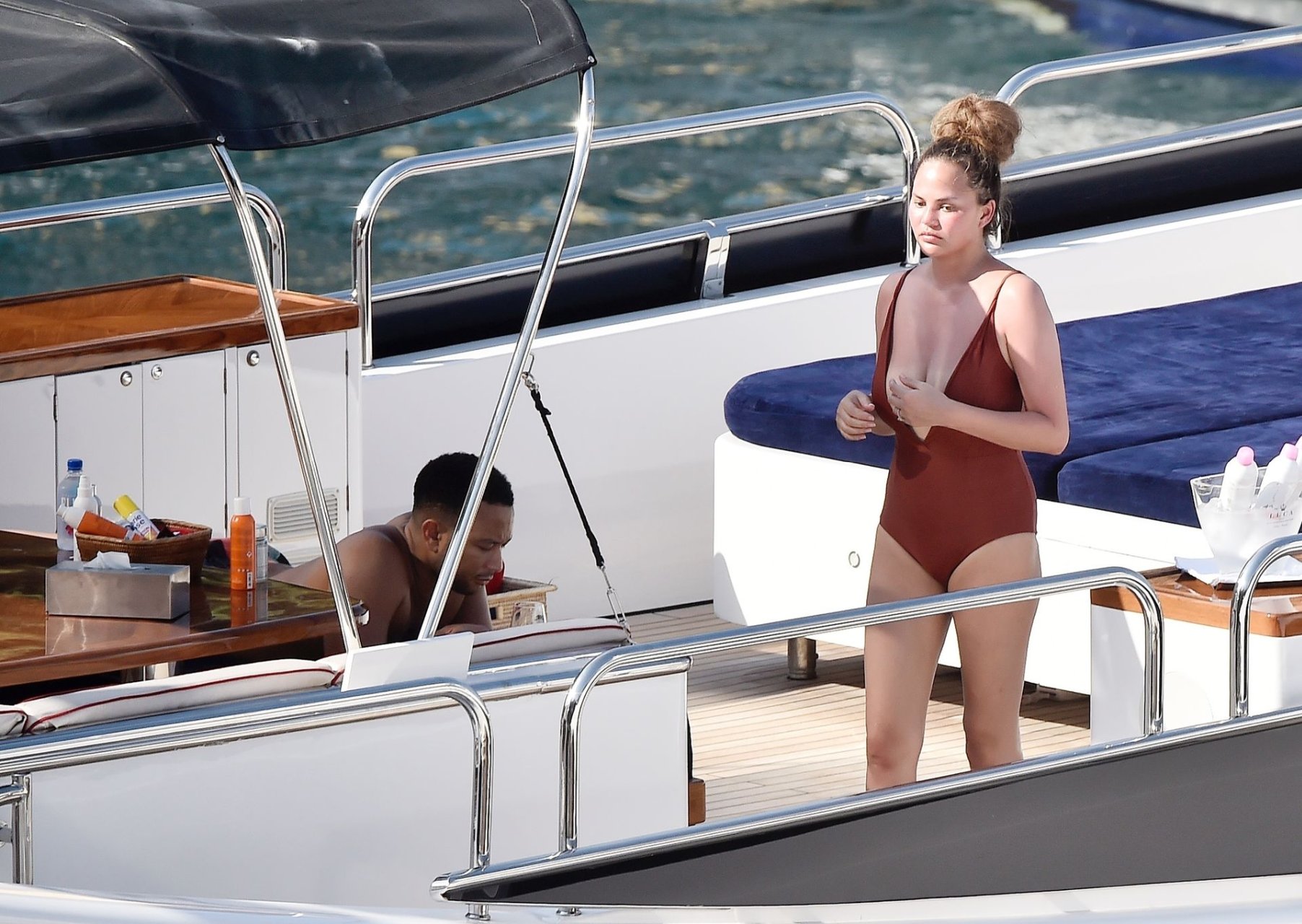 Cantante de soul estadounidense, John Legend y su esposa Chrissy Teigen disfrutan de un paseo en barco durante sus vacaciones de aventura en Italia, en Portofino, 07/02/2019.