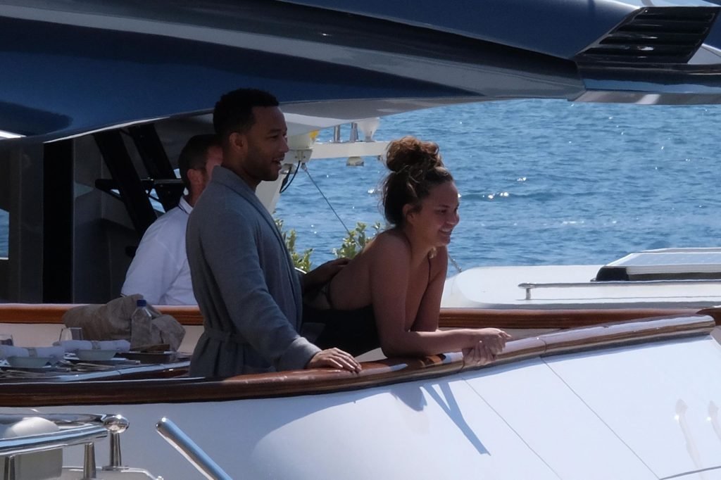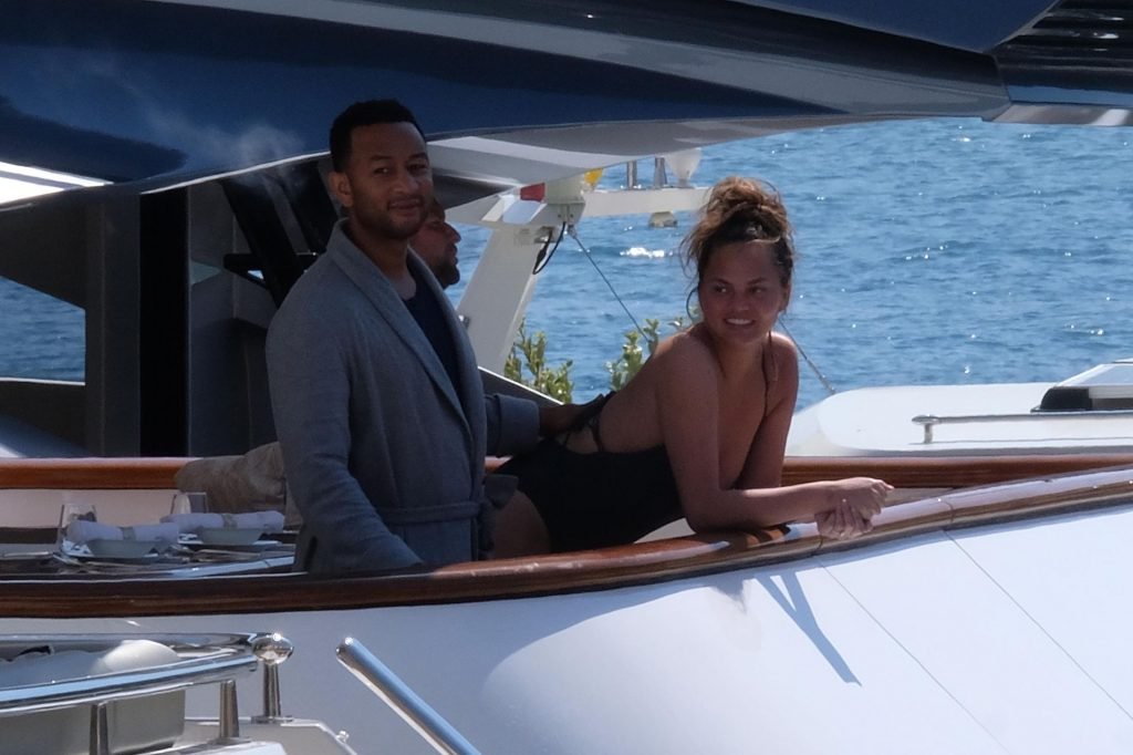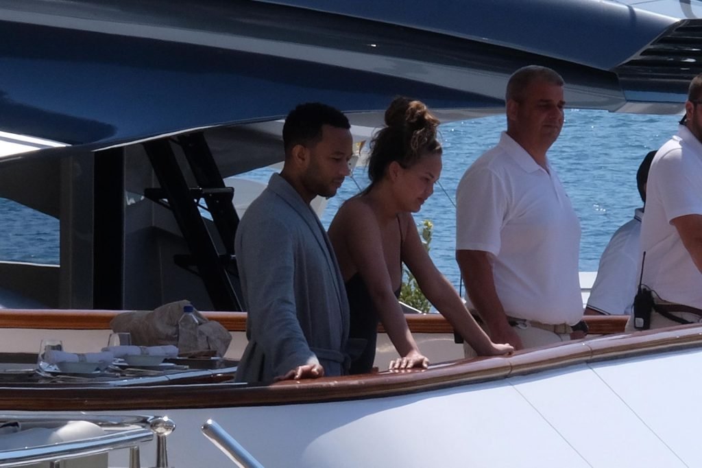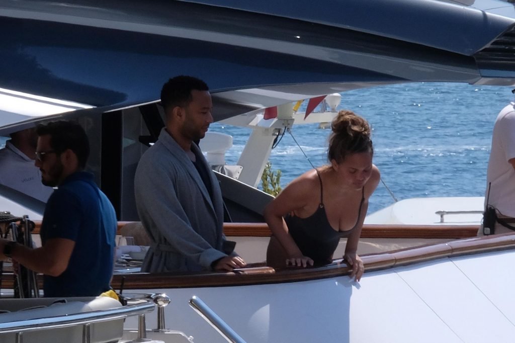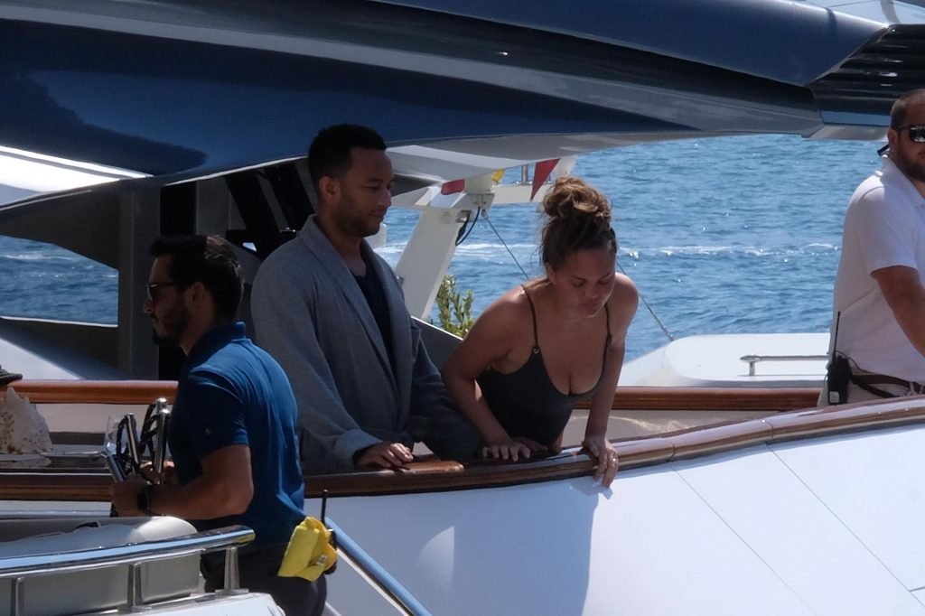 El cantante de soul americano John Legend y su esposa Chrissy Teigen descansan en su yate durante sus vacaciones bañadas por el sol en Portovenere, Italia, 04/07/2019.
