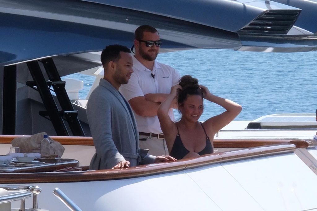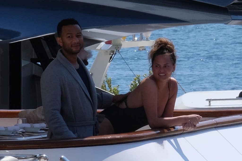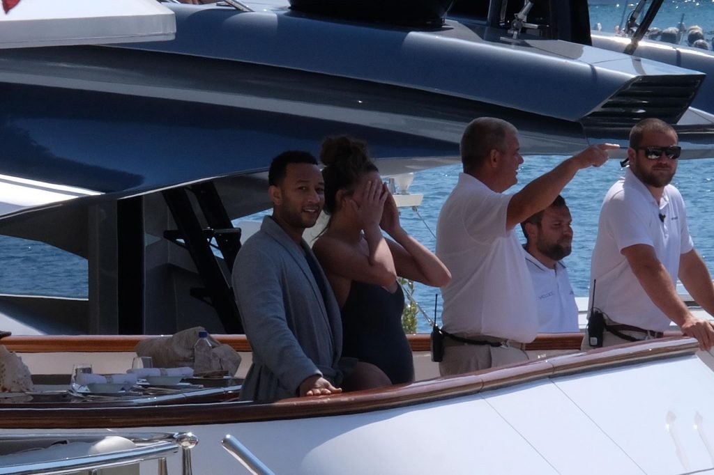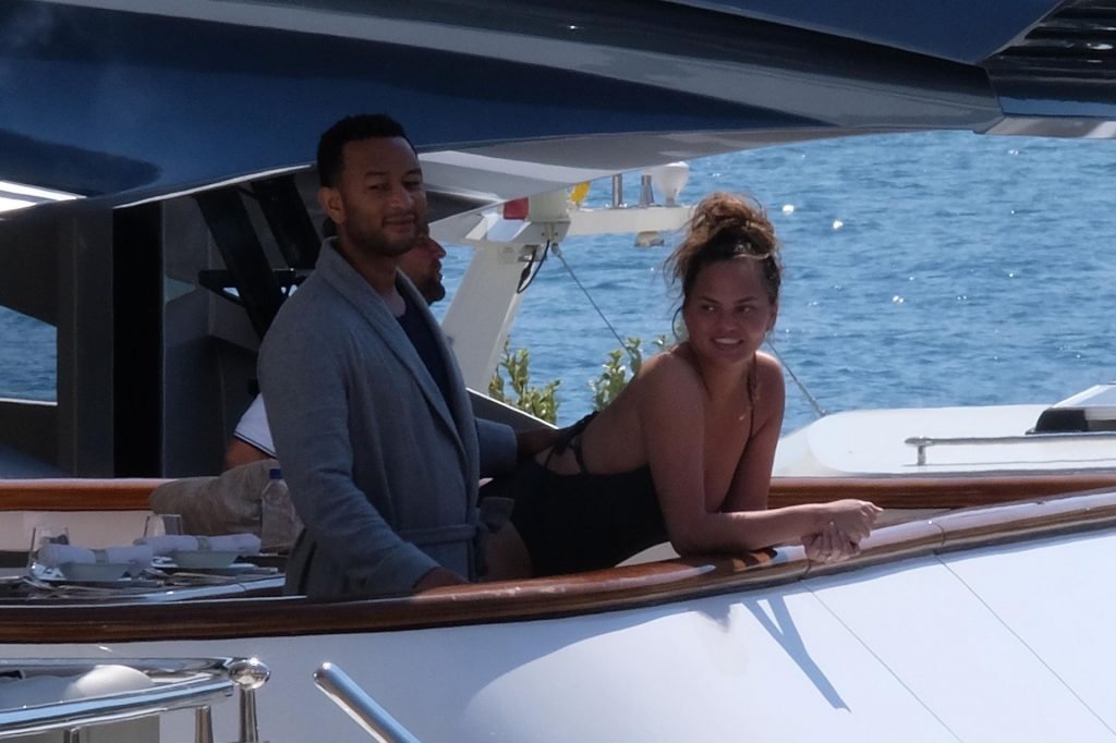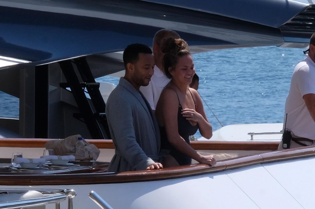 El cantante de soul americano John Legend y su esposa Chrissy Teigen descansan en su yate durante sus vacaciones bañadas por el sol en Portovenere, Italia, 04/07/2019.