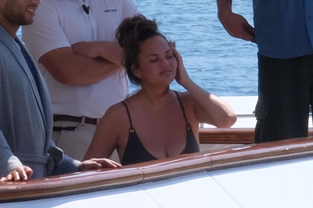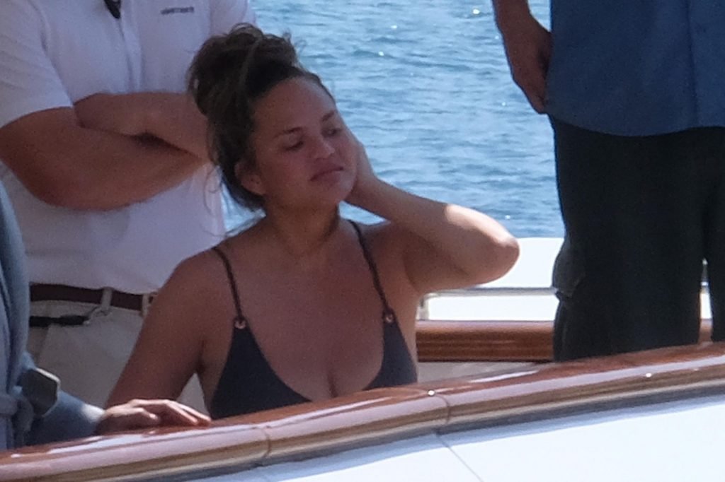 ¡Chrissy tiene un hombre que la ama, dos hijos, un cuerpo perfecto, senos grandes, trasero y un rostro bonito! ¿Qué más puede soñar una mujer? La mayoría de las celebridades y modelos de glamour están aprovechando este viaje a Italia para estar en topless y mostrar al mundo lo que ofrecen. Desafortunadamente, esta vez Chrissy no estaba desnuda, pero mostró su escote con un traje de baño de una pieza.