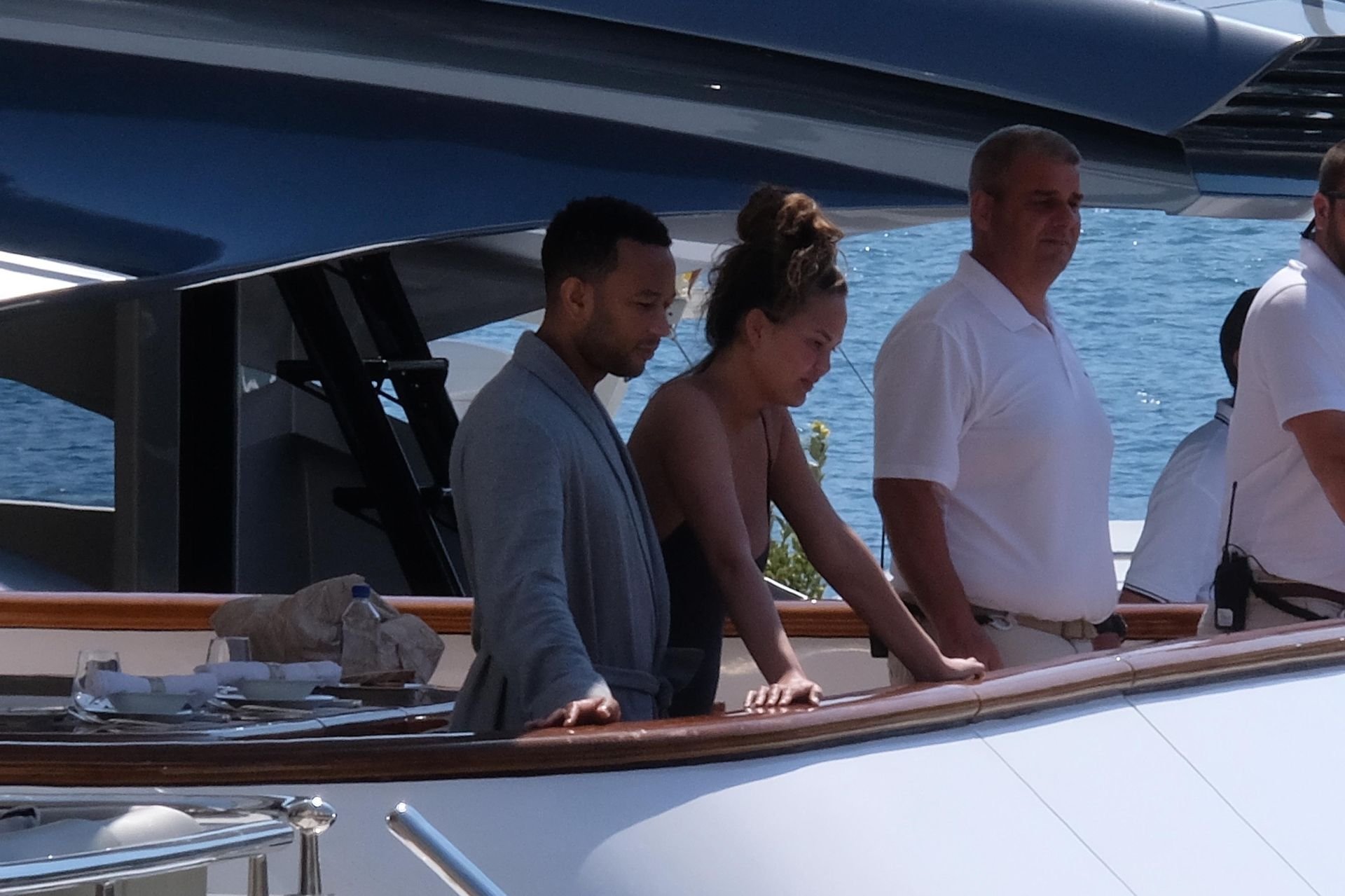 El cantante de soul americano John Legend y su esposa Chrissy Teigen descansan en su yate durante sus vacaciones bañadas por el sol en Portovenere, Italia, 04/07/2019.