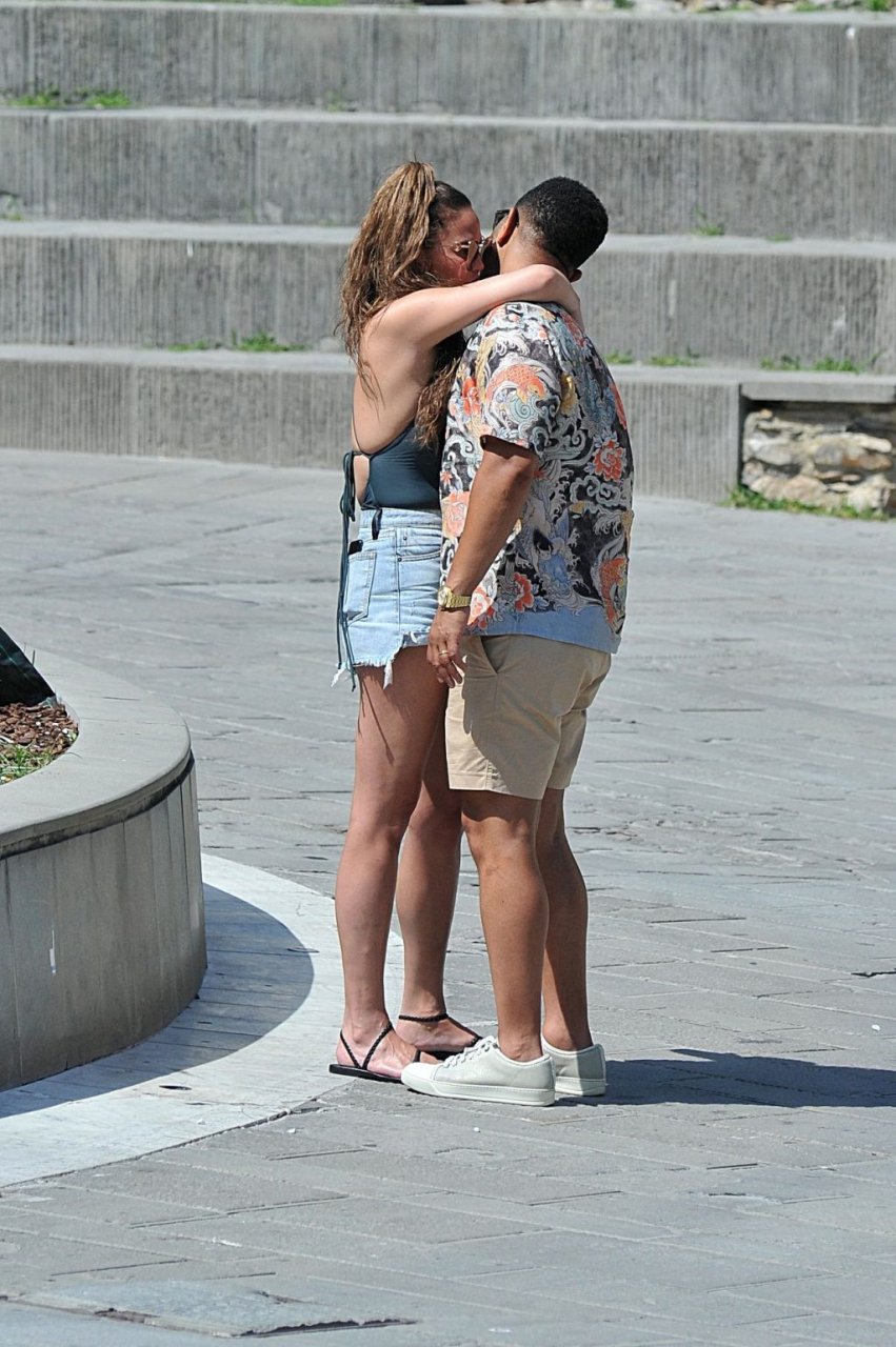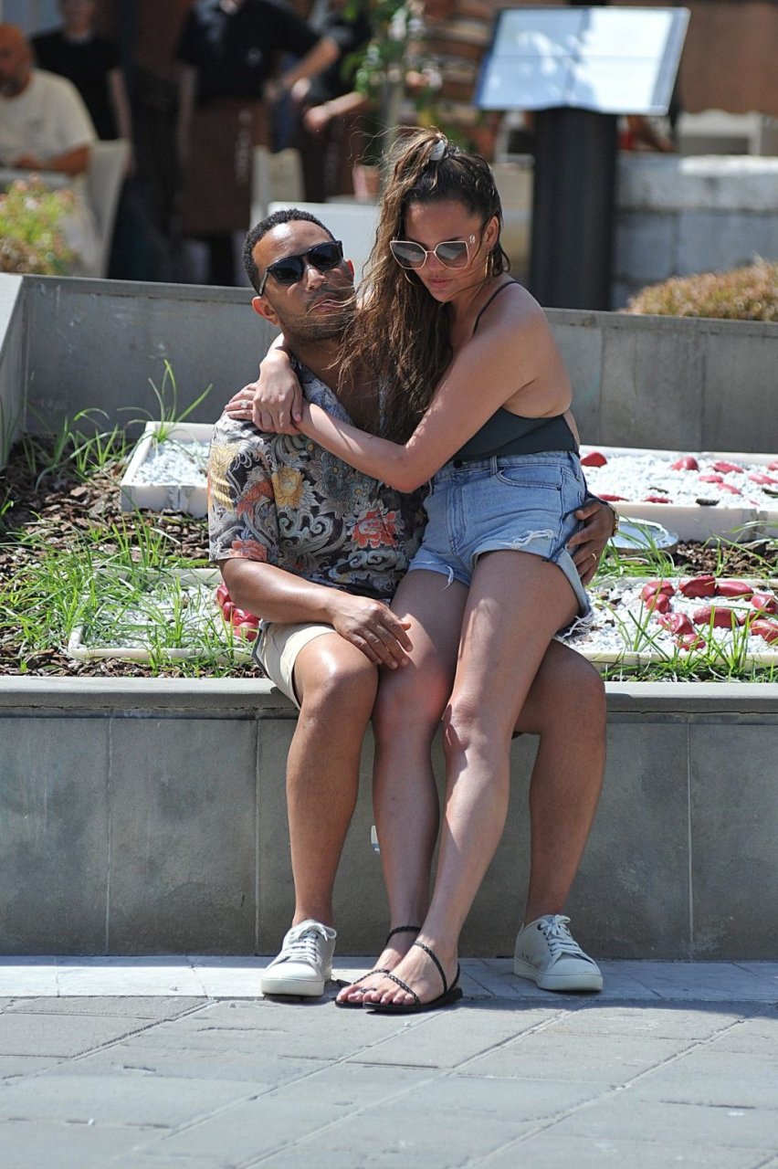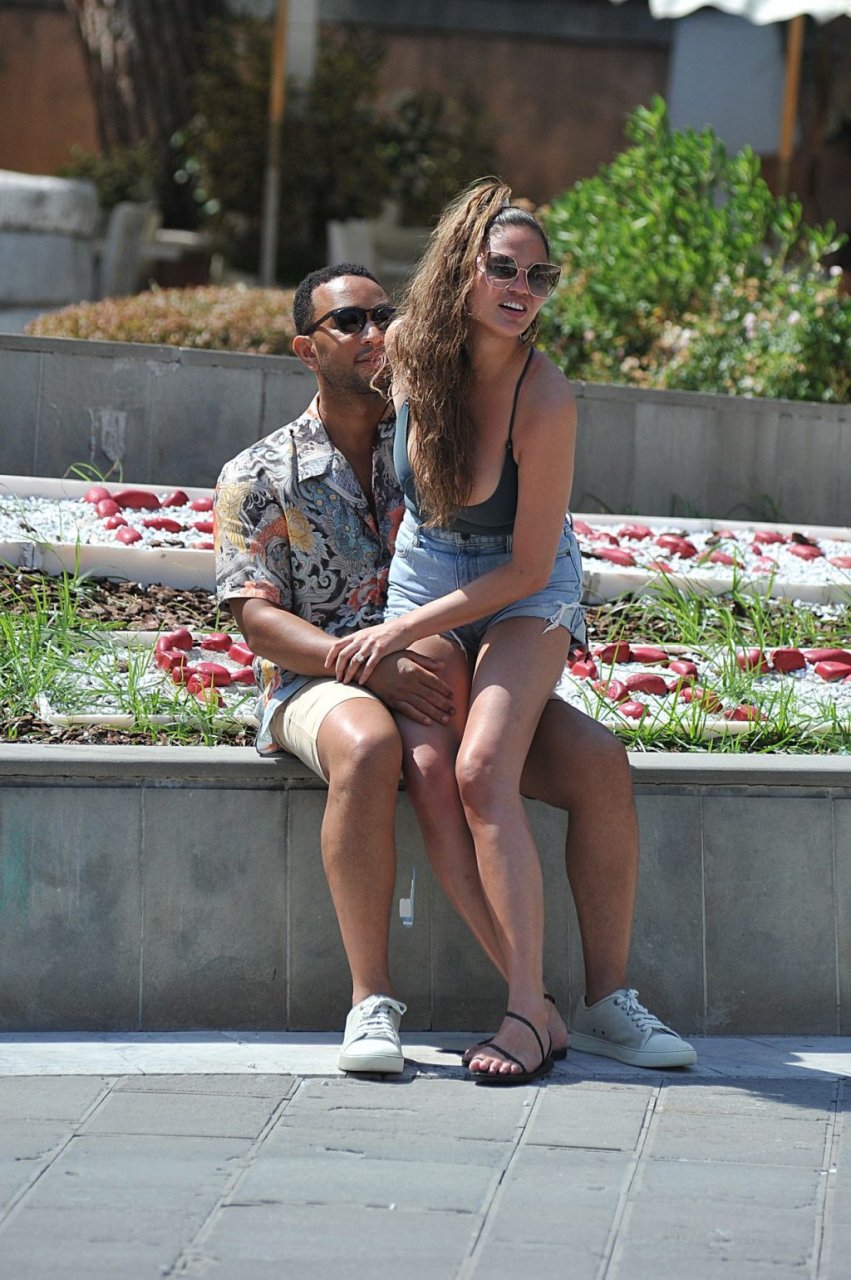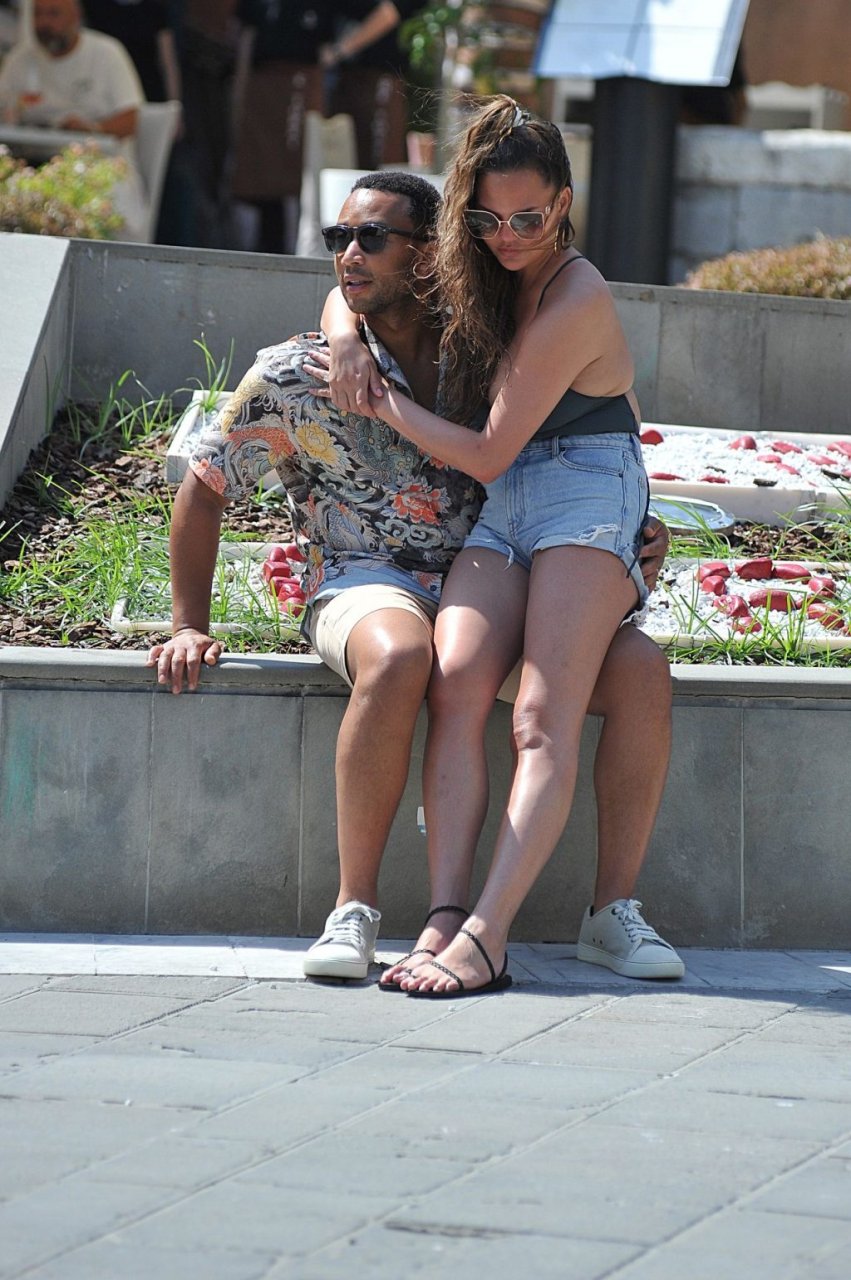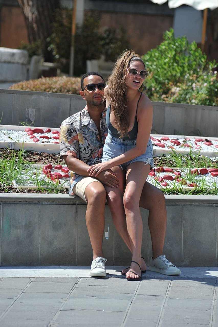 John Legend y Chrissy Teigen fueron vistos mostrando muestras públicas de afecto en Porto Venere, 07/04/2019. Chrissy fue fotografiada con shorts de mezclilla y un body verde oscuro con un escote pronunciado.