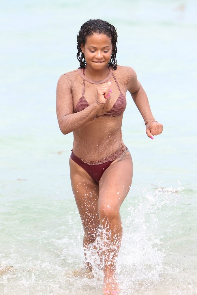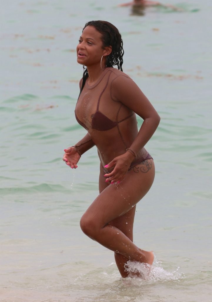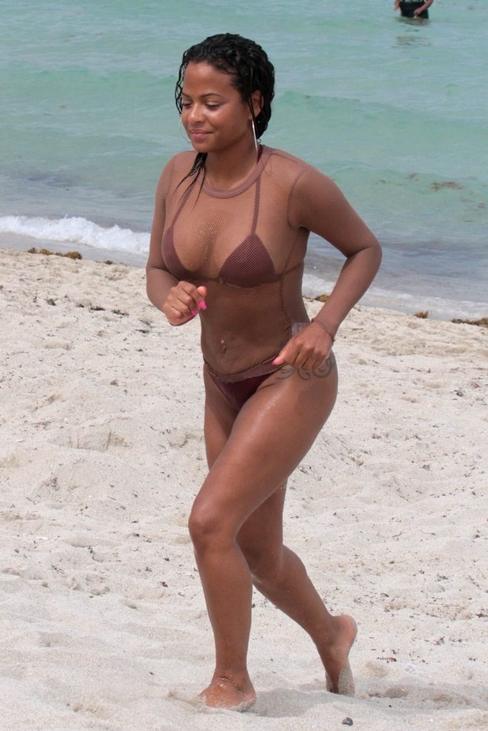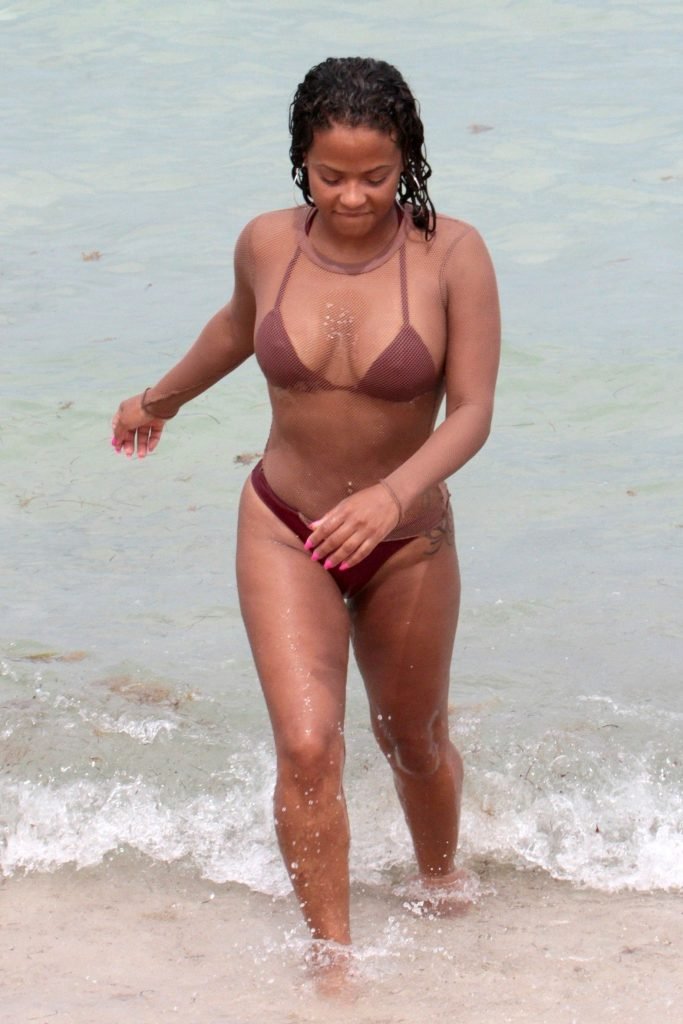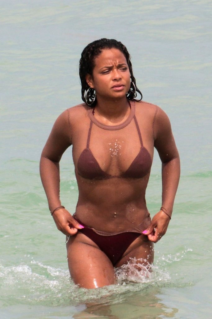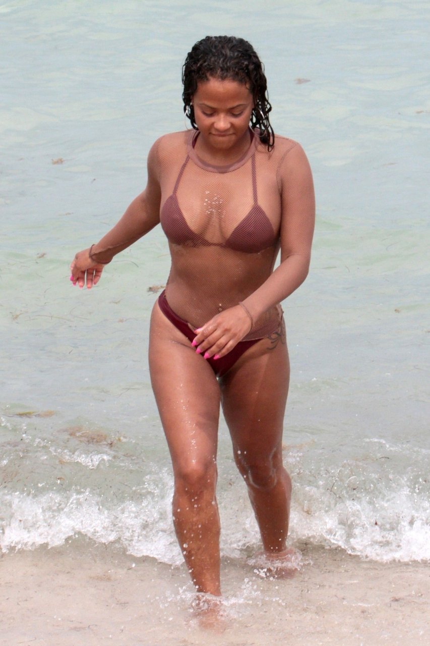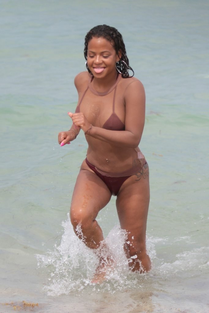 La cantante, compositora y actriz estadounidense Christina Milian disfruta de la playa con un bikini marrón, 22/07/2017.