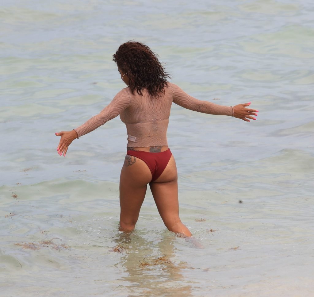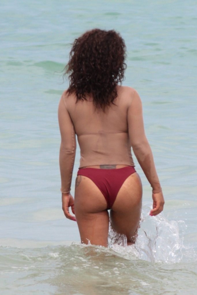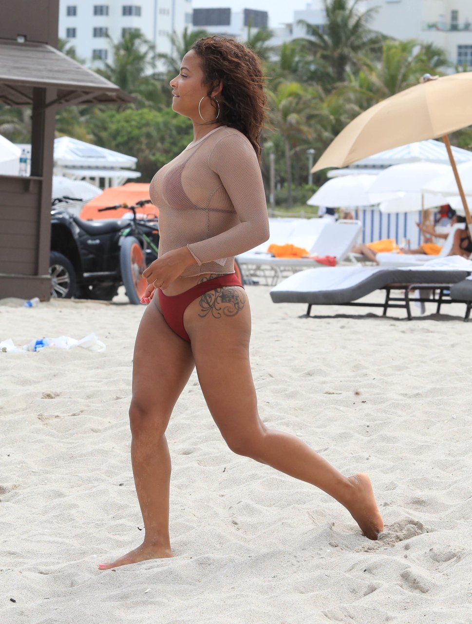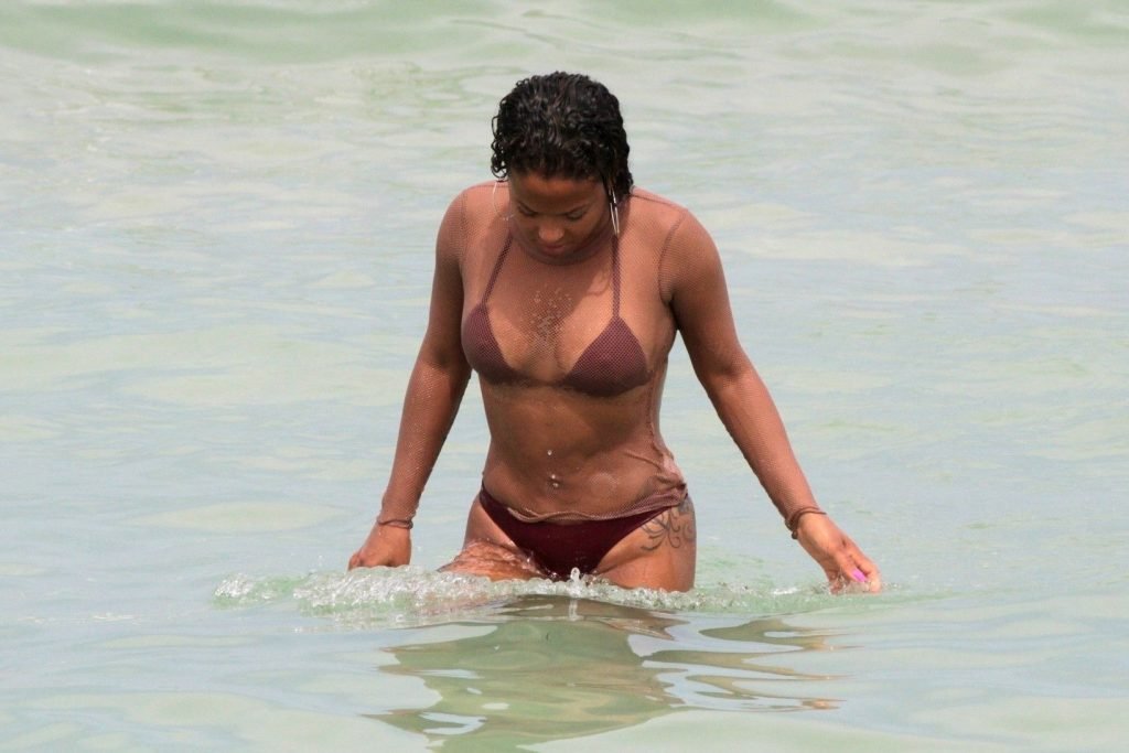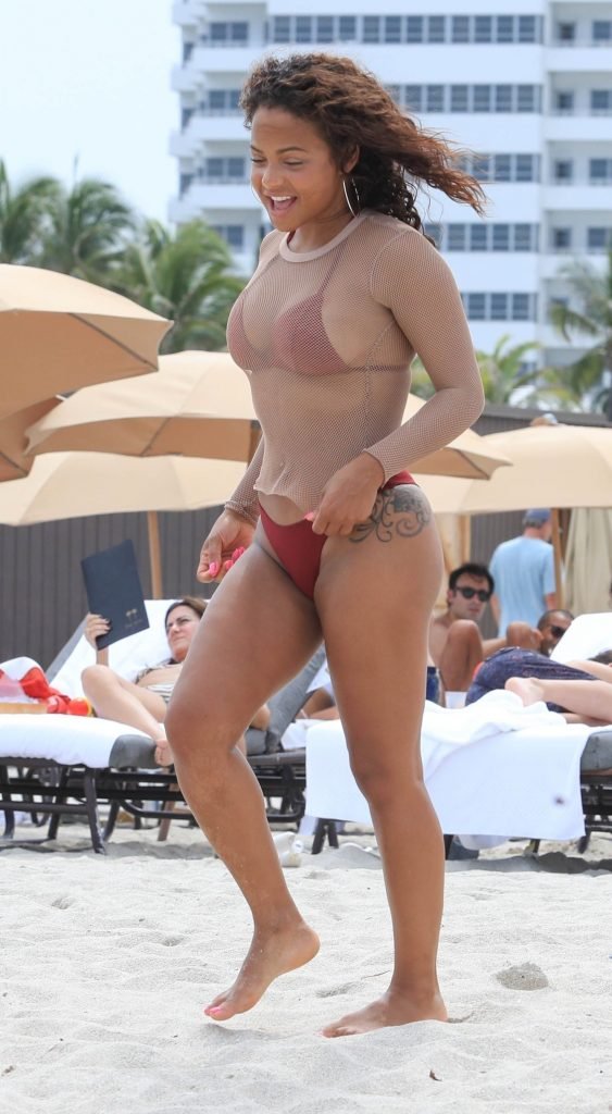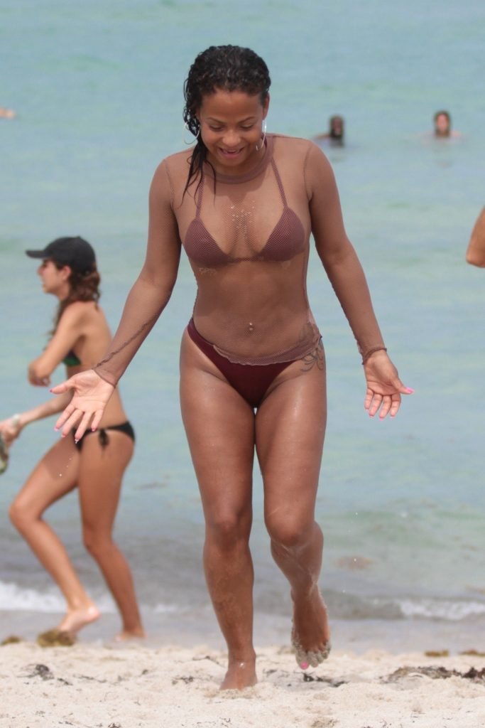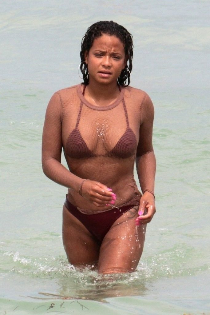 La cantante, compositora y actriz estadounidense Christina Milian disfruta de la playa con un bikini marrón, 22/07/2017.