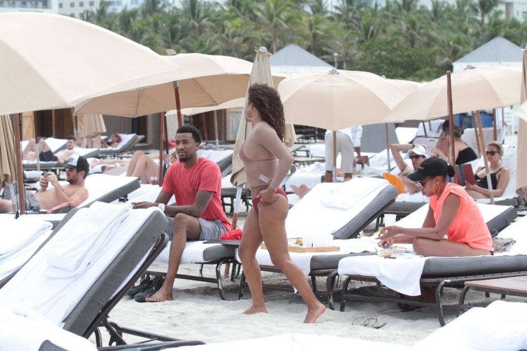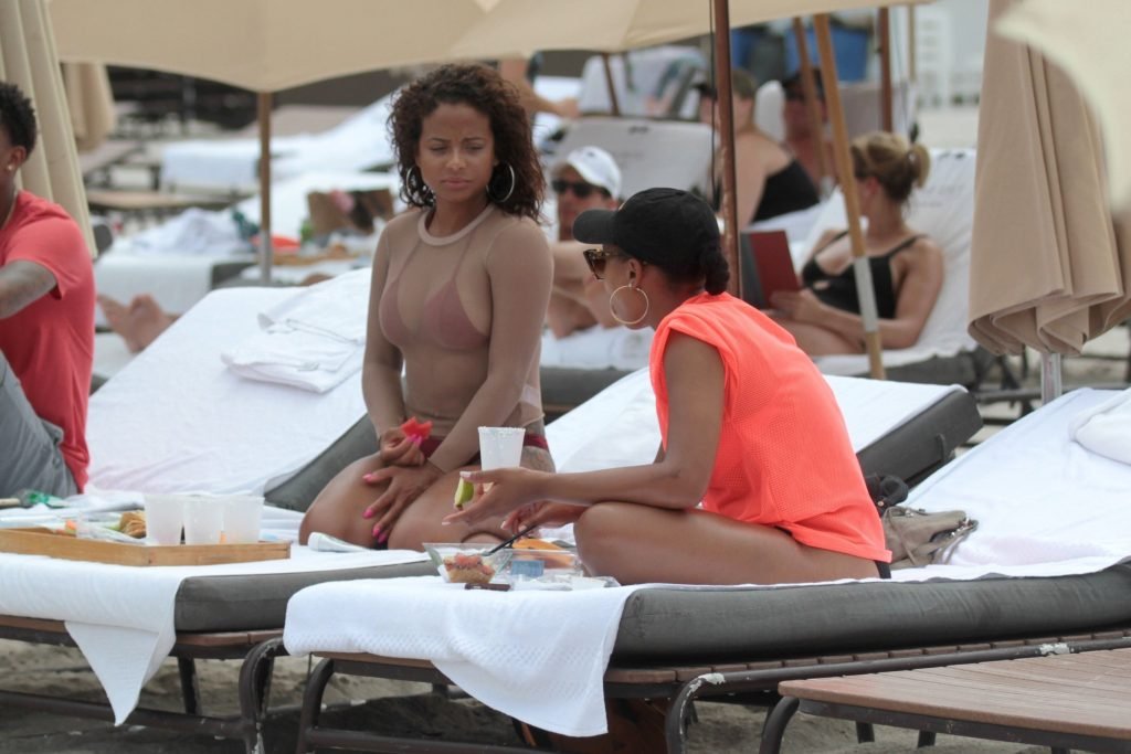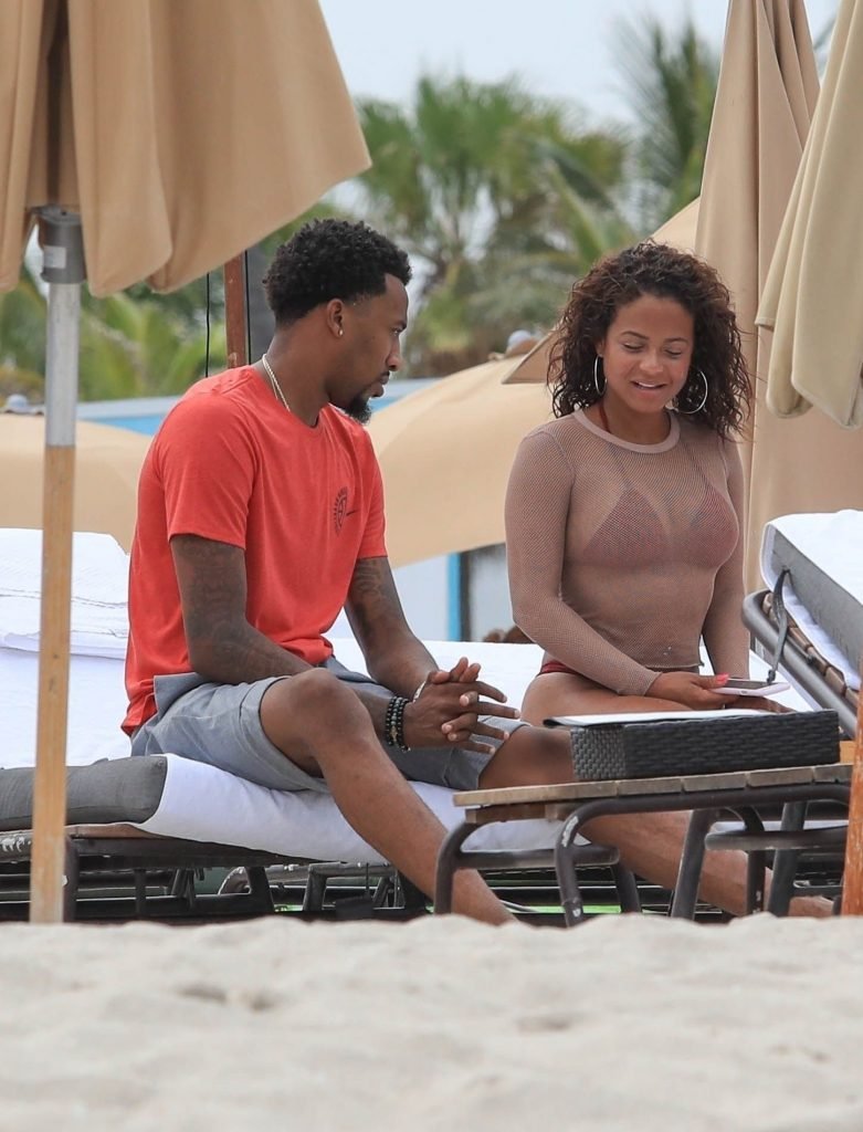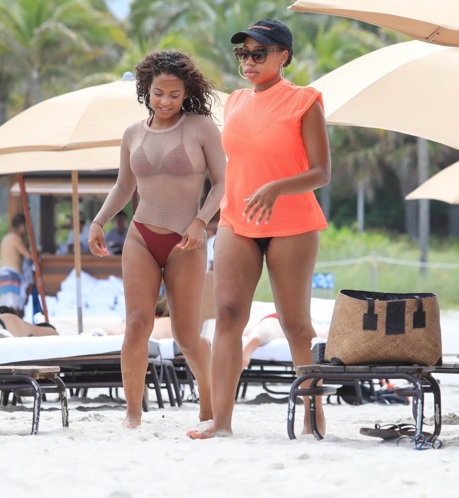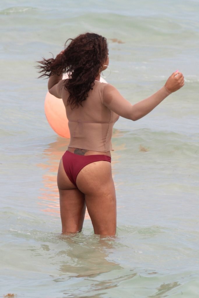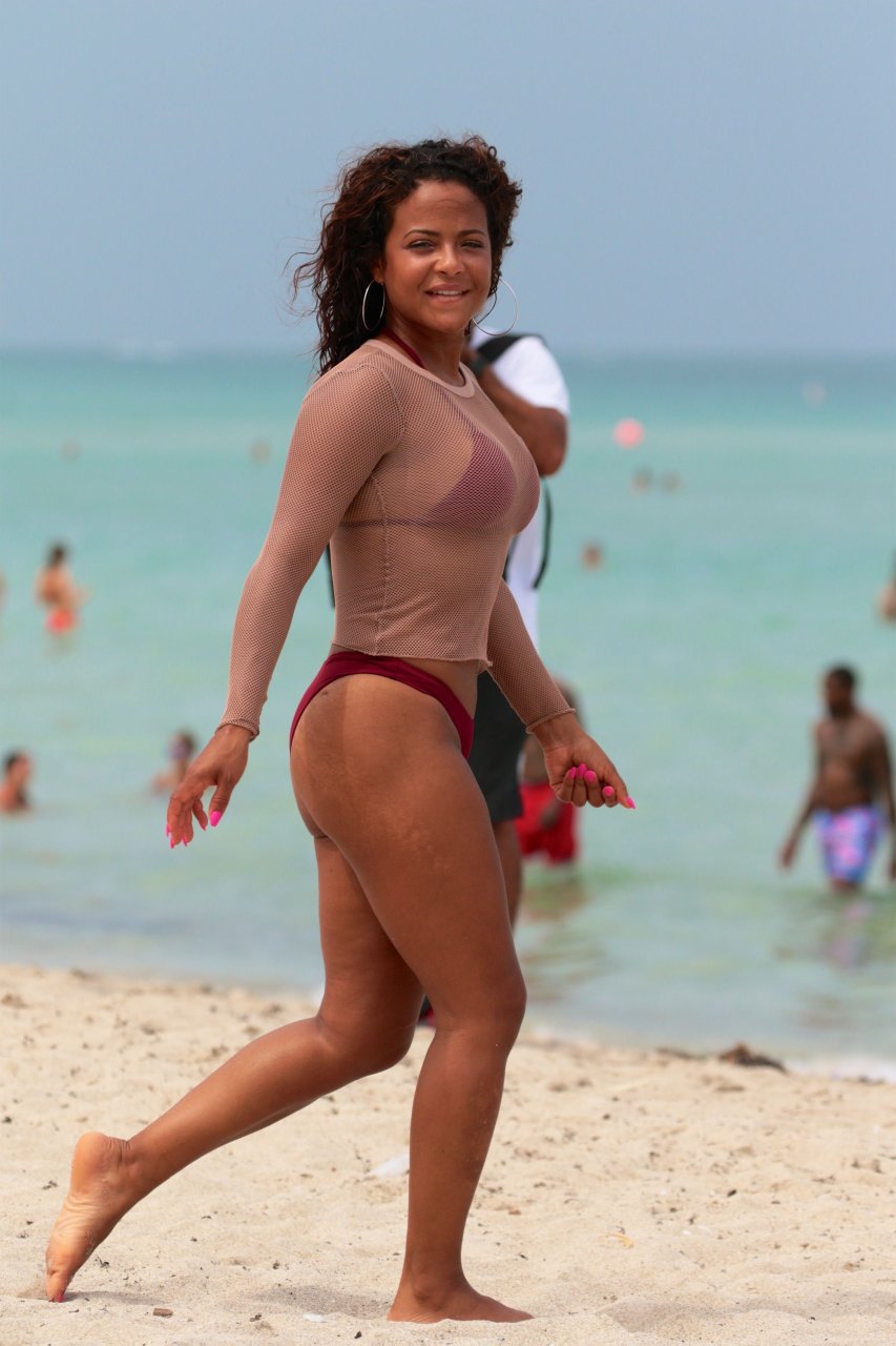 La cantante, compositora y actriz estadounidense Christina Milian disfruta de la playa con un bikini marrón, 22/07/2017.