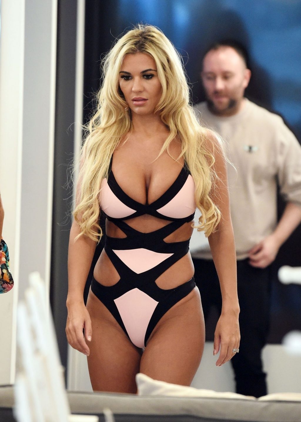 Con todas las miradas puestas en la sexy estrella, Christine mostró todas sus curvas voluptuosas con varios conjuntos de bikini atrevidos mientras la esposa del presentador de televisión Paddy McGuinness irradiaba atractivo sexual con un atuendo provocativo.