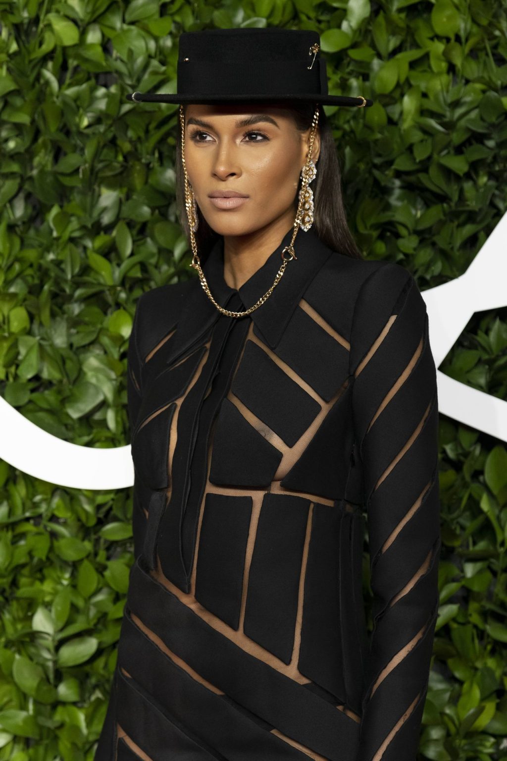 La supermodelo francesa Cindy Bruna (25) llega sin sostén a los Fashion Awards 2019 celebrados en el Royal Albert Hall en Londres, Inglaterra, 12/02/2019.