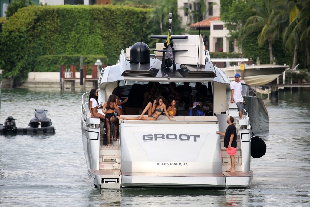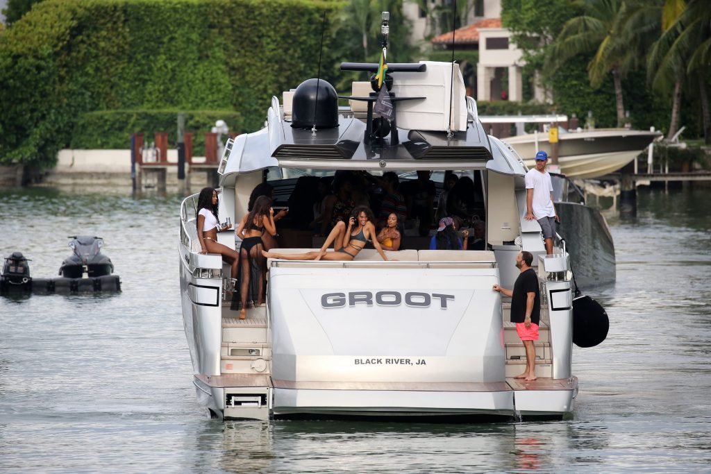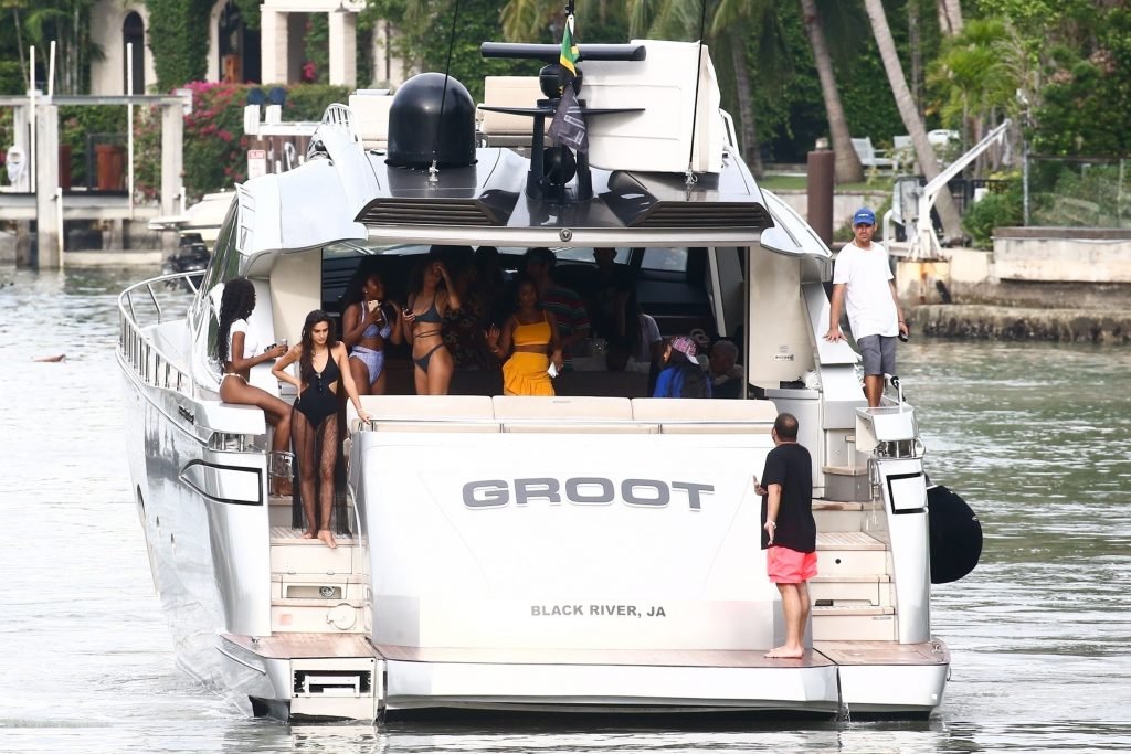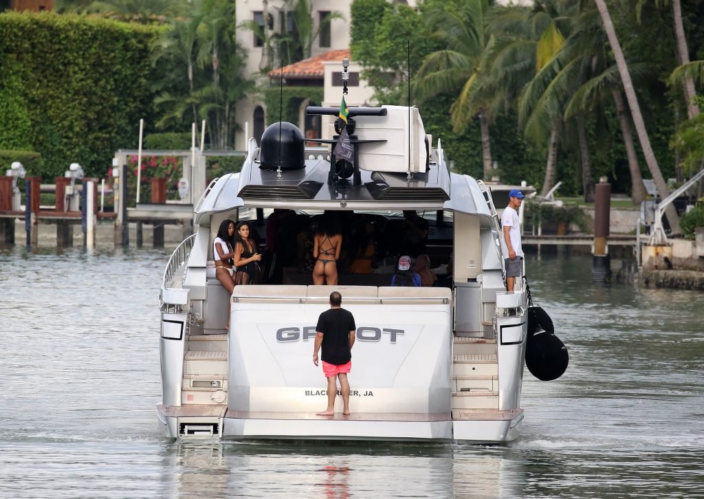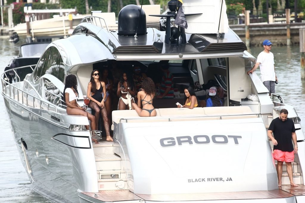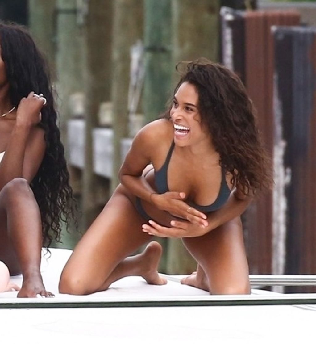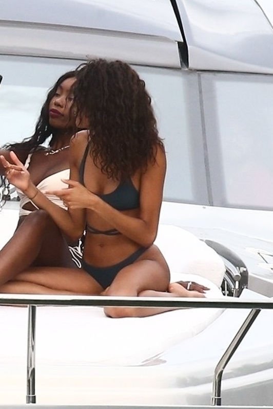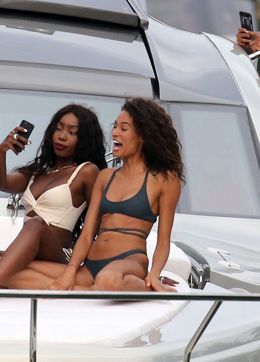 Cindy Bruna muestra sus curvas en un bikini con otras chicas en un yate en Miami, 28/07/2018. Las mejores amigas de las modelos estaban tomando el viaje inaugural en el nuevo barco del magnate de clubes nocturnos Dave Grutman.