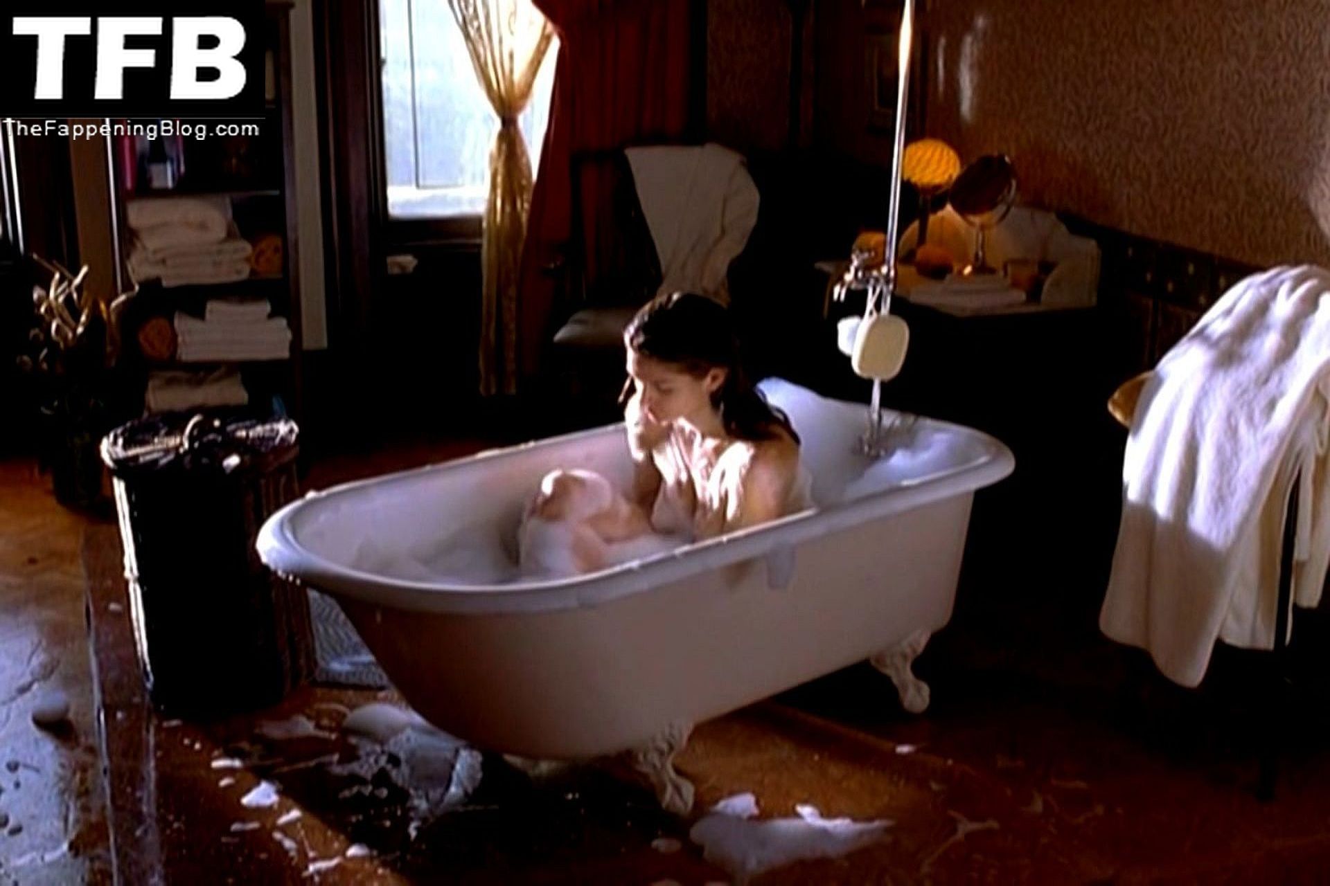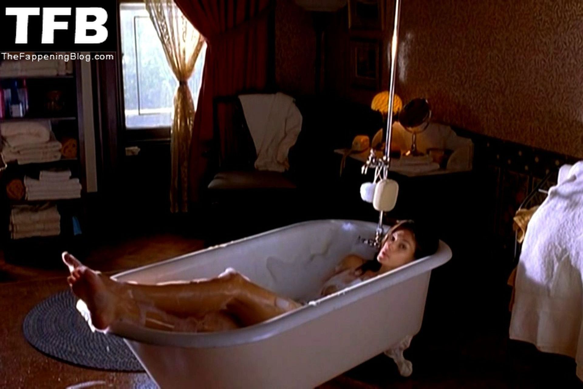 Mira las capturas de pantalla de Cindy Crawford con una escena ligeramente desnuda de “The Simian Line“, mostrando sus pechos desnudos y mojados.