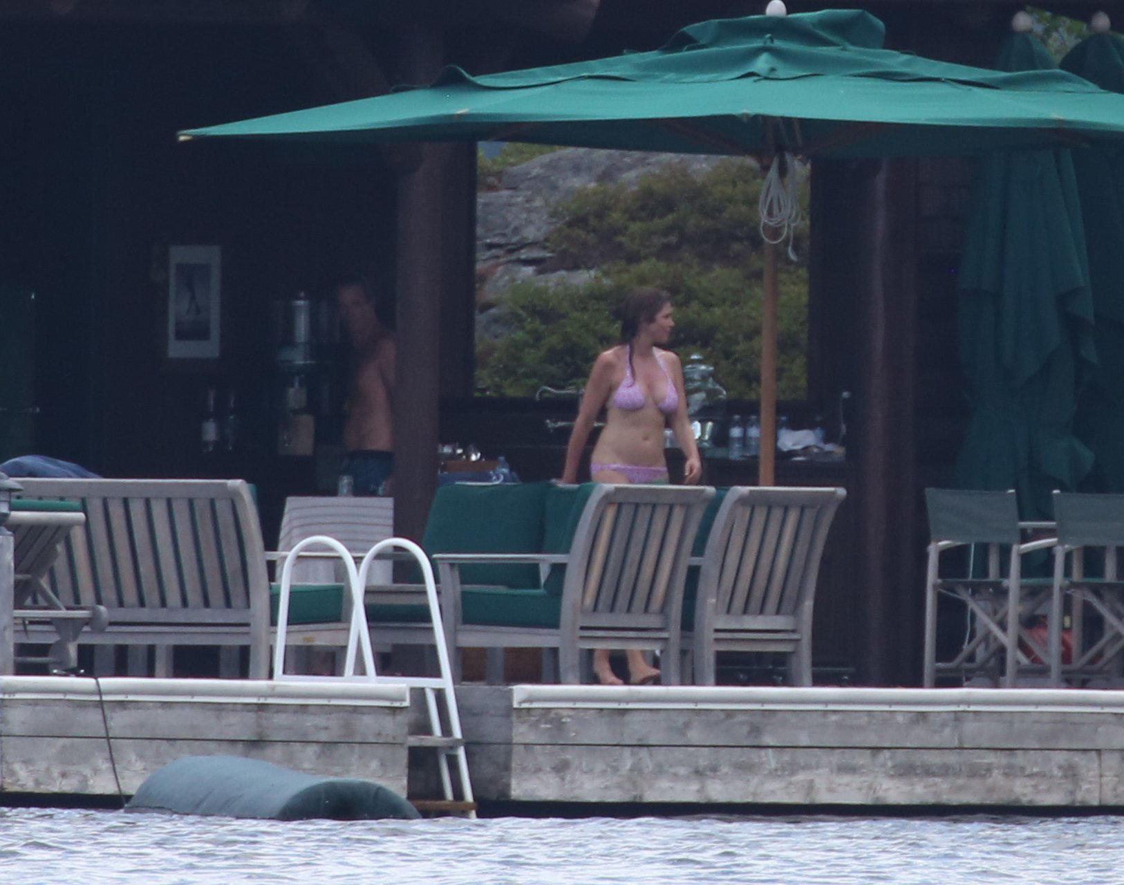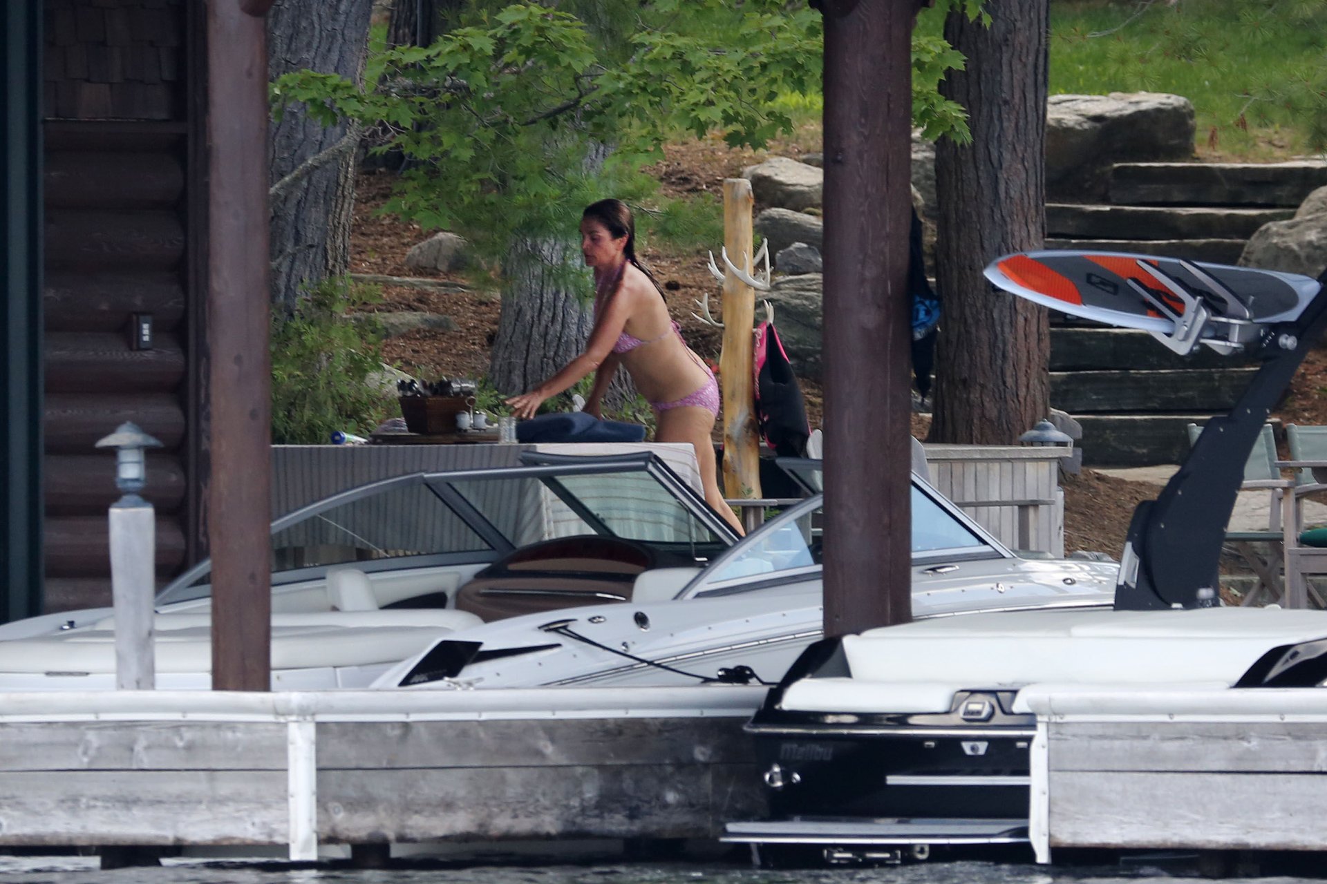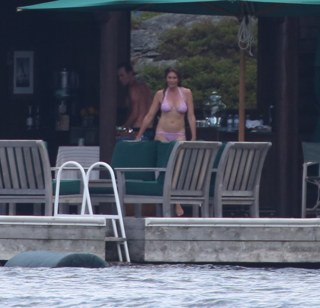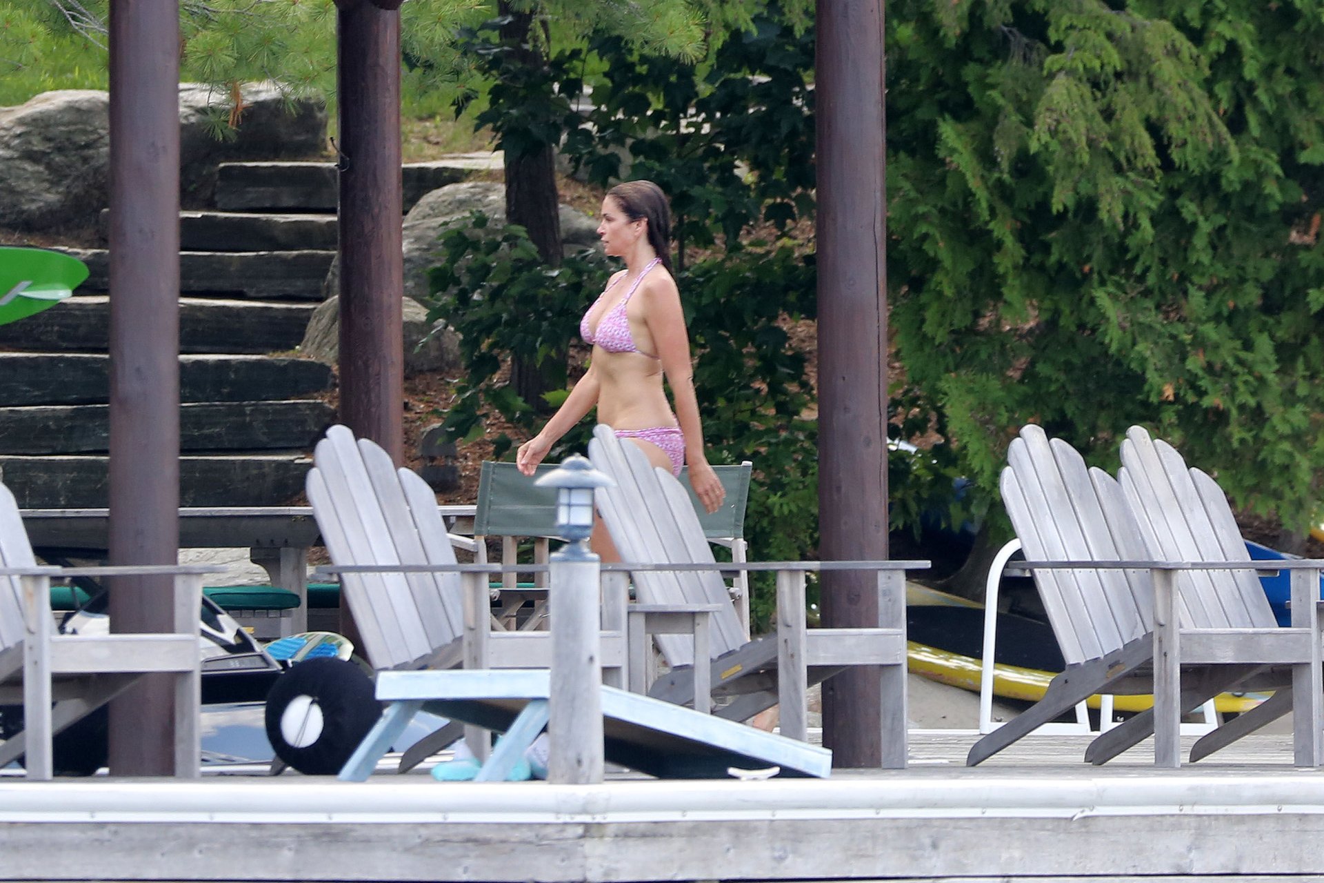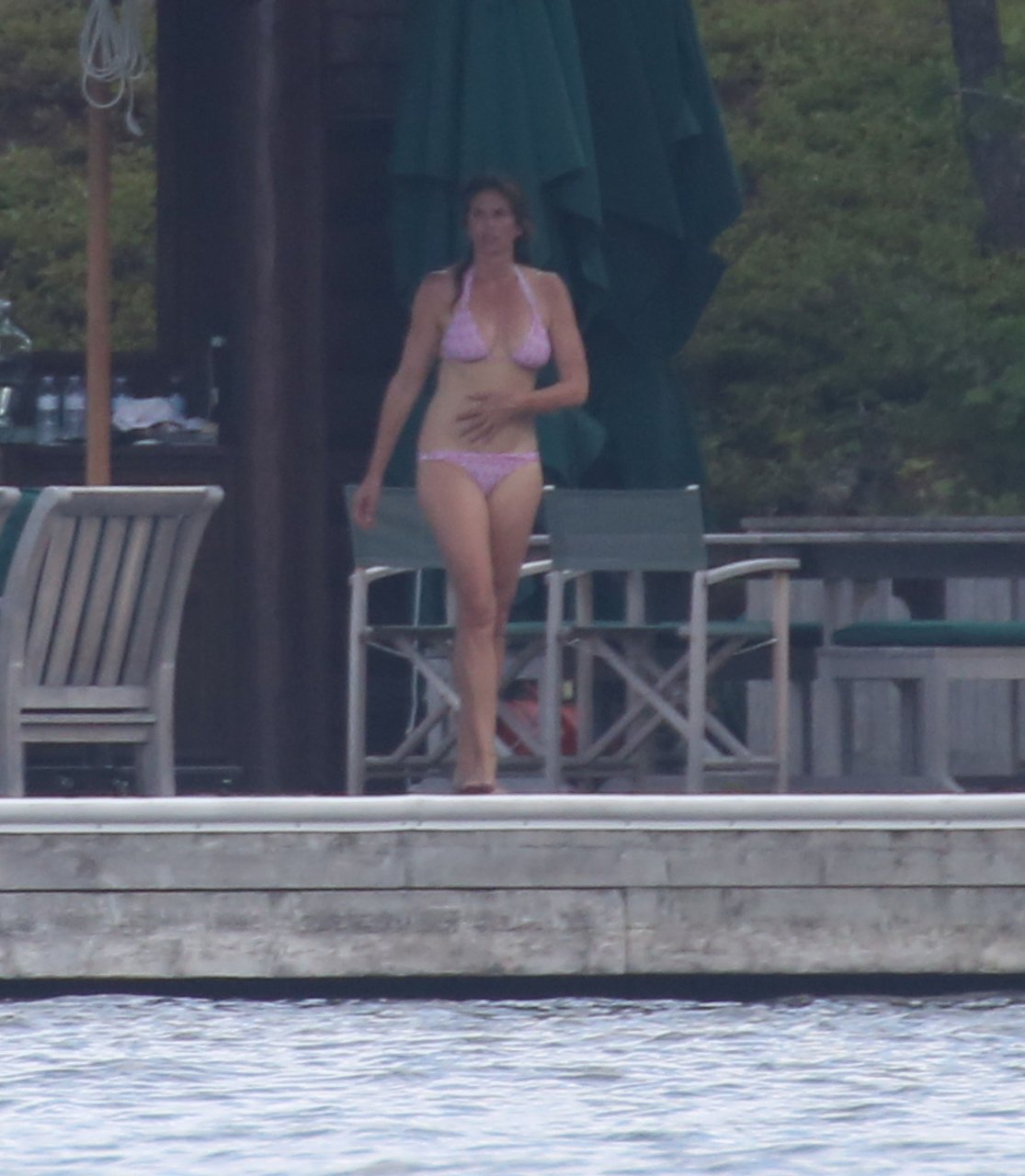 La modelo Cindy Crawford (52) fue vista en su casa de vacaciones en Muskoka, Canadá, tomando un baño a última hora de la tarde con su esposo Rande Gerber, 11/07/2018.
