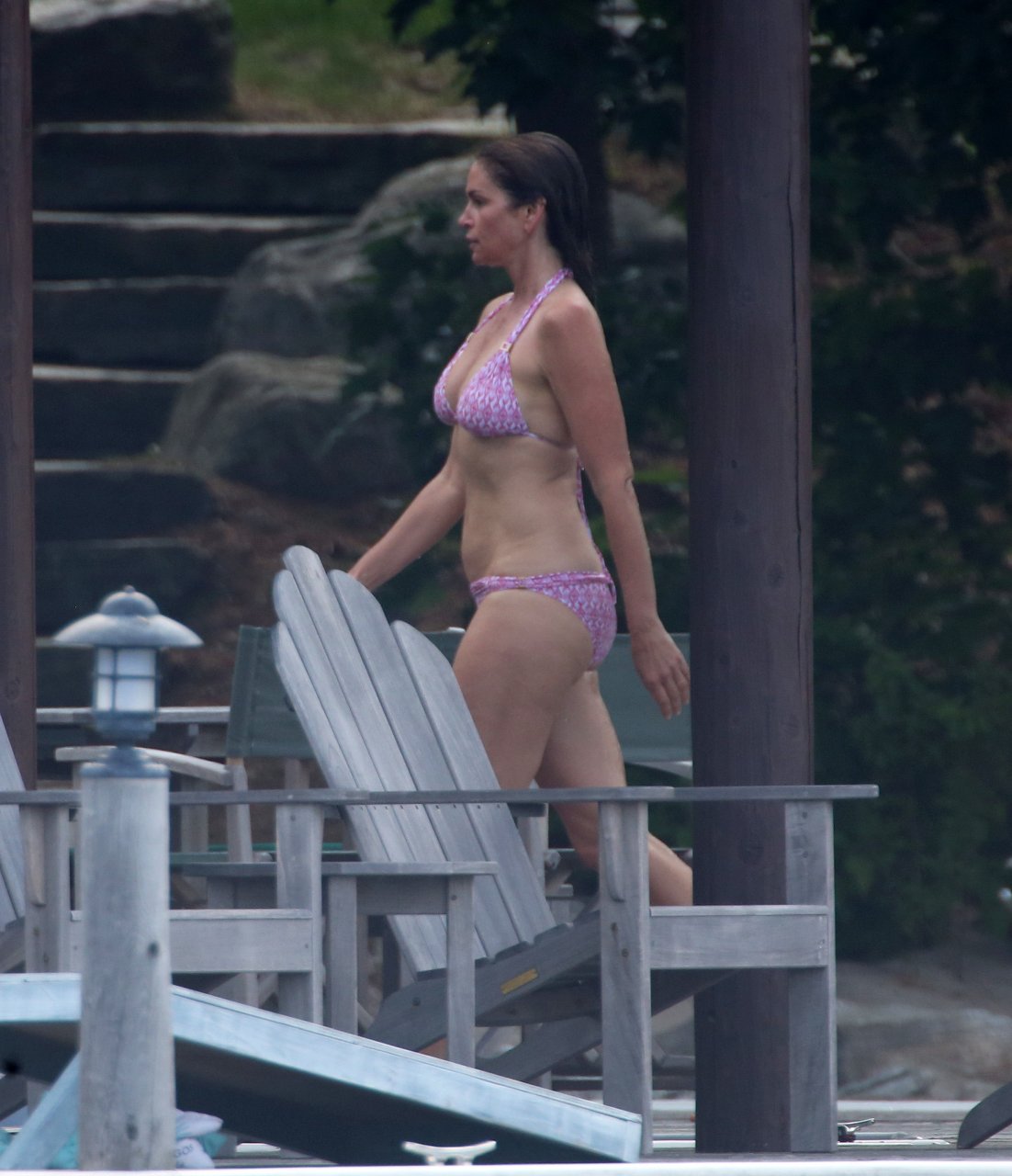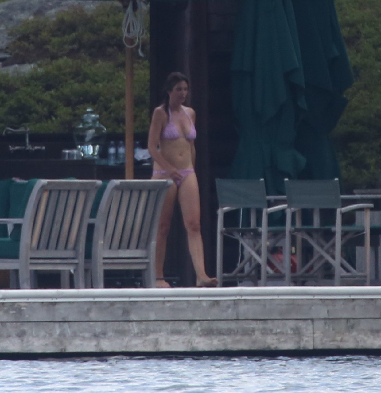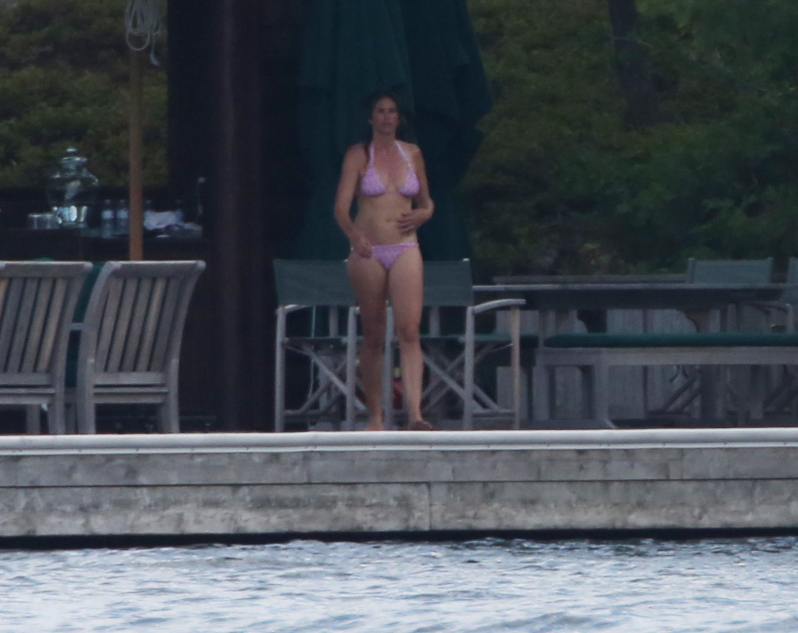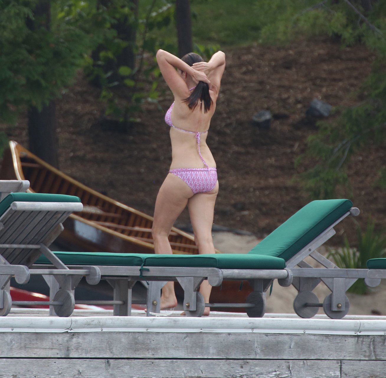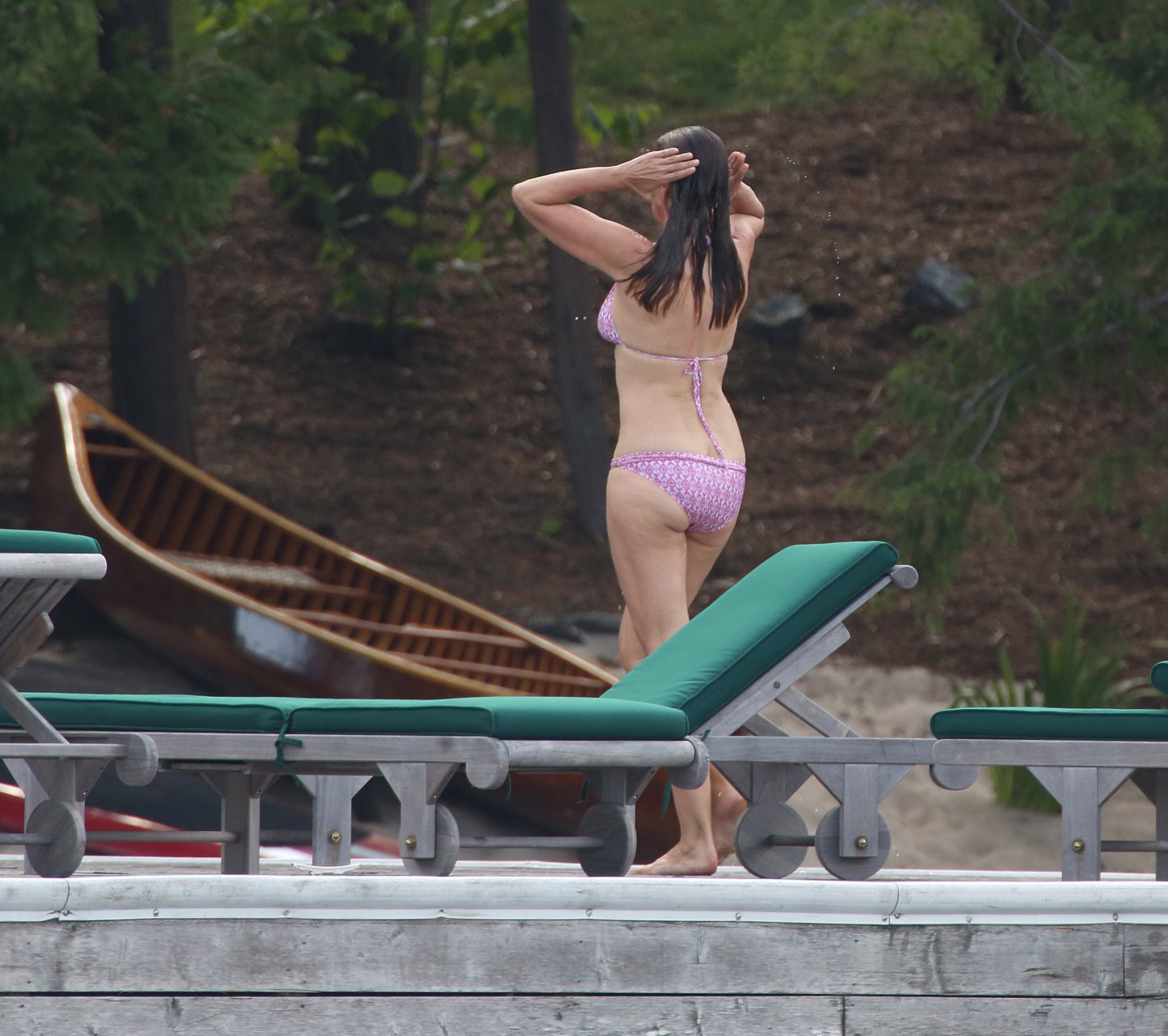 La modelo Cindy Crawford (52) fue vista en su casa de vacaciones en Muskoka, Canadá, tomando un baño a última hora de la tarde con su esposo Rande Gerber, 11/07/2018.