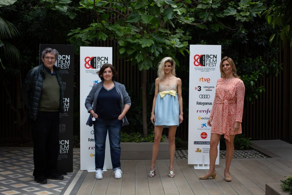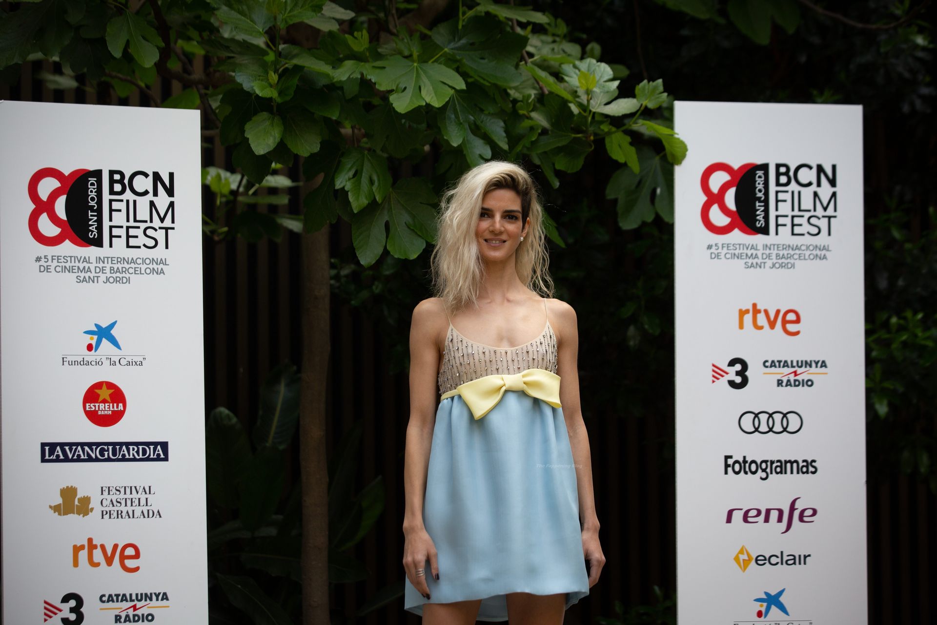 La actriz de piernas largas Clara Lago posa sin sujetador en la sesión de fotos de la película Crónica de una tormenta en el BCN Film Fest en Barcelona, 22/04/2021. La película se estrenará en cines el 30 de abril.