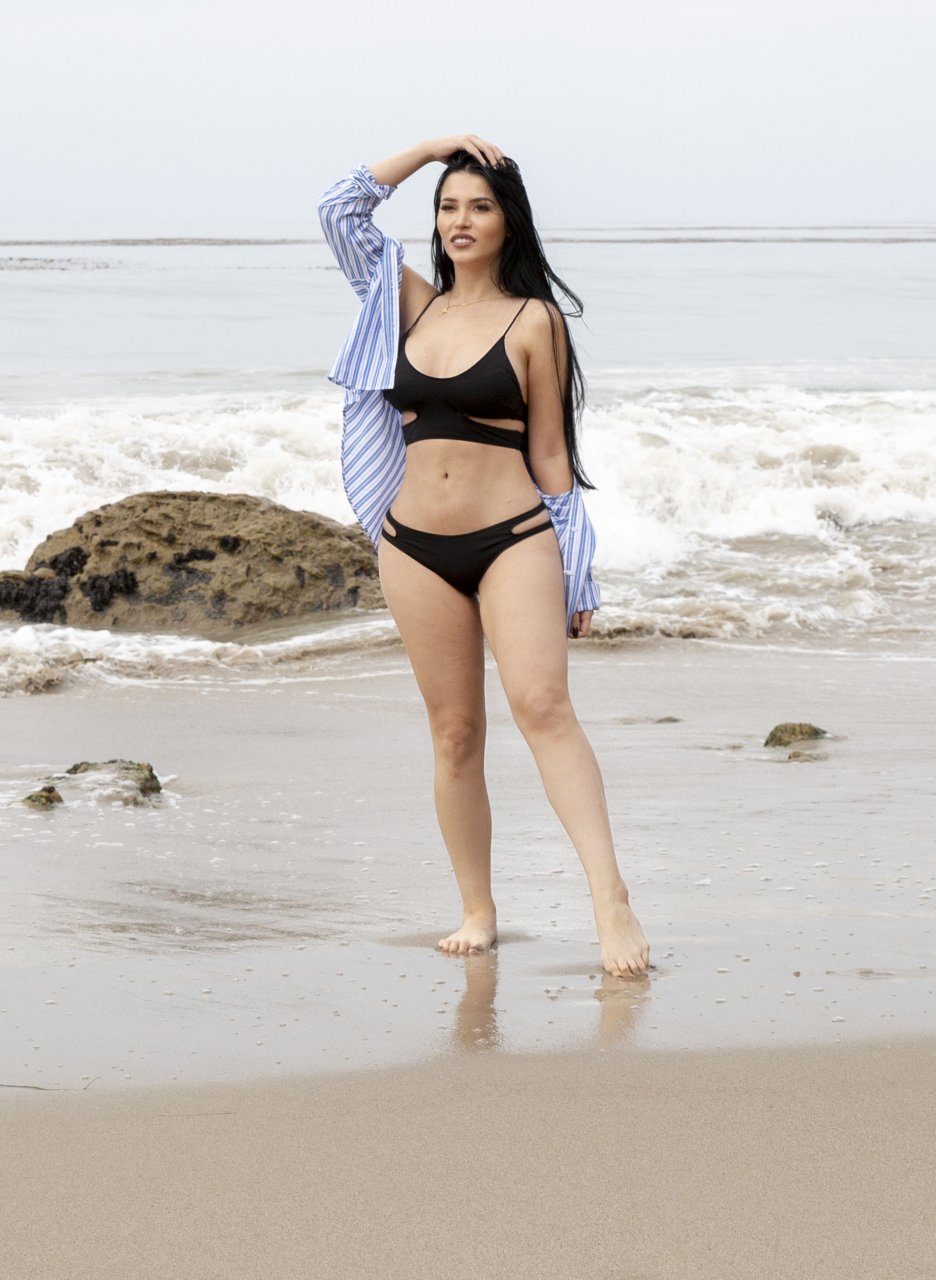 La sensación de las redes sociales Claudia Alende, que tiene más de 10 millones de seguidores solo en Instagram, mostró sus famosas curvas con un bikini negro que la convirtió en una candidata favorita de Miss Bumbum, 20/07/2018. Fue vista en la playa de Los Ángeles, donde ha estado intentando lanzar una carrera como actriz de cine y cantante.