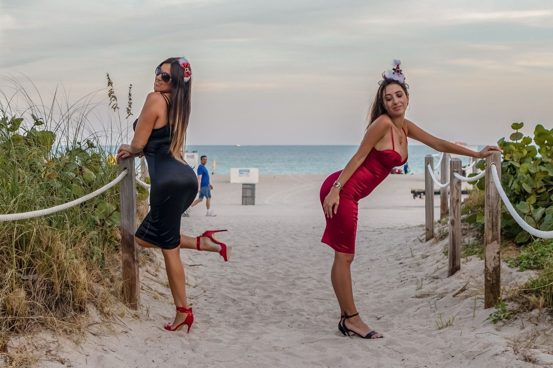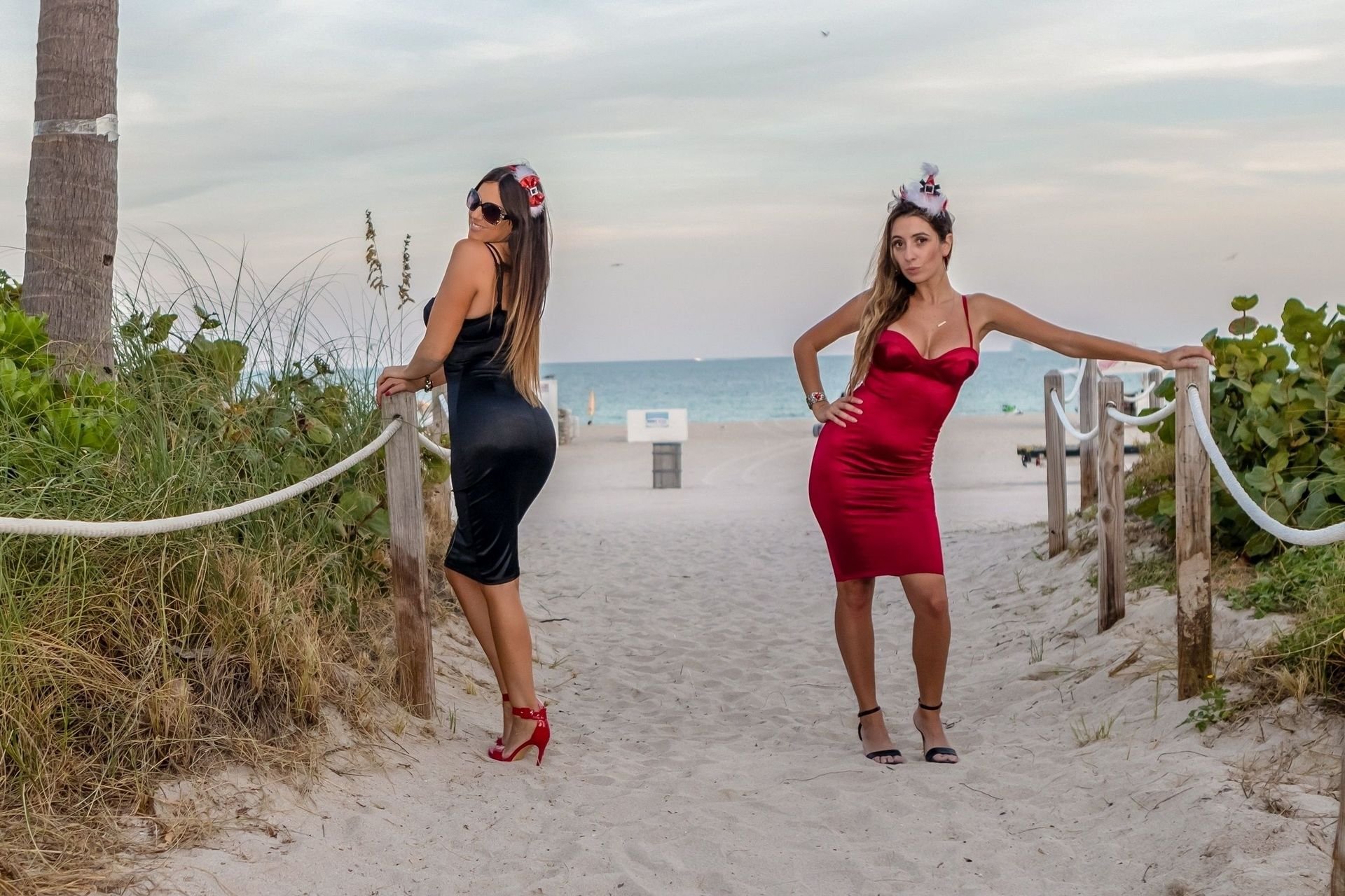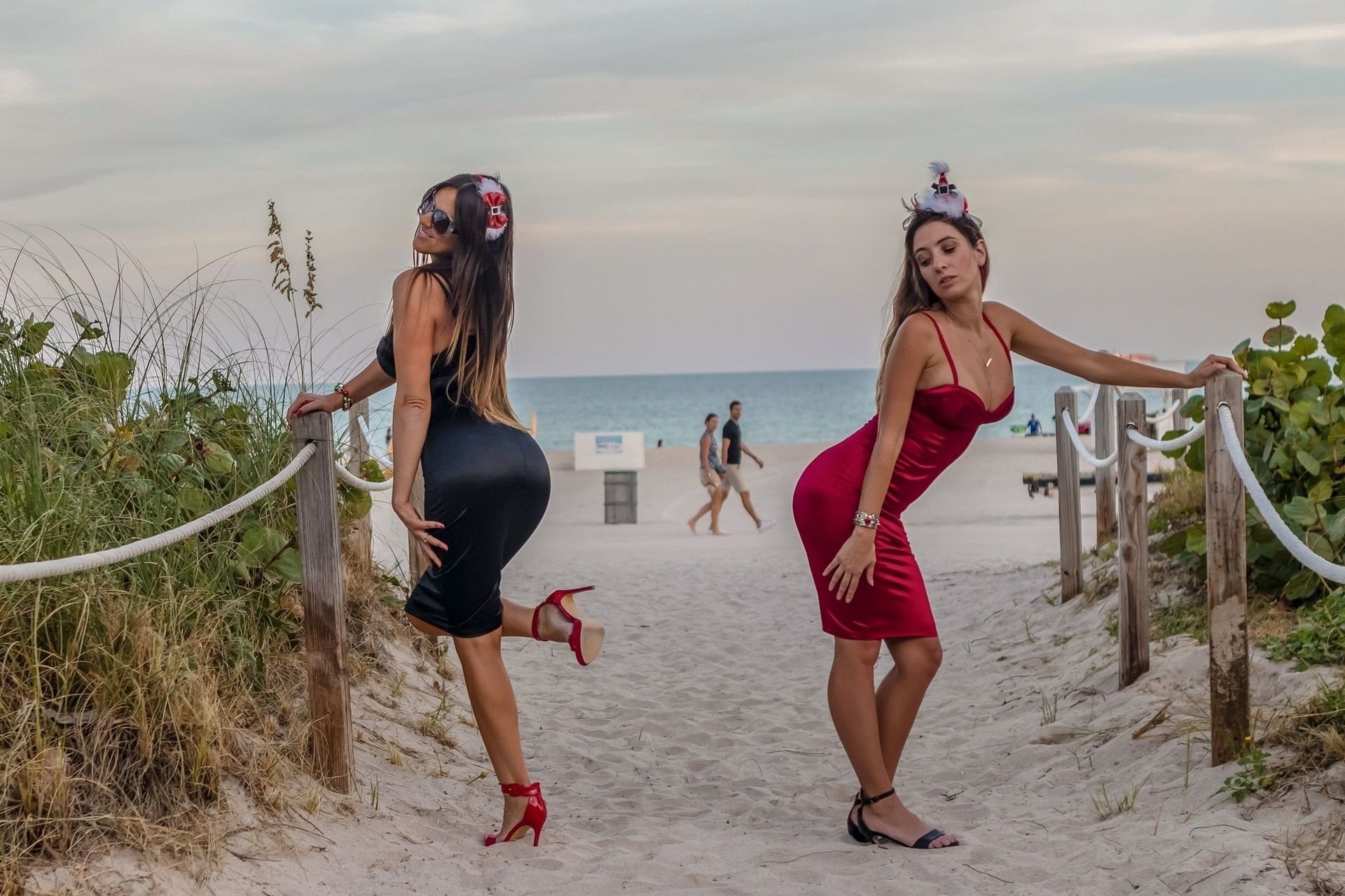La modelo y estrella de reality show Claudia Romani estaba arreglada y lista para salir con la YouTuber de LA Lauren Francesca, 29/11/2018. Estaban en South Beach, justo al lado del paseo marítimo, tomando selfies y haciendo videos. Llevaban colores navideños y tocados.
