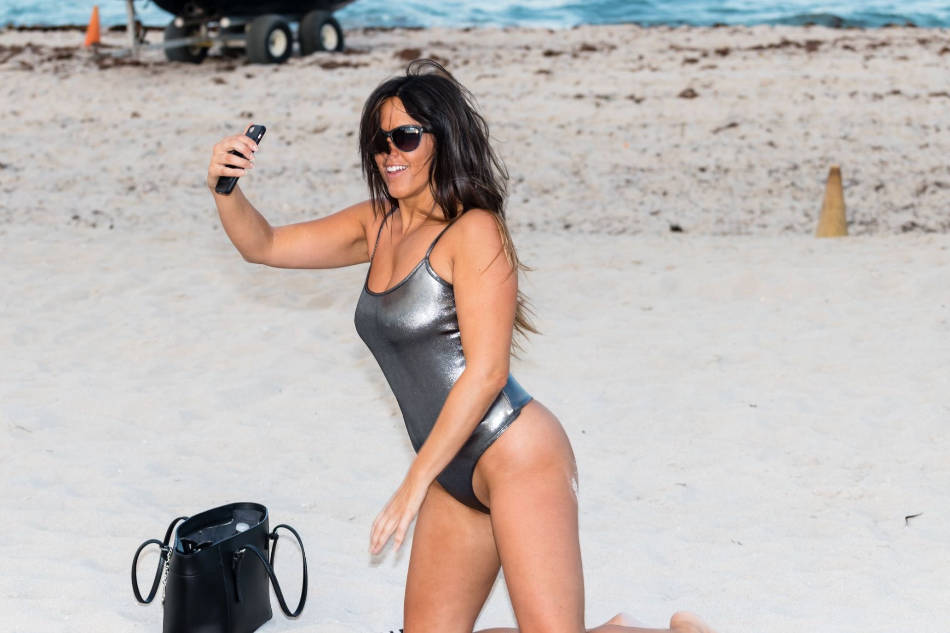 Claudia Romani lleva un sexy traje de baño plateado en la playa de Miami, 11/03/2017. Claudia Romani es una modelo de L’Aquila (Italia). Edad – 34 (14 de abril de 1982).