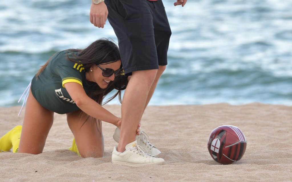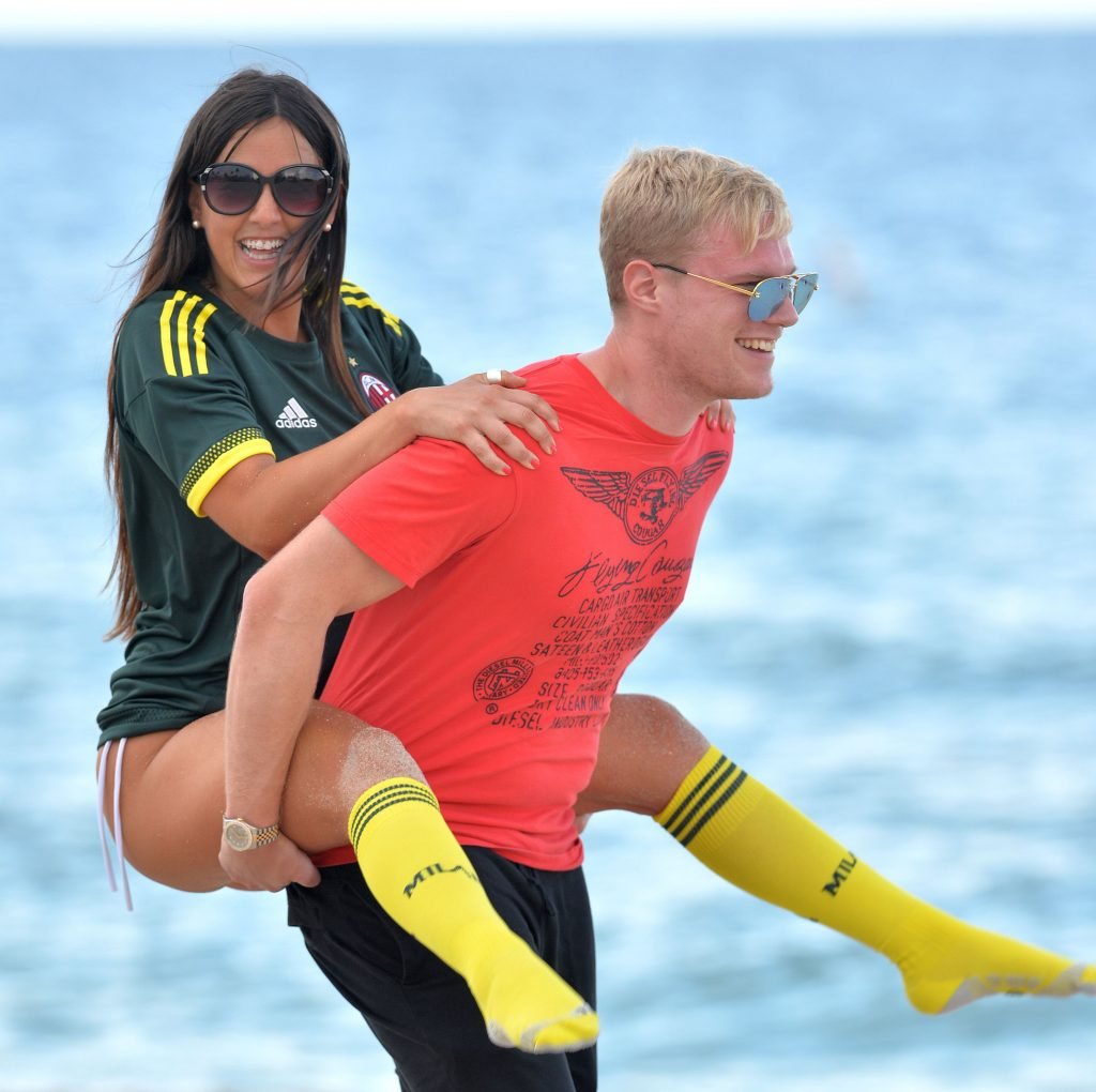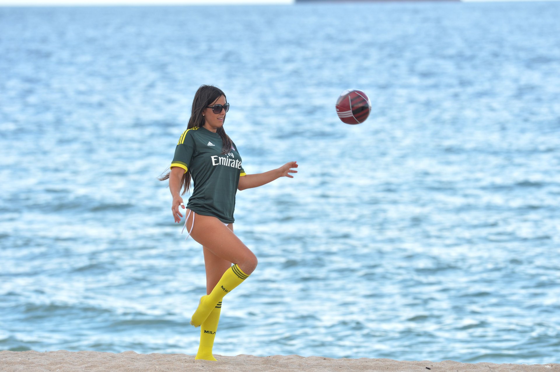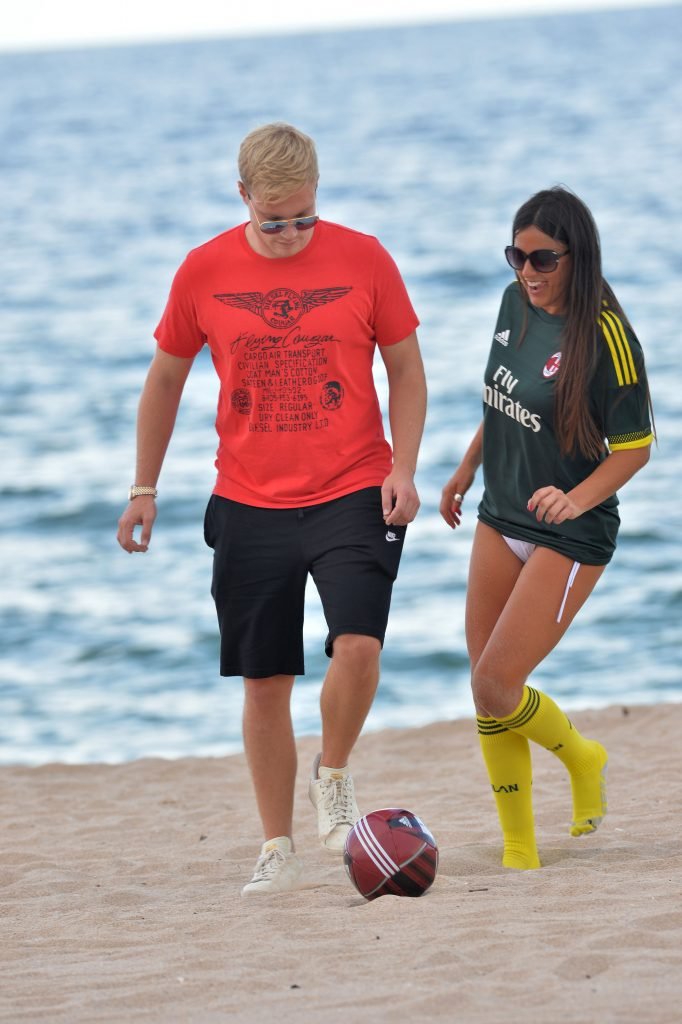 Claudia Romani luce increíblemente sexy con su camiseta del AC Milan jugando con su novio, el empresario Chris Johns en Sunny Isles Beach, 19/07/2017. Claudia Romani es modelo, ex estrella del programa francés de telerrealidad ‘Secret story 9’ y ganadora de la chica morena del año 2016 para Playboy Italia.