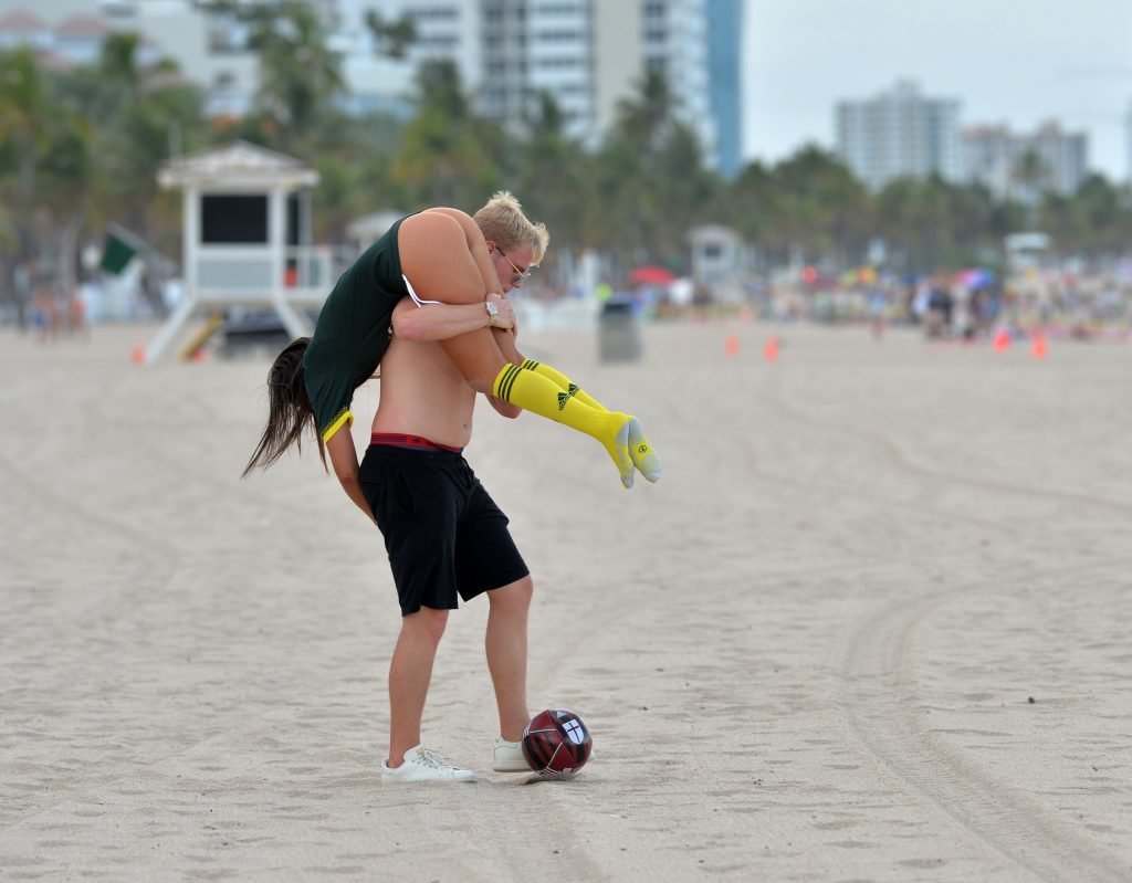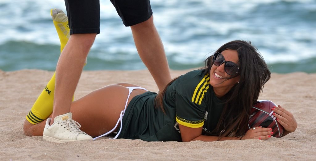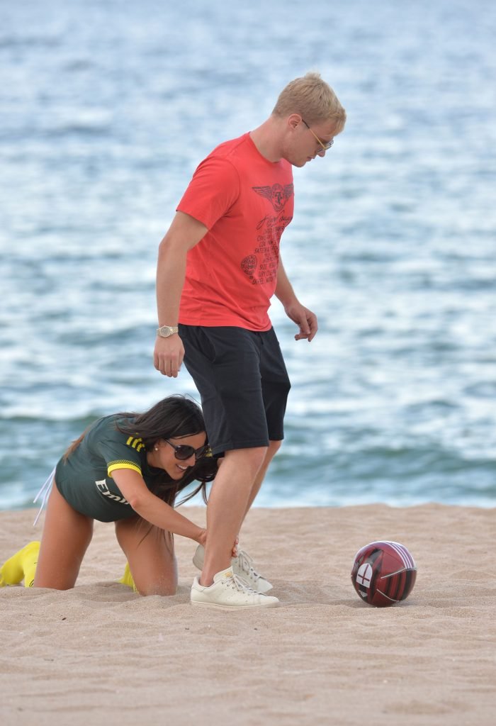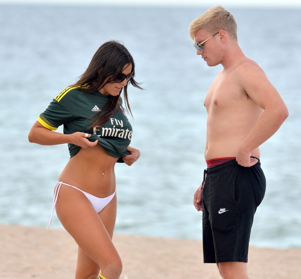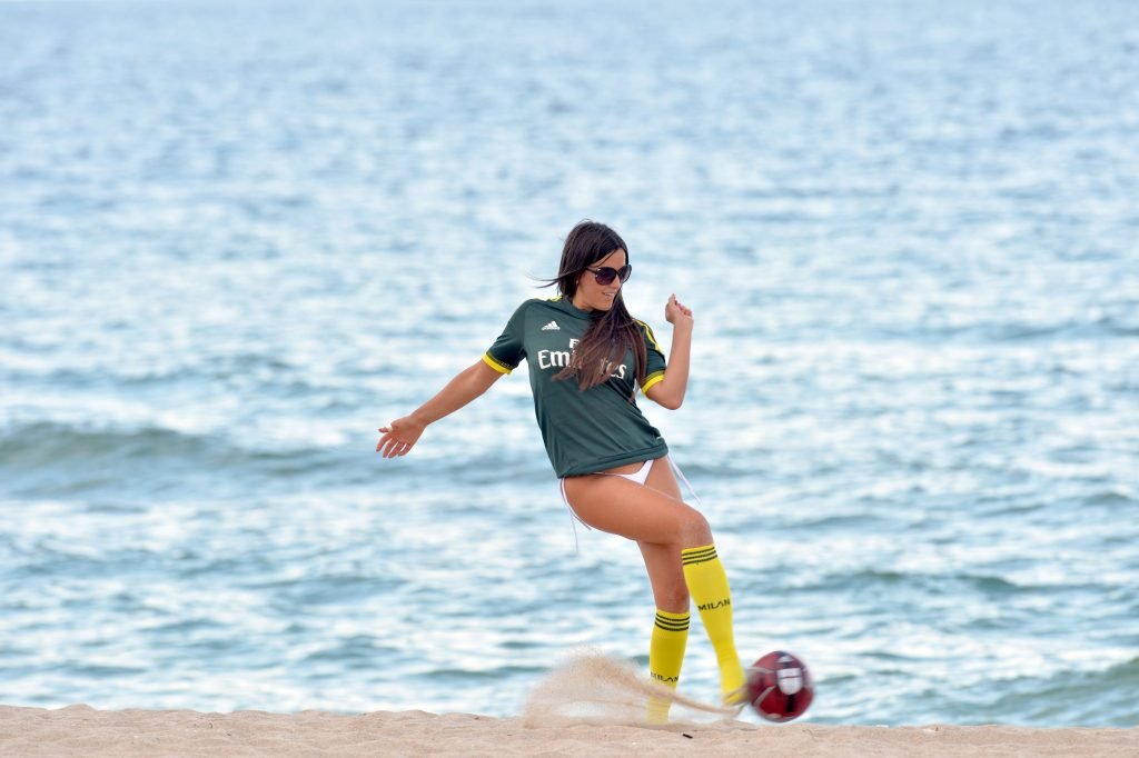 Claudia Romani luce increíblemente sexy con su camiseta del AC Milan jugando con su novio, el empresario Chris Johns en Sunny Isles Beach, 19/07/2017. Claudia Romani es modelo, ex estrella del programa francés de telerrealidad ‘Secret story 9’ y ganadora de la chica morena del año 2016 para Playboy Italia.