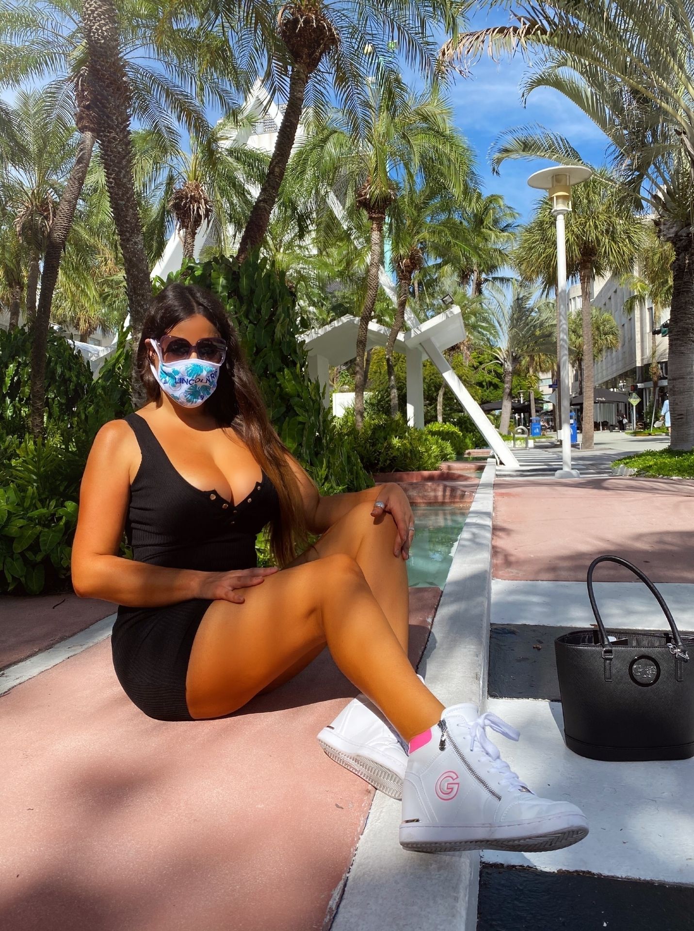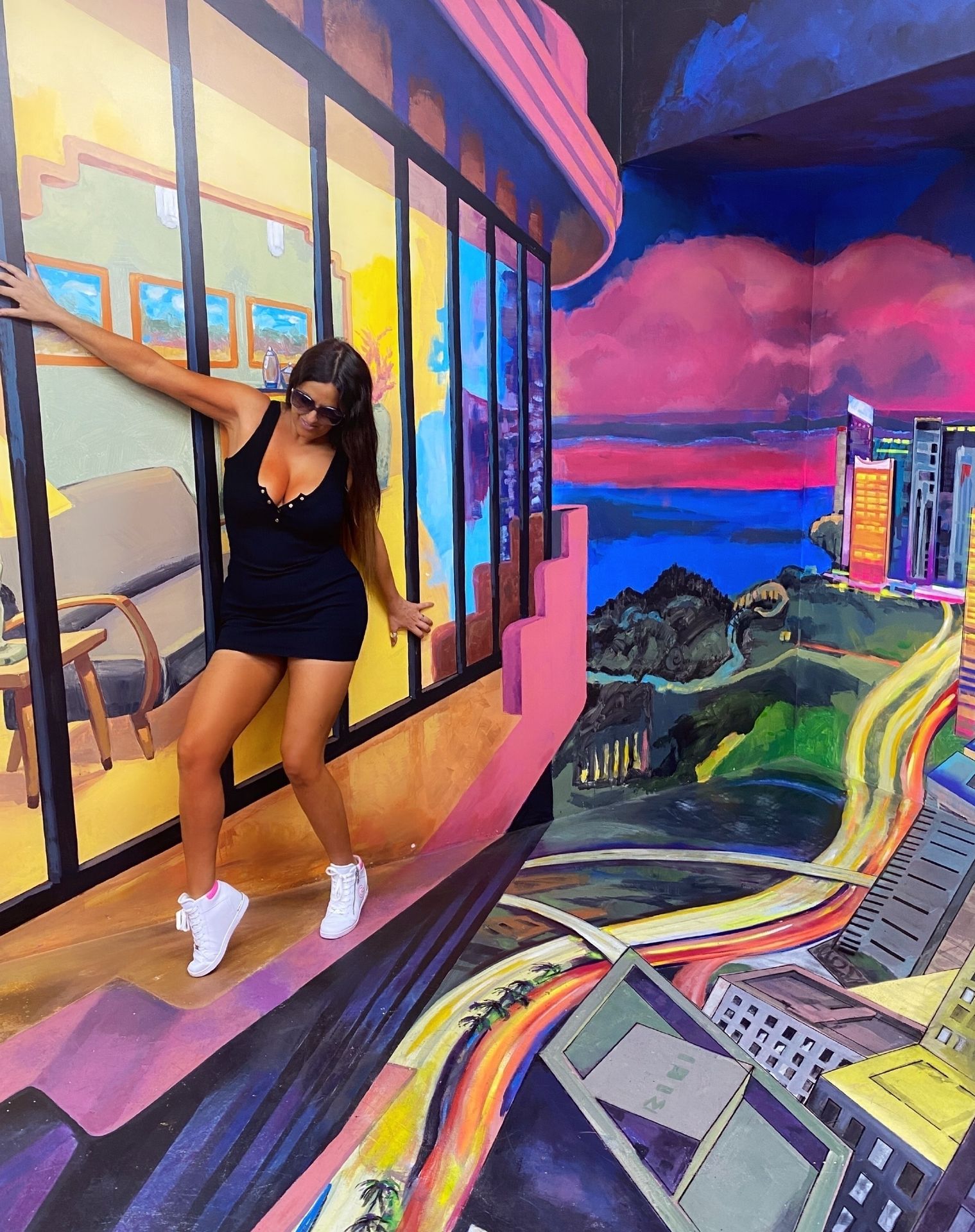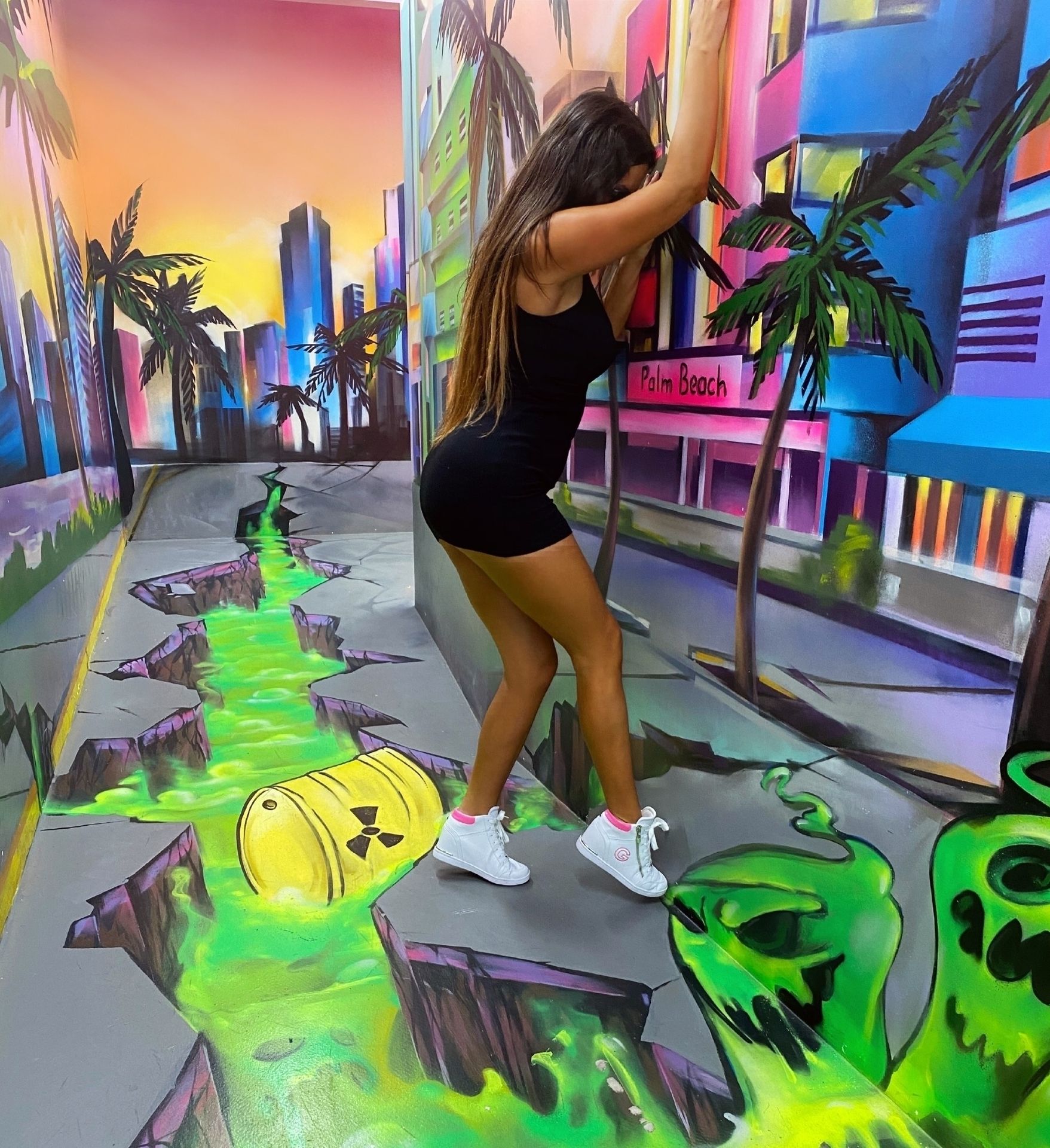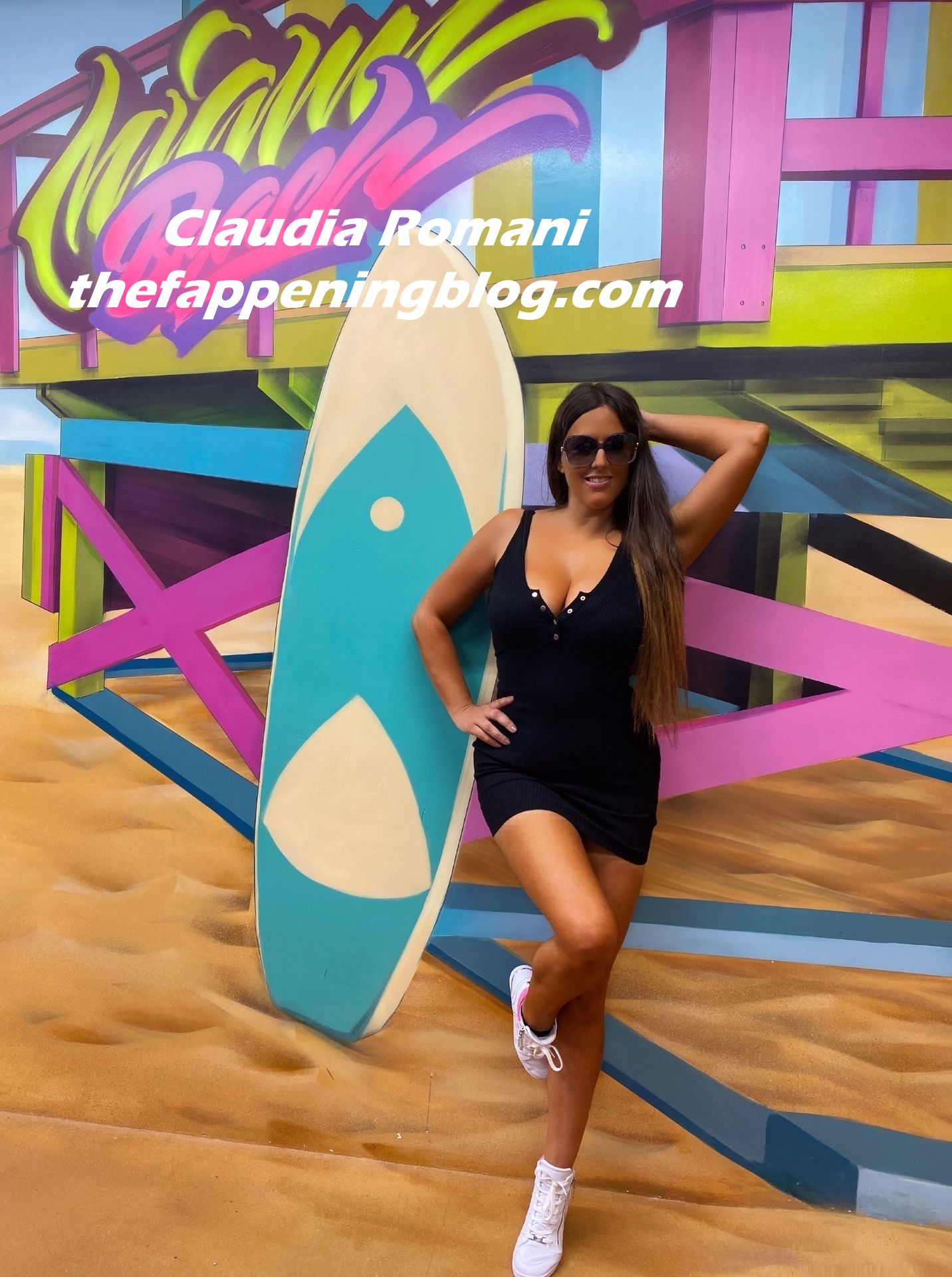 La personalidad de televisión italoamericana Claudia Romani fue vista pasando un gran momento con su novio durante una visita al Museo de las Ilusiones en Lincoln Road – Miami Beach, 12/08/2020. La modelo llevaba un pequeño vestido negro y zapatillas blancas y posó para fotos divertidas.