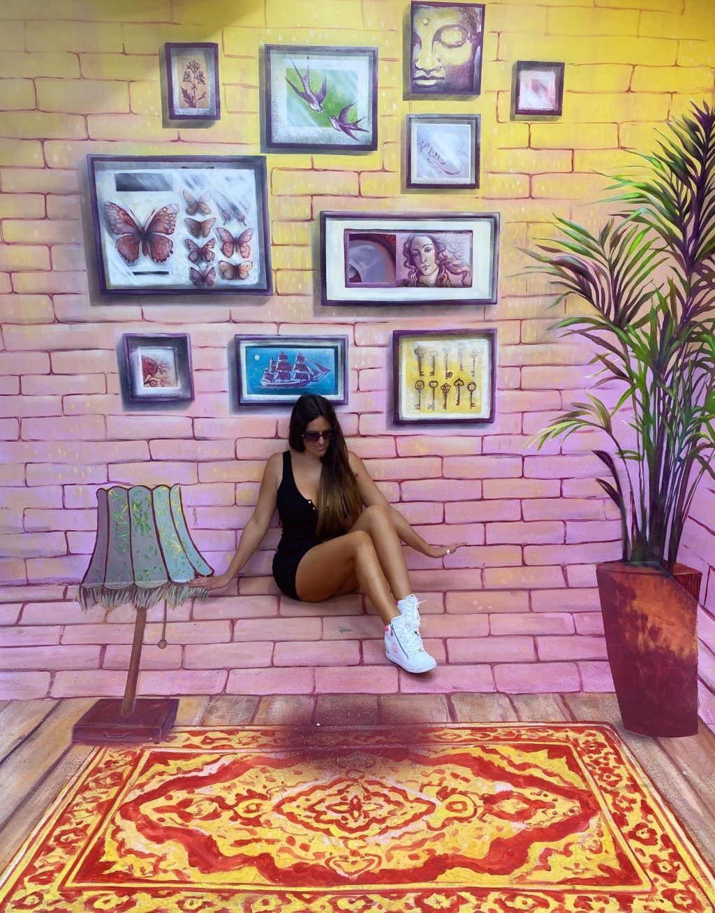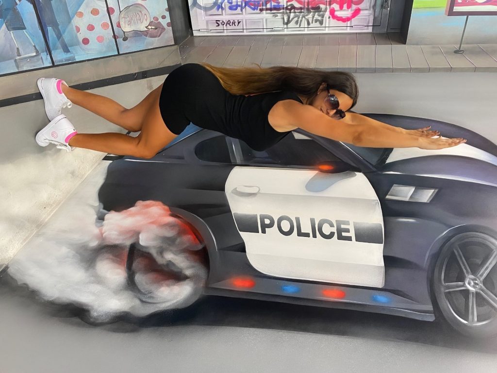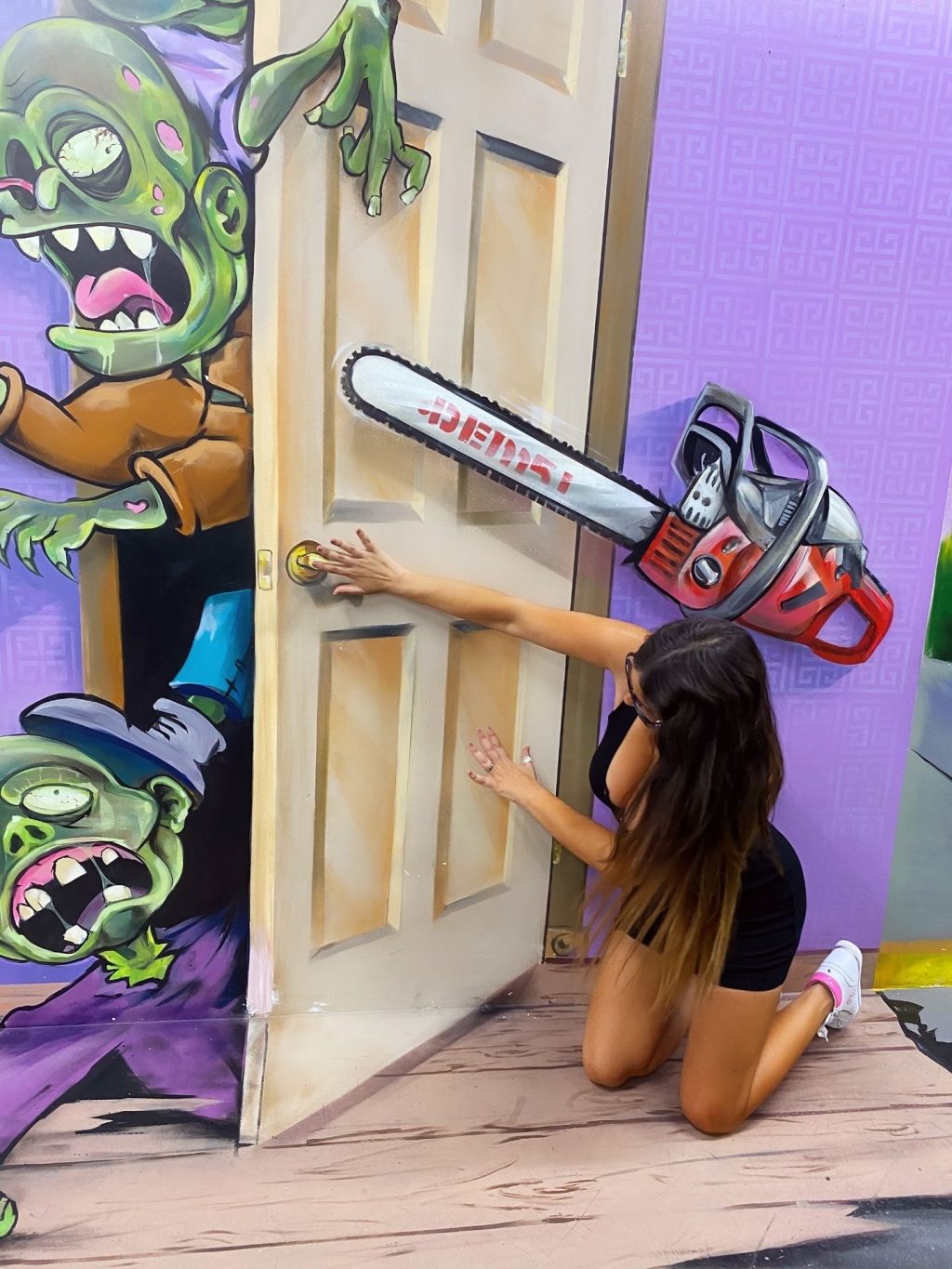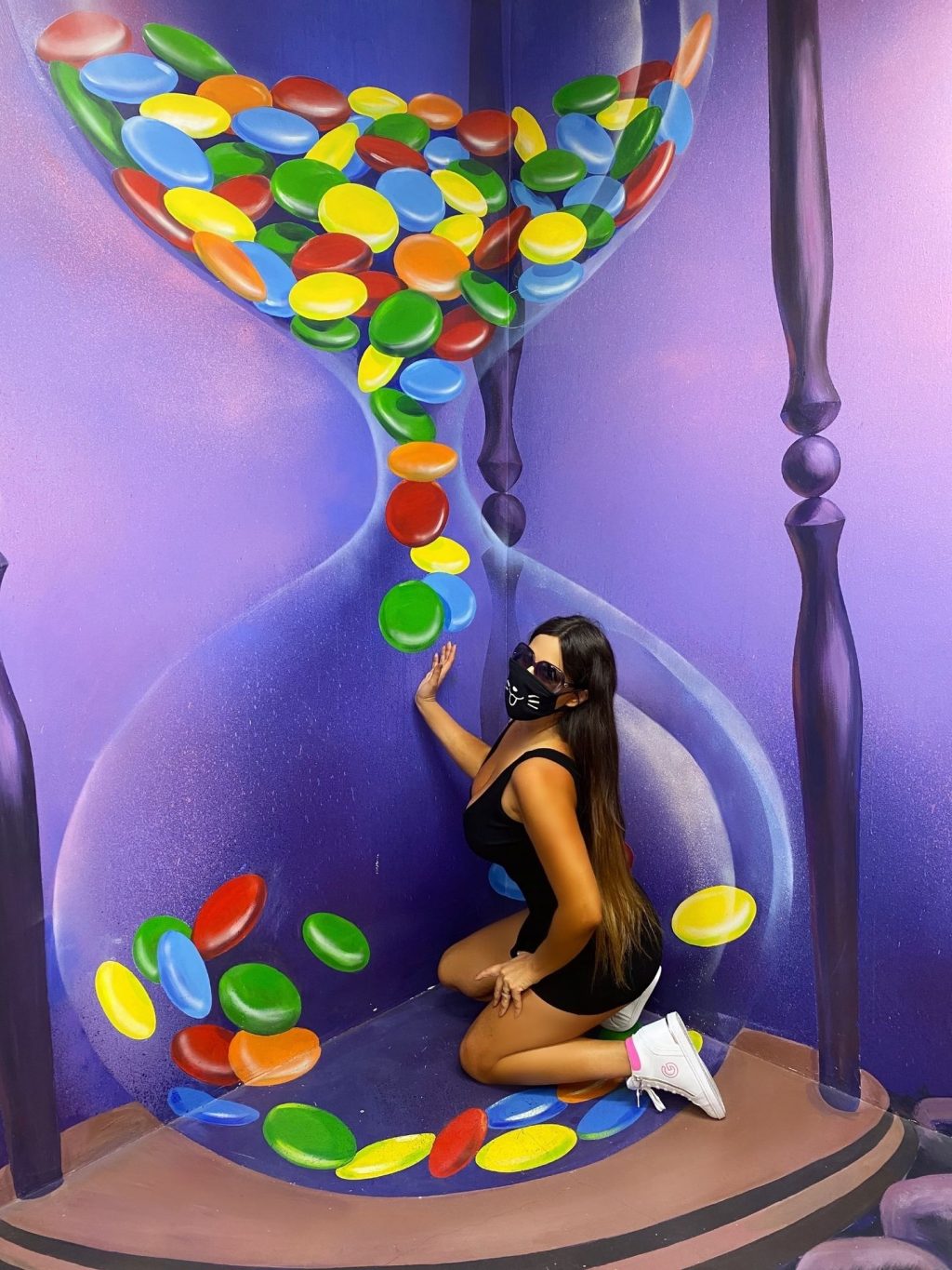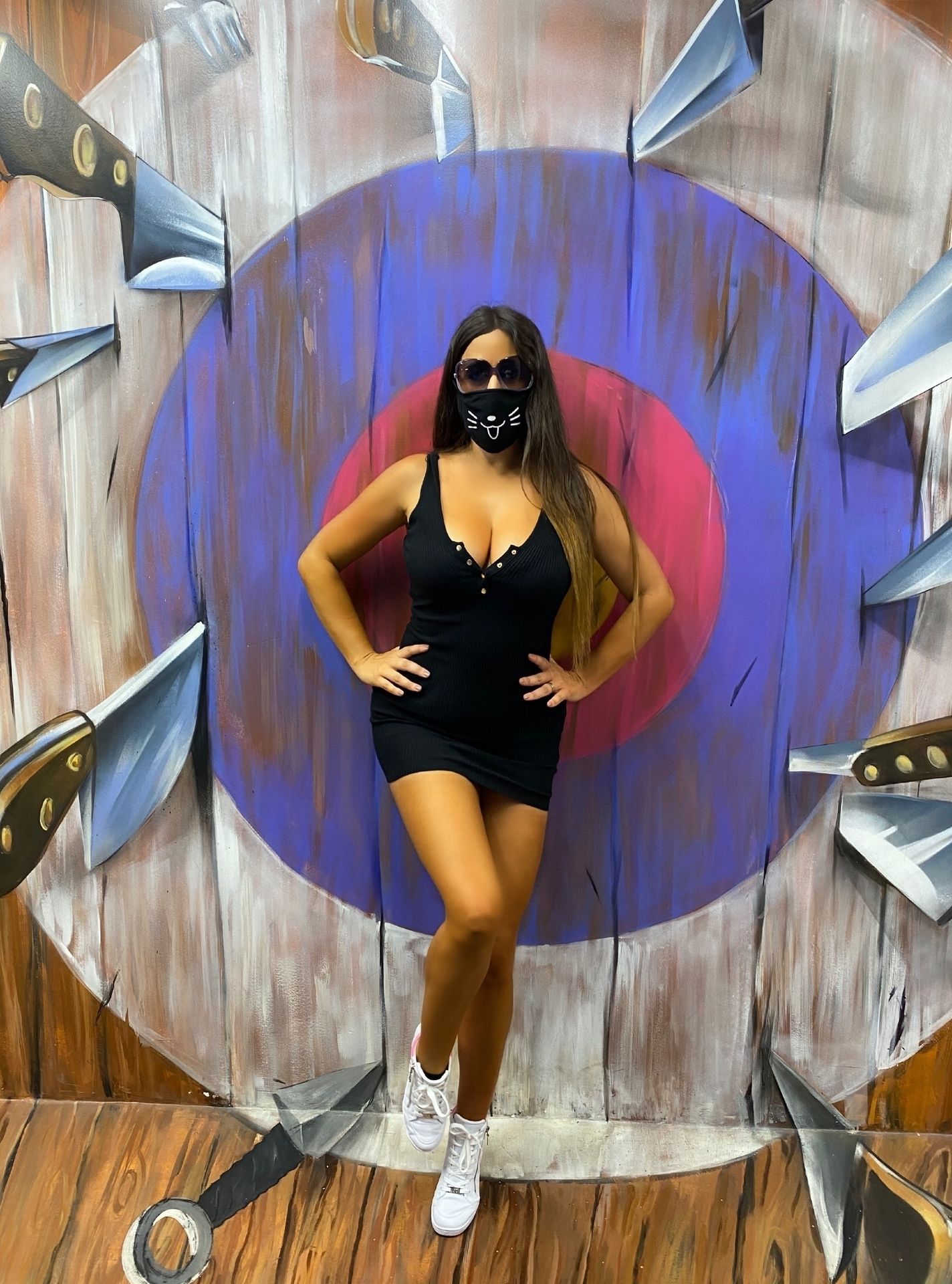 La personalidad de televisión italoamericana Claudia Romani fue vista pasando un gran momento con su novio durante una visita al Museo de las Ilusiones en Lincoln Road – Miami Beach, 12/08/2020. La modelo llevaba un pequeño vestido negro y zapatillas blancas y posó para fotos divertidas.