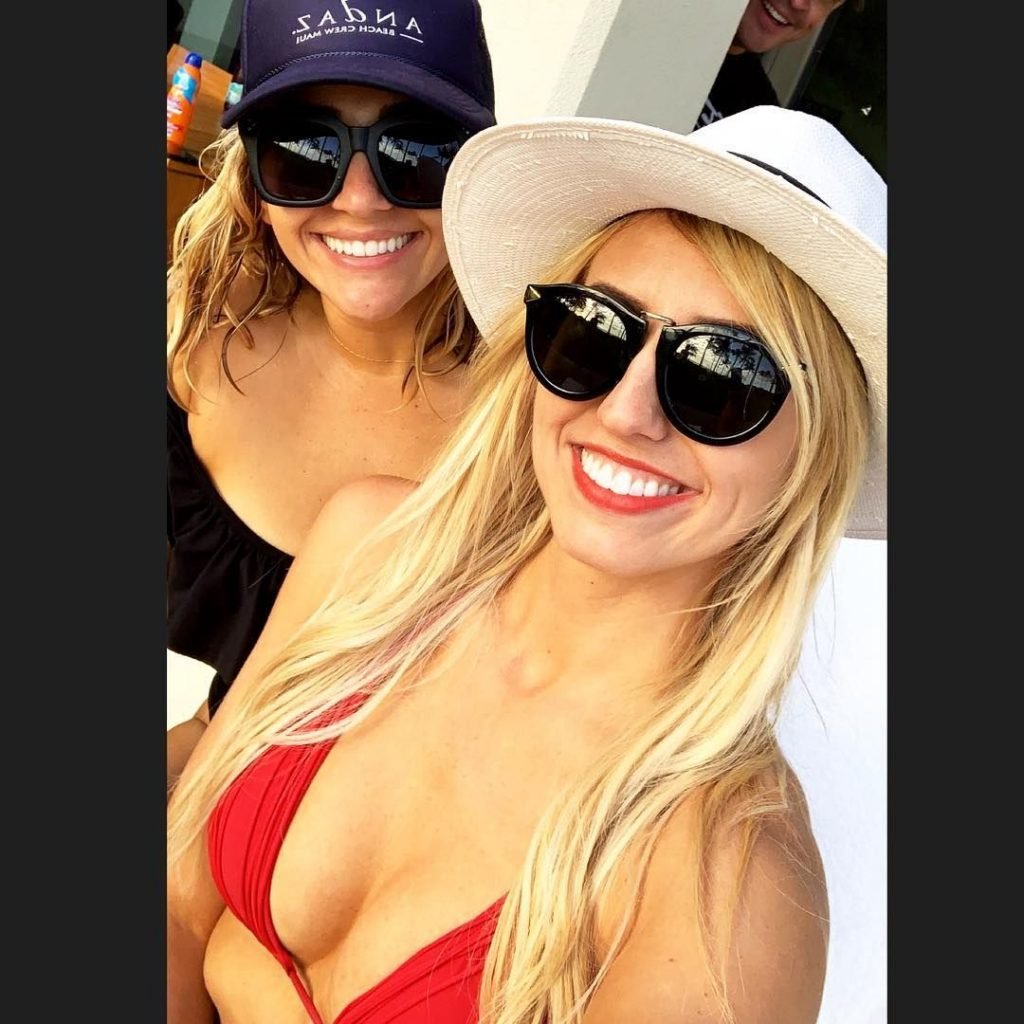 La piloto de drag Courtney Force (30) calienta la piscina con un bikini rojo mientras está de vacaciones con amigos en Hawái, 28/11/2018.