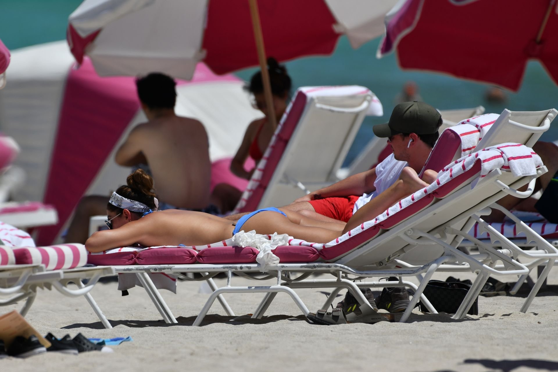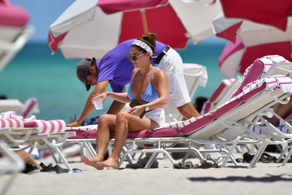 La estrella de 23 años de “The Only Way is Essex” fue vista relajándose en un bikini de estampado geométrico azul y blanco. Courtney, que anteriormente salió con Myles Barnett de Love Island, ha estado saliendo con Callum desde finales del año pasado.