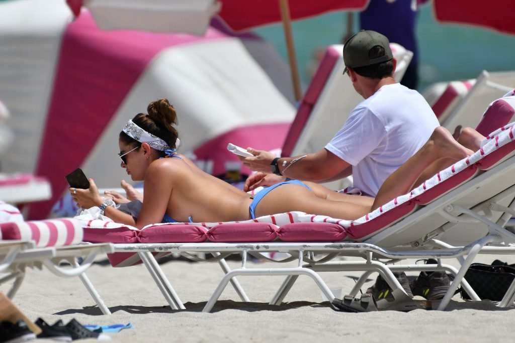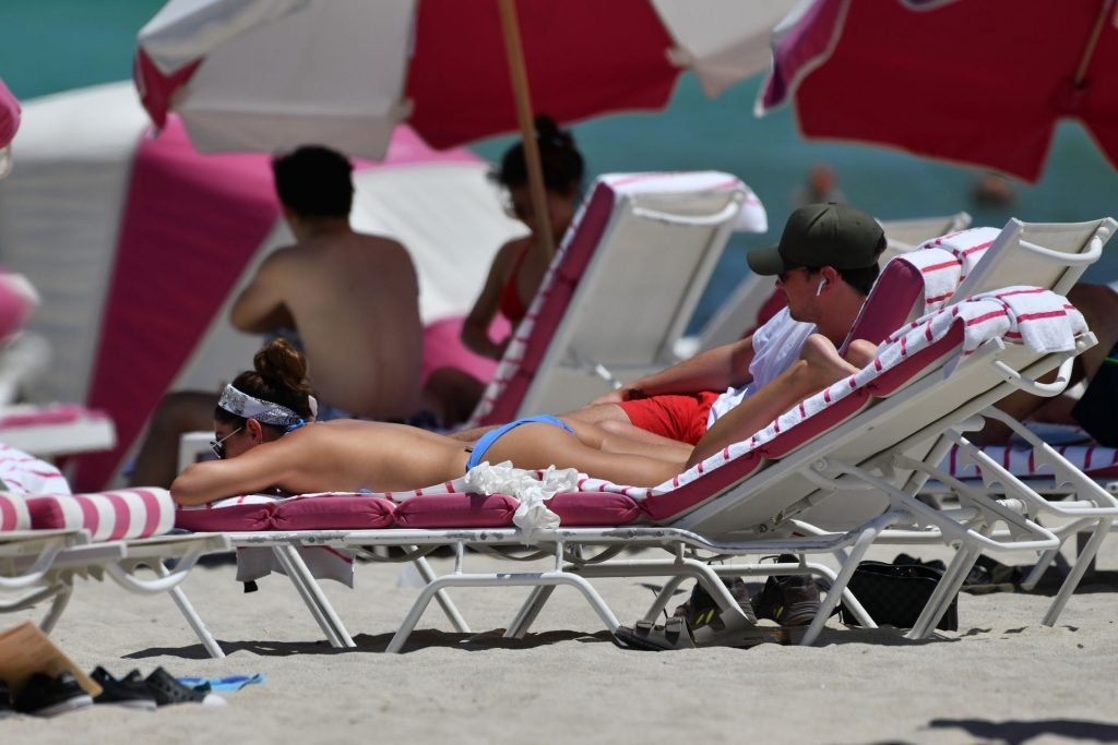 TOWIE estrella Courtney Green y su novio Callum Bushby muestran sus cuerpos de playa en Miami Beach, 06/06/2019.