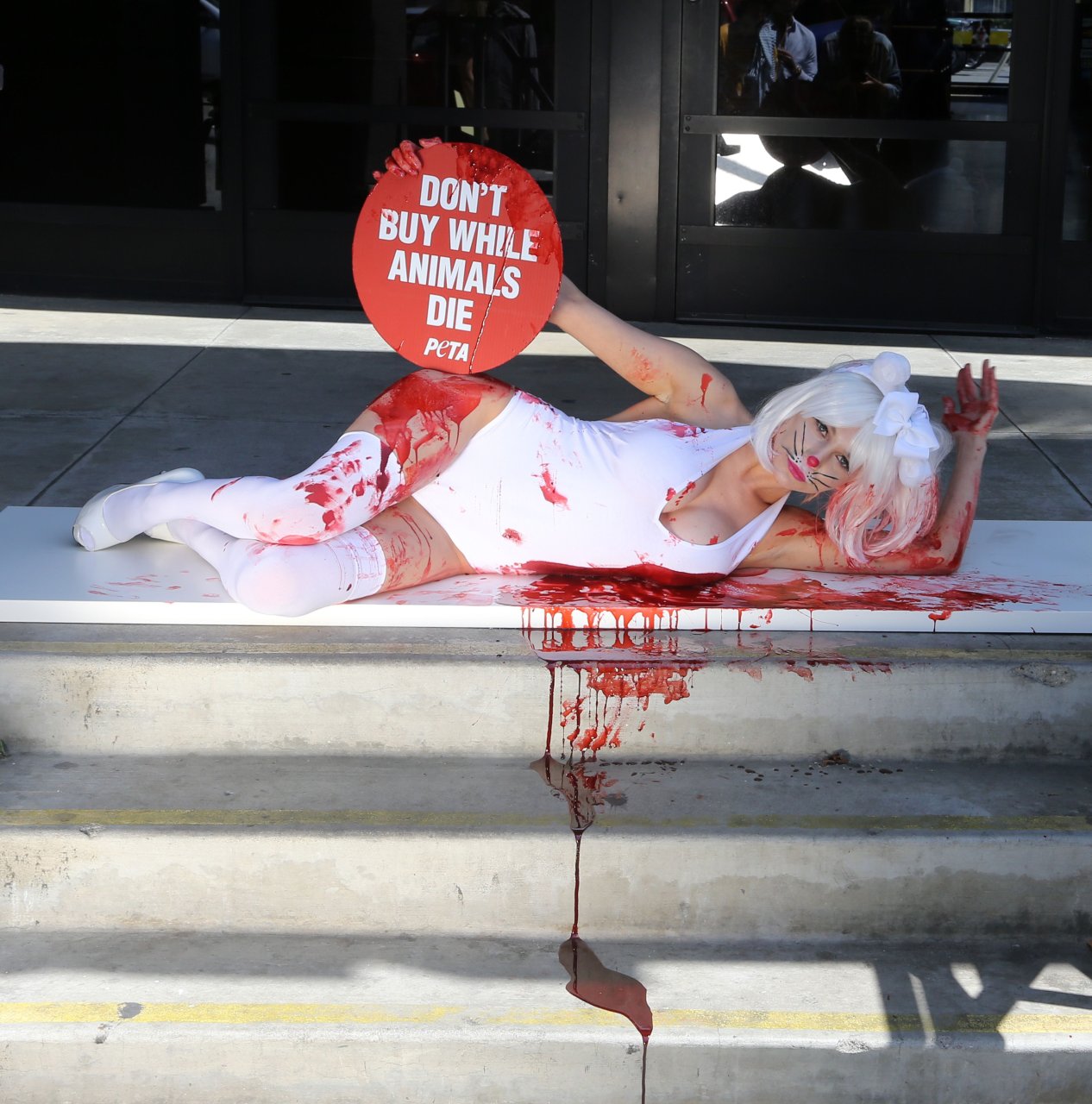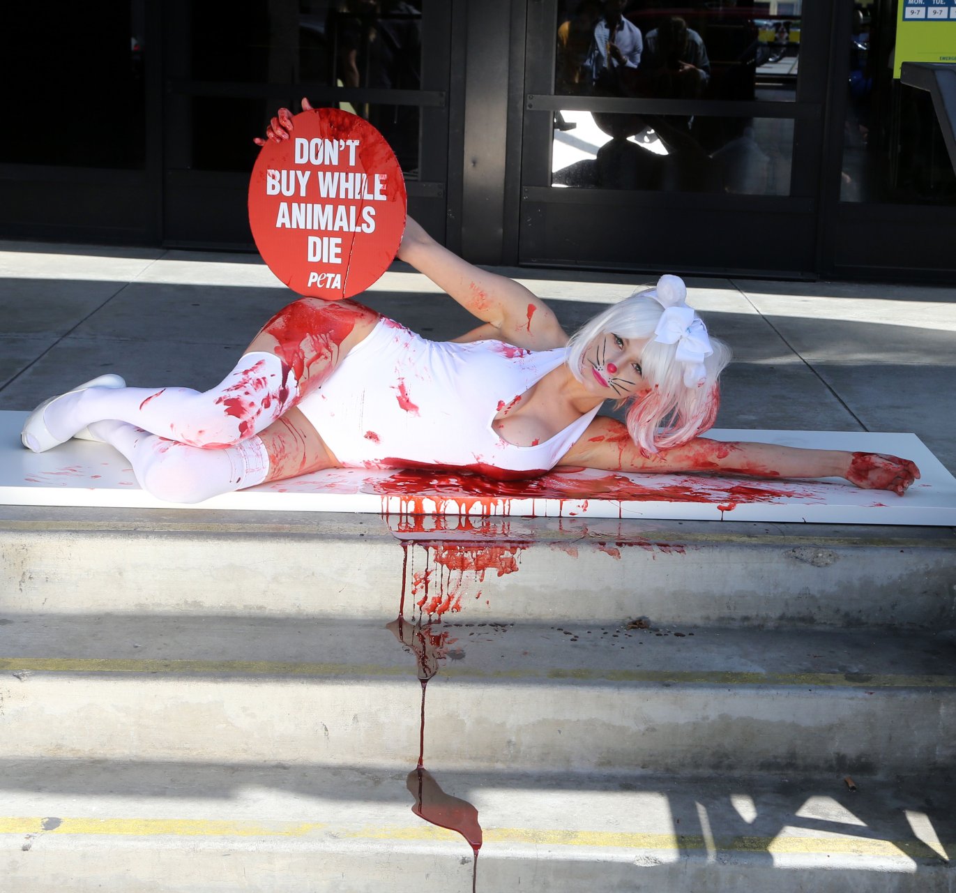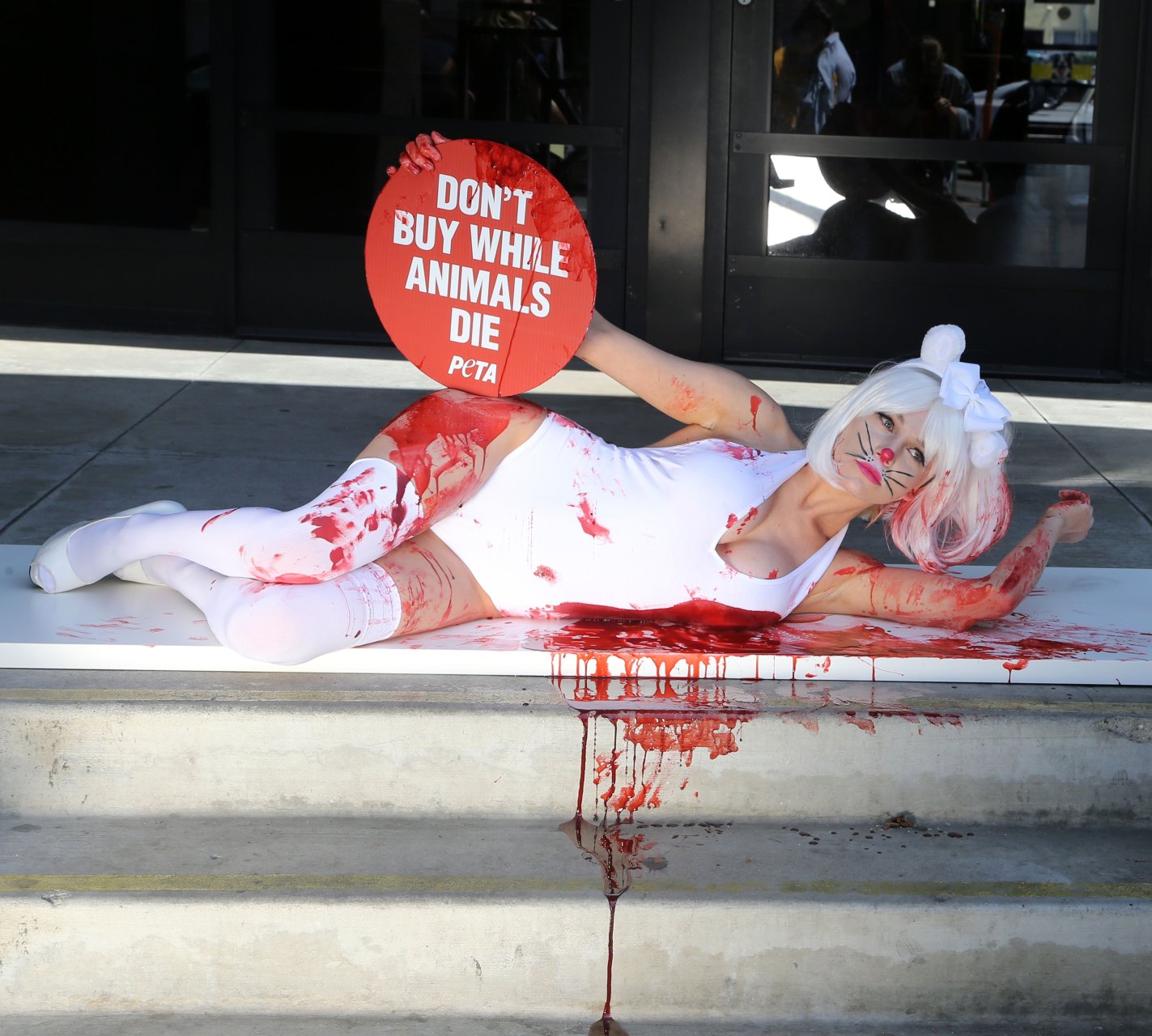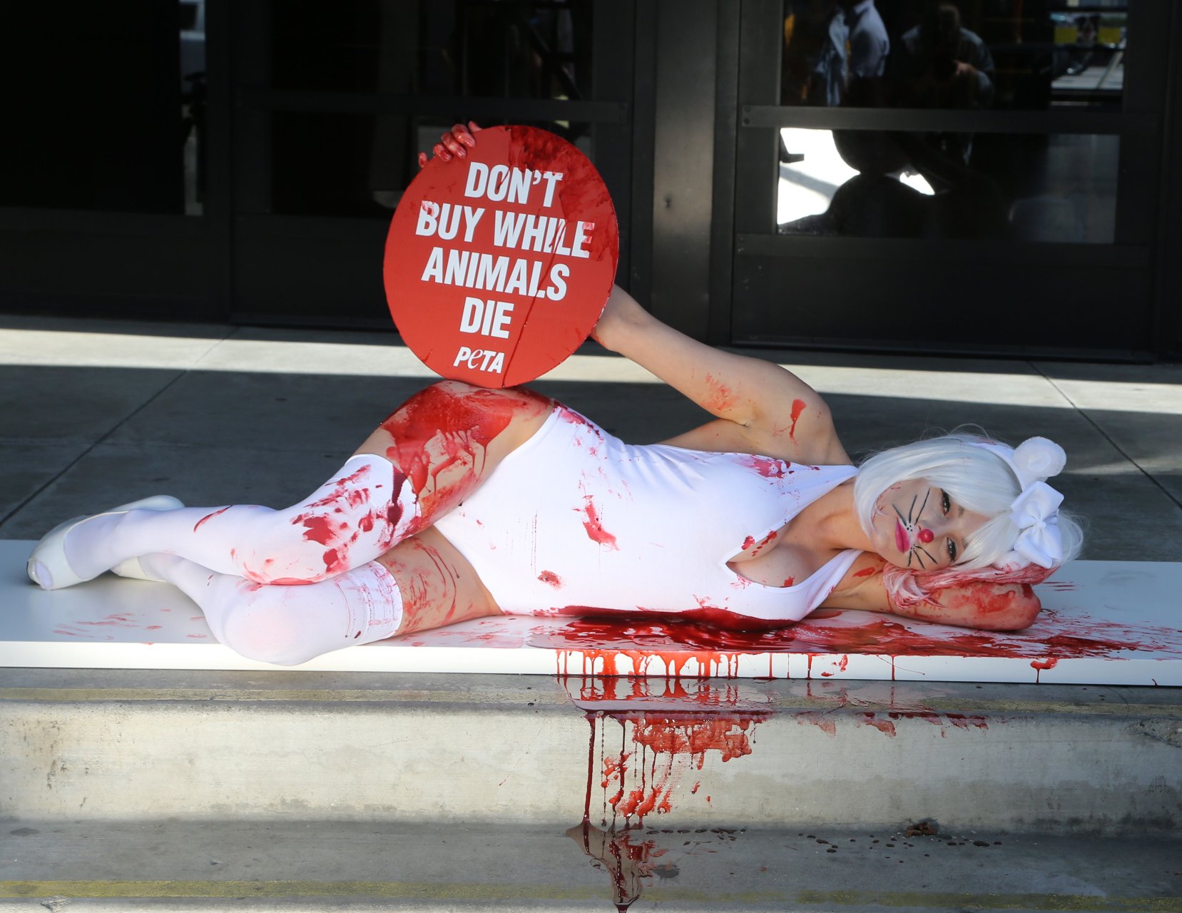 Courtney Stodden protestando frente a ‘Petsmart’ en Los Ángeles, 14/04/2016. Otra campaña sucia de Peta… Courtney Stodden es una concursante estadounidense de reality show. Edad 21 (29 de agosto de 1994). Altura 160 cm.