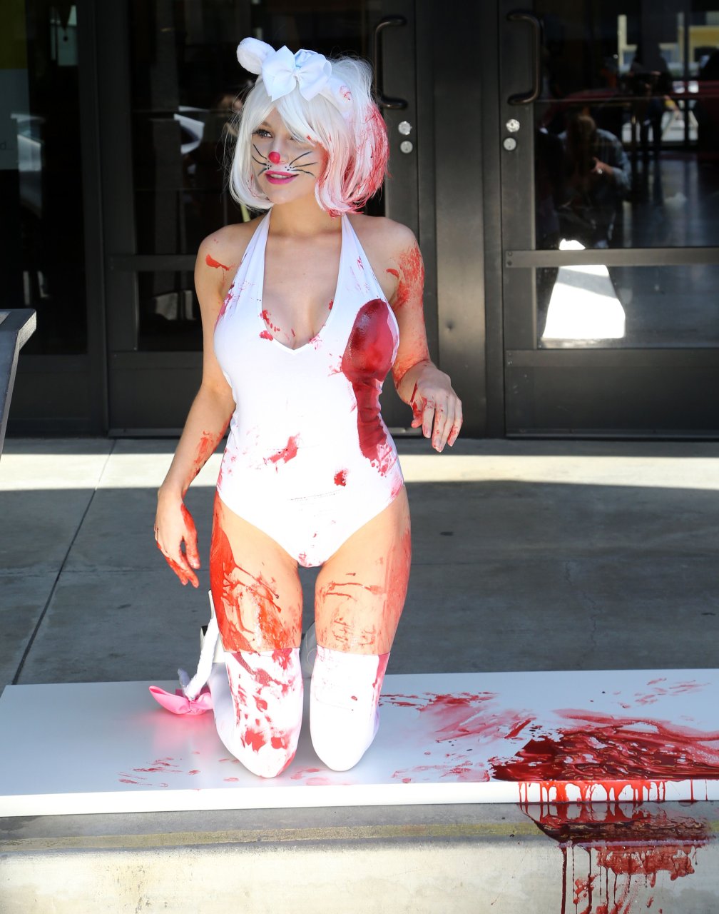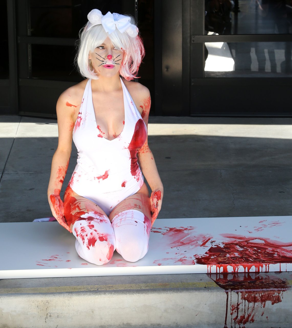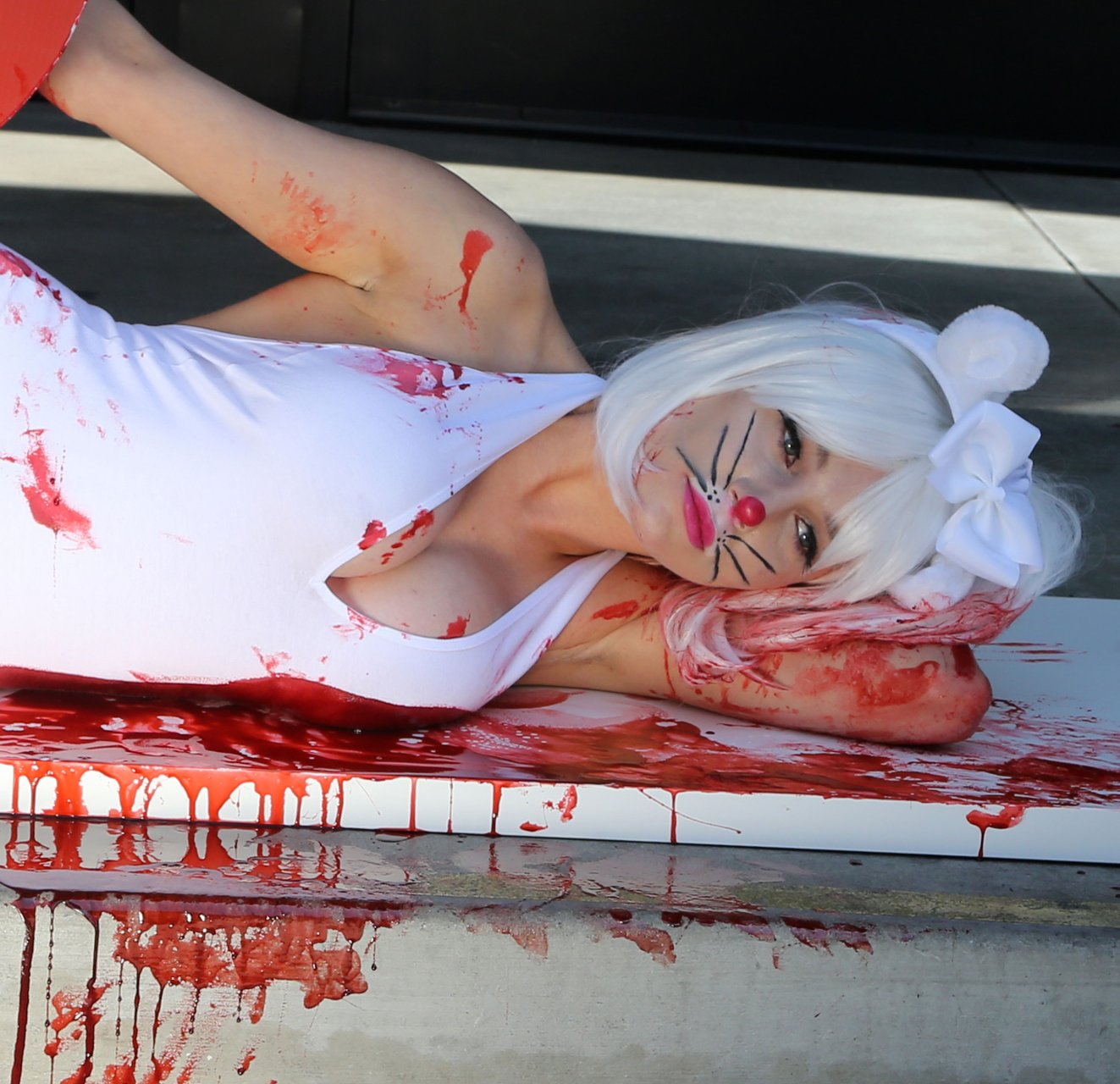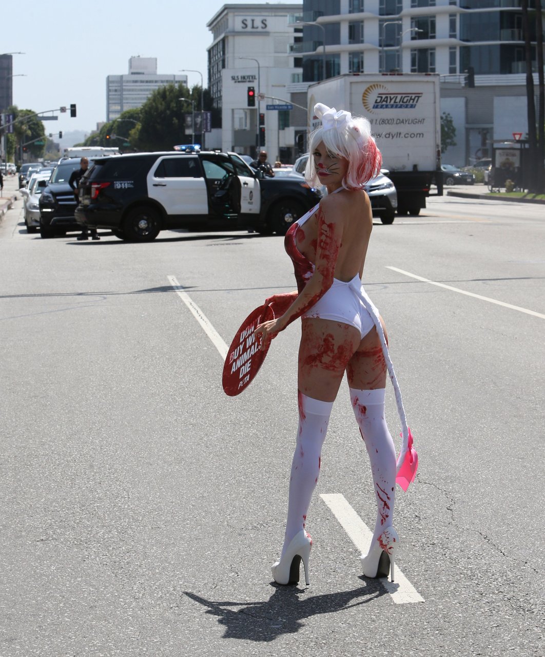 Courtney Stodden protestando frente a ‘Petsmart’ en Los Ángeles, 14/04/2016. Otra campaña sucia de Peta… Courtney Stodden es una concursante estadounidense de reality show. Edad 21 (29 de agosto de 1994). Altura 160 cm.