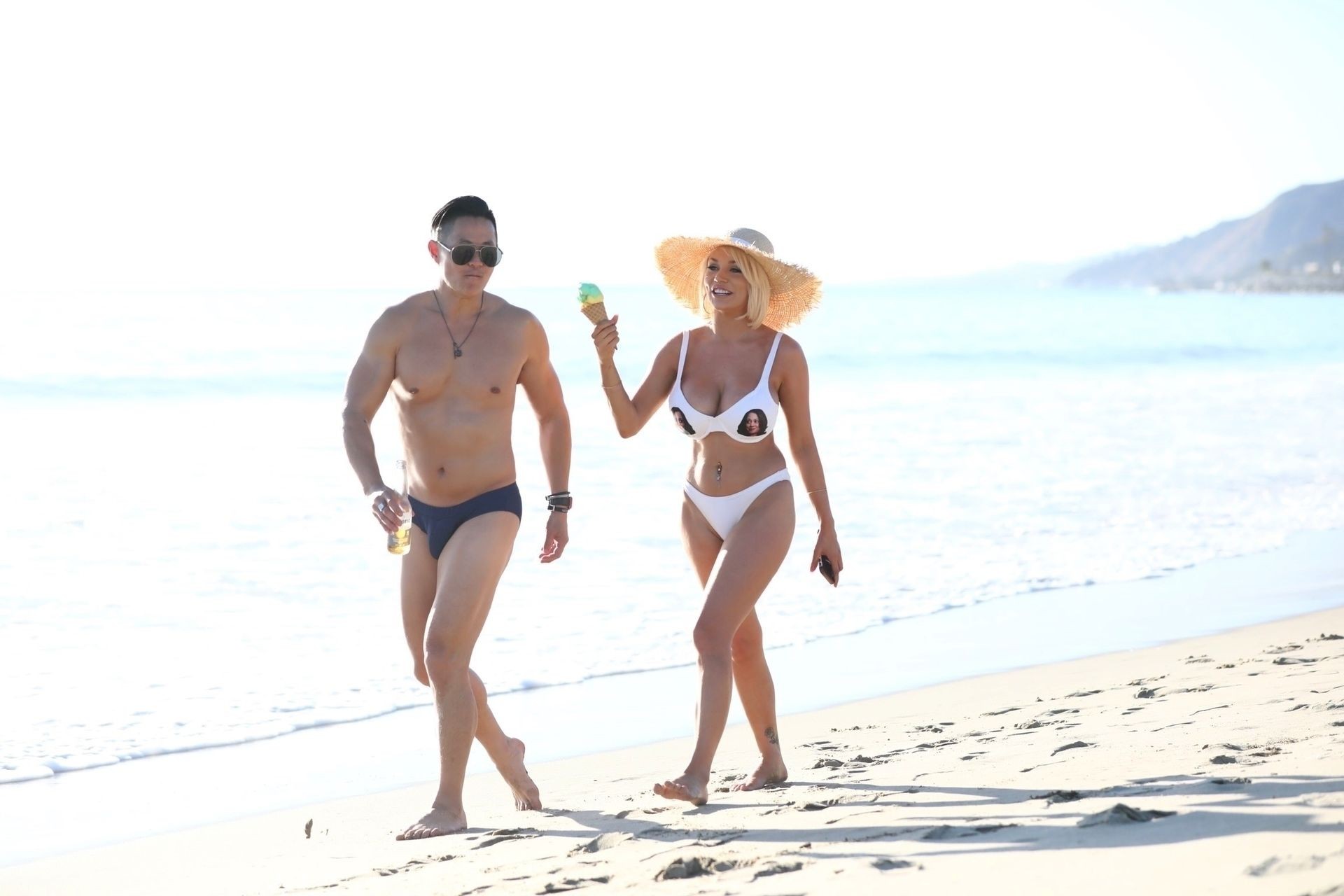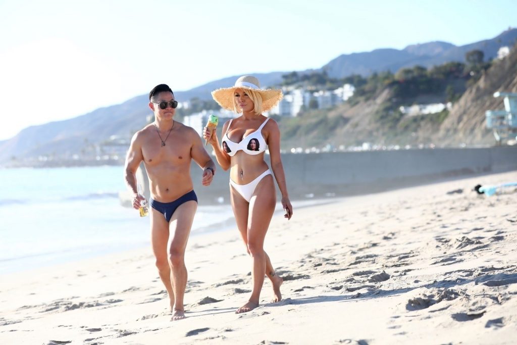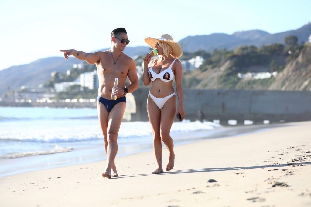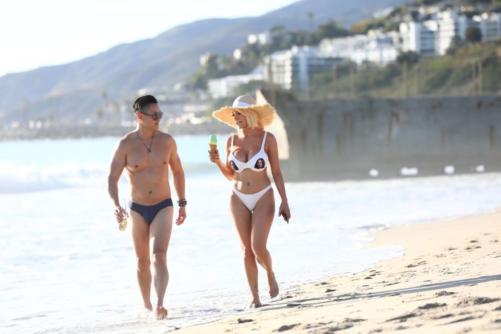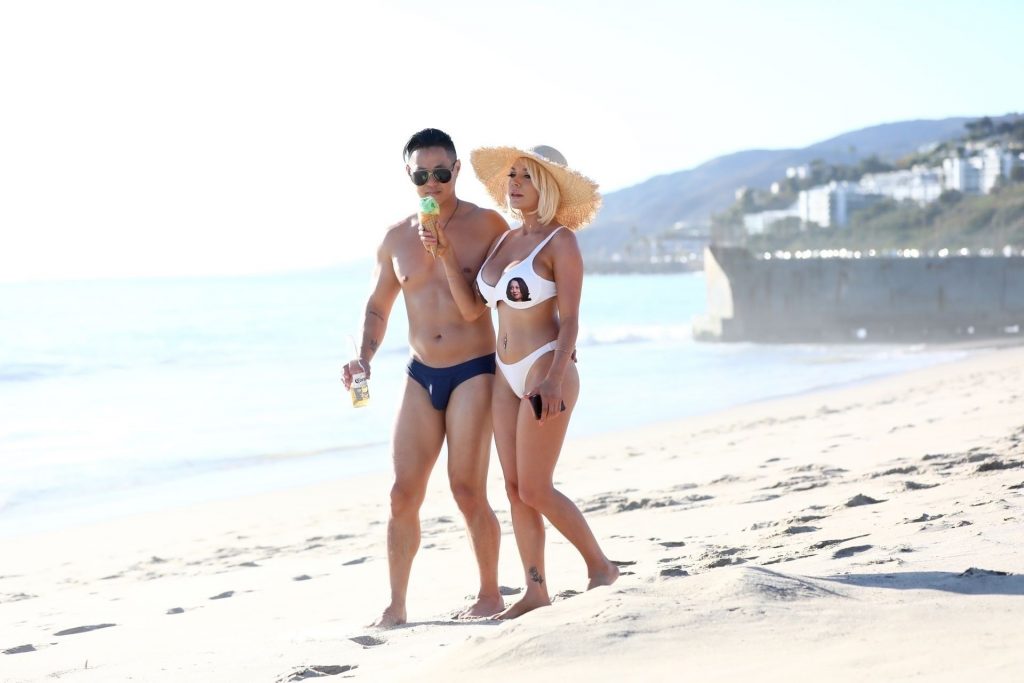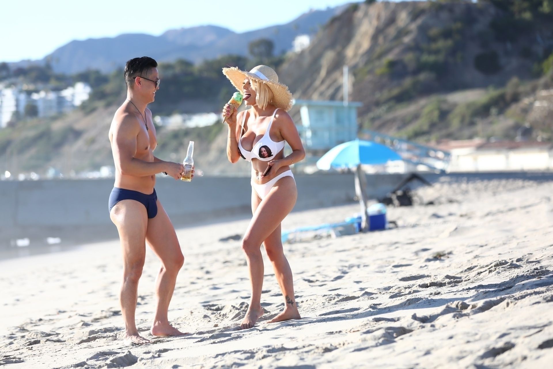 Courtney Stodden y su novio millonario empresario son inseparables mientras disfrutan su tiempo en la playa bebiendo cerveza y comiendo helado en Malibu, 20/01/2021.