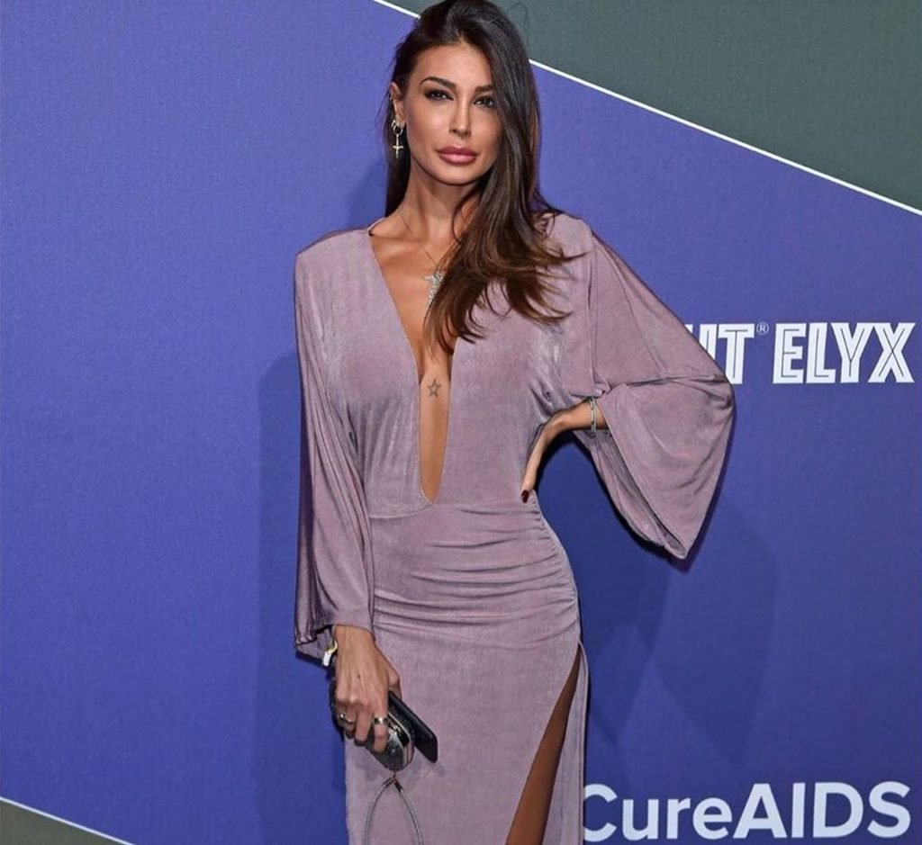 La voluptuosa modelo italiana Cristina Buccino muestra su escote en la Gala amfAR Milano 2019 en el Palazzo Mezzanotte en Milán, Italia, 22/09/2019.