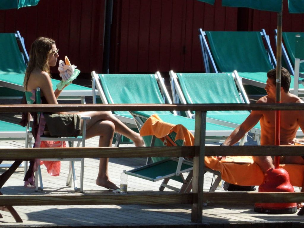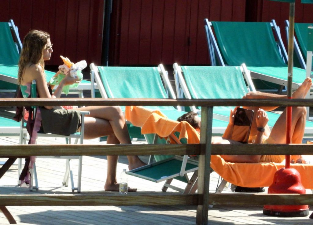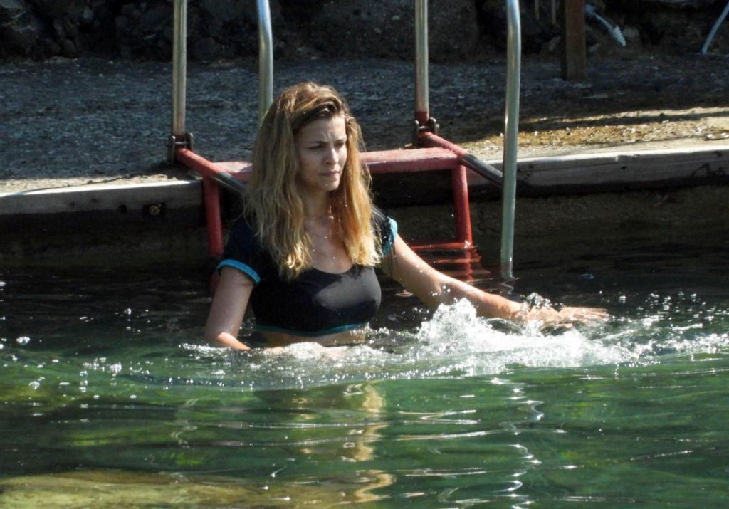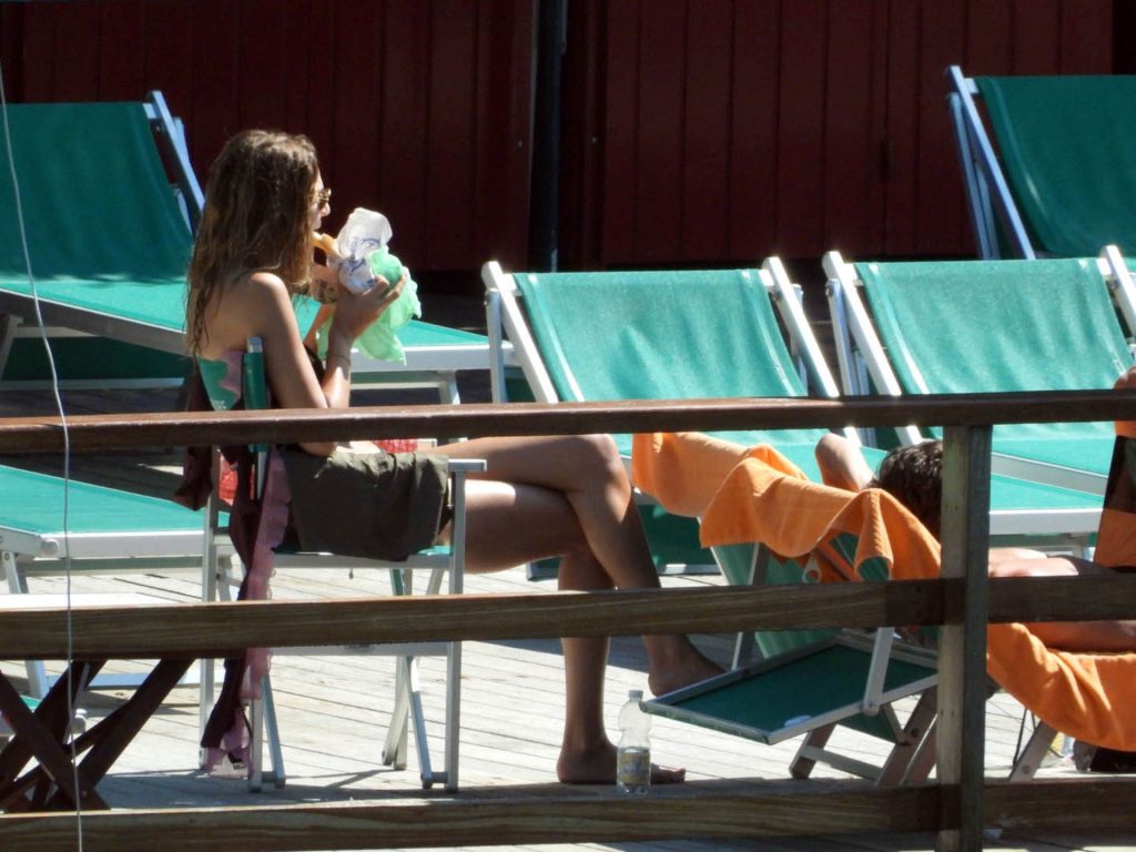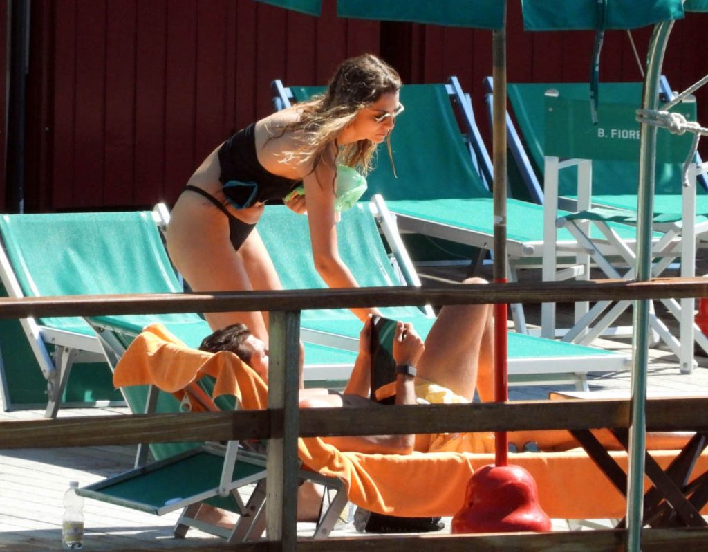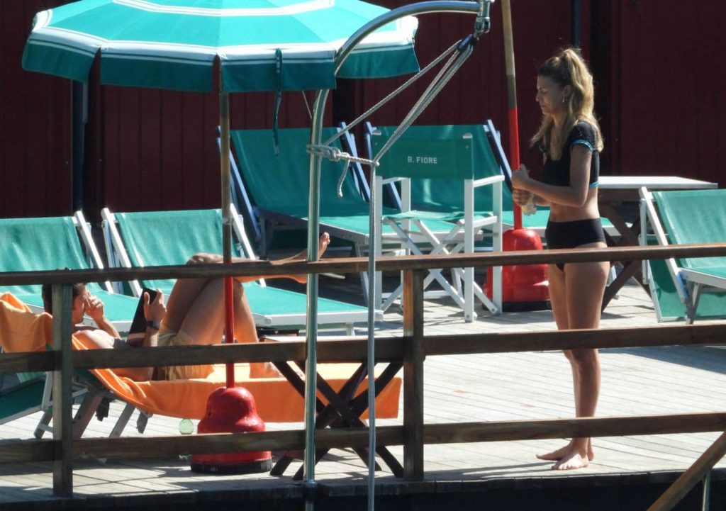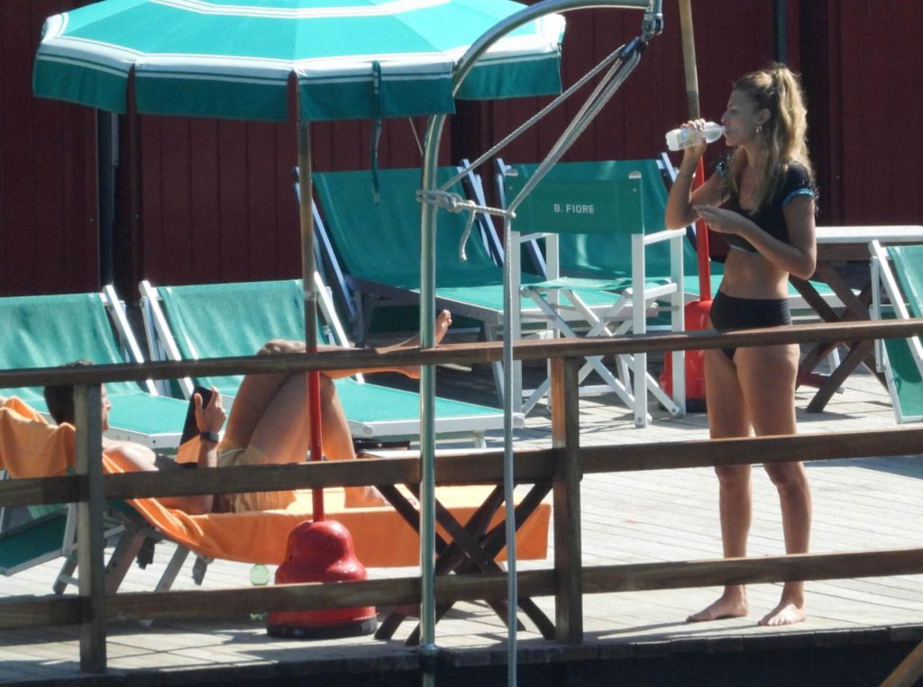 La sexy presentadora de televisión italiana Cristina Chiabotto fue vista tomando un baño en el mar temprano en la mañana, luego desayunando con una pizza – Portofino, 23/06/2020.