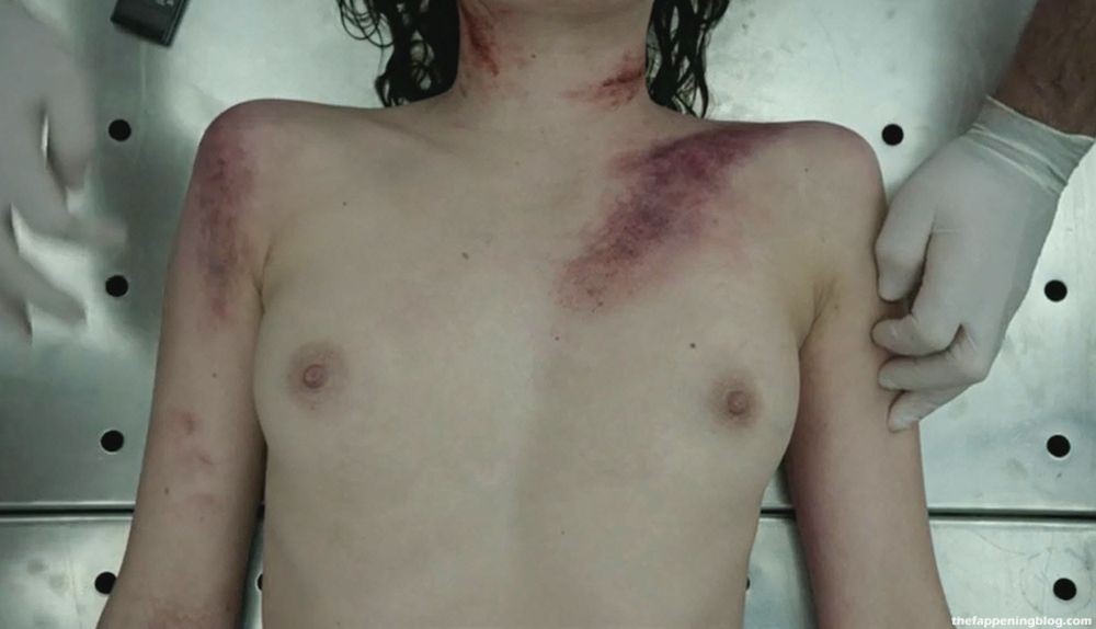 There is Daisy Ridley’s topless scene lying on her back in a morgue! As a result, we have her naked small tits in close view while a couple of medical examiners are looking her over and focus on some marks on the neck!
