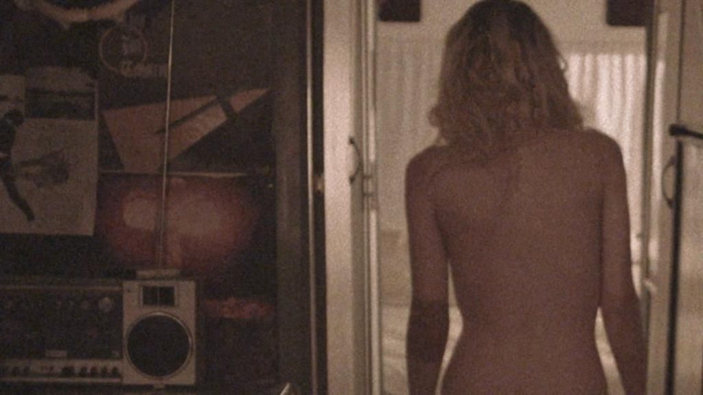Dakota Fanning naked in RV, a guy is pulling a cover down off her arms, so we see her ass. Then we see her topless; we see her boobs as well. She starts having sex standing up in the bedroom.