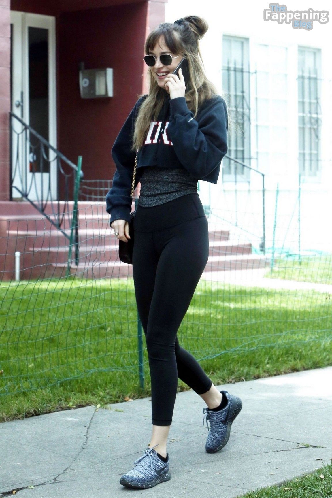 ¿Viste a Dakota Johnson caminando por Beverly Hills con esos leggings ajustados? Sus fervientes admiradores definitivamente quedaron encantados, porque se podía ver el sexy trasero de la estrella de The Fappening e incluso un cameltoe en esos pantalones ceñidos.