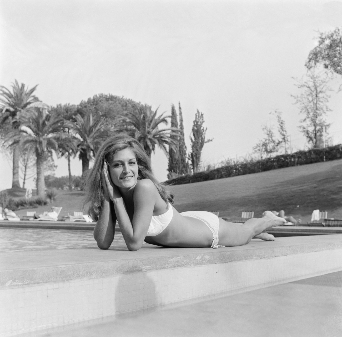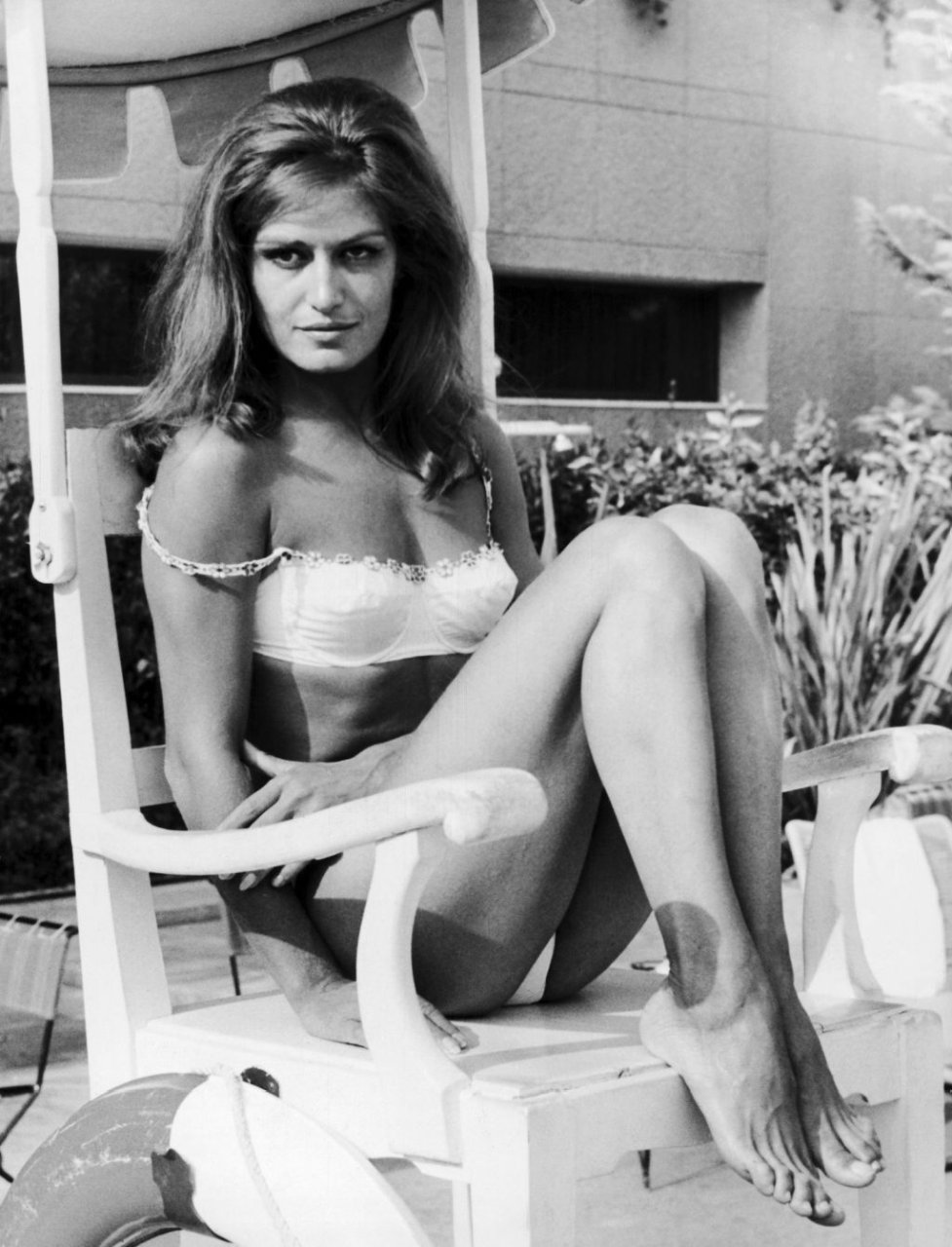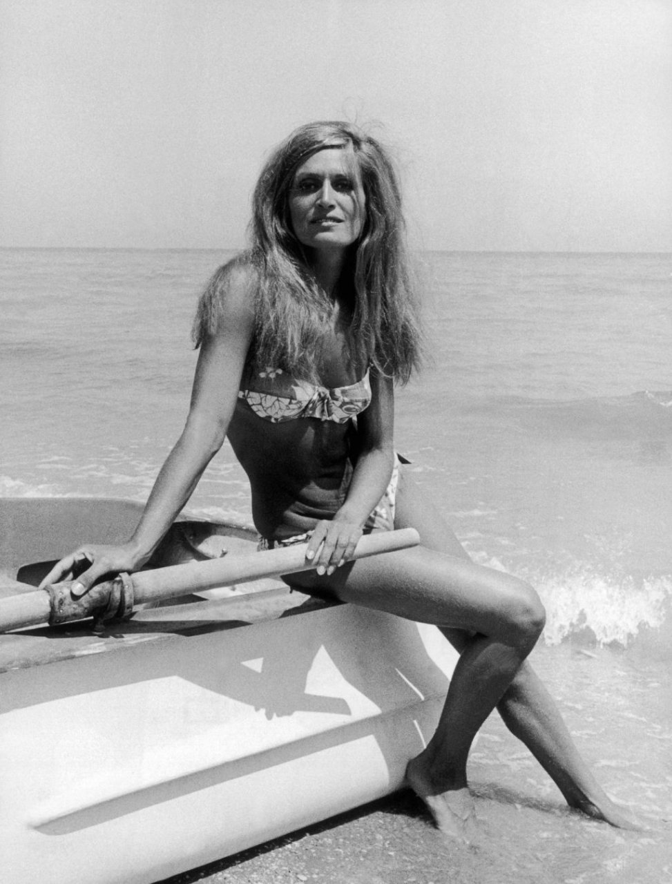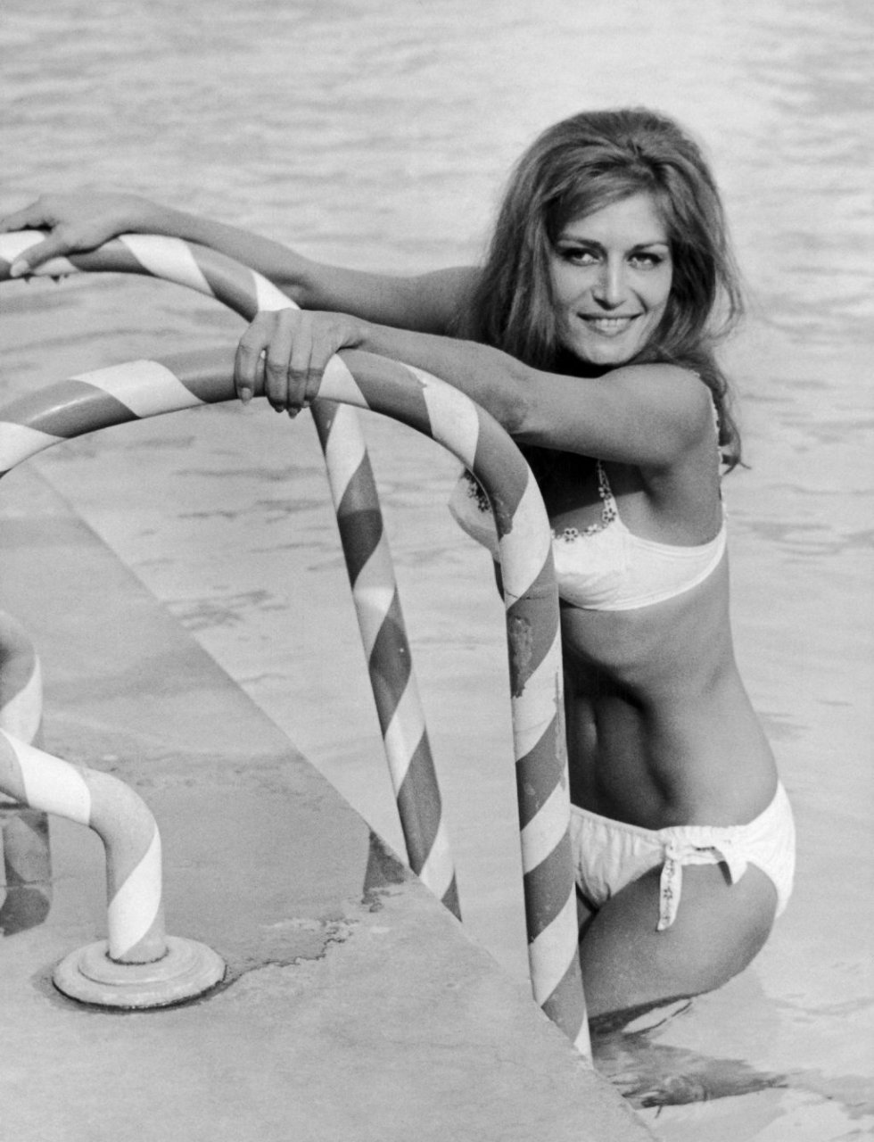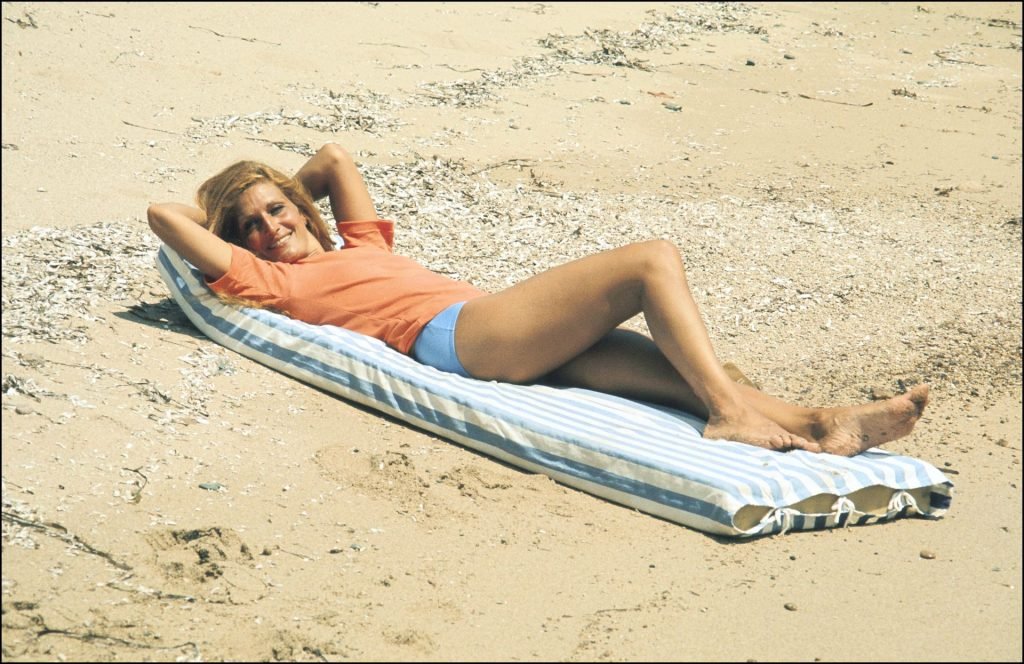 Dalida fue fotografiada mientras tomaba el sol en la playa de Roma durante su día libre entre dos paradas de su gira italiana.