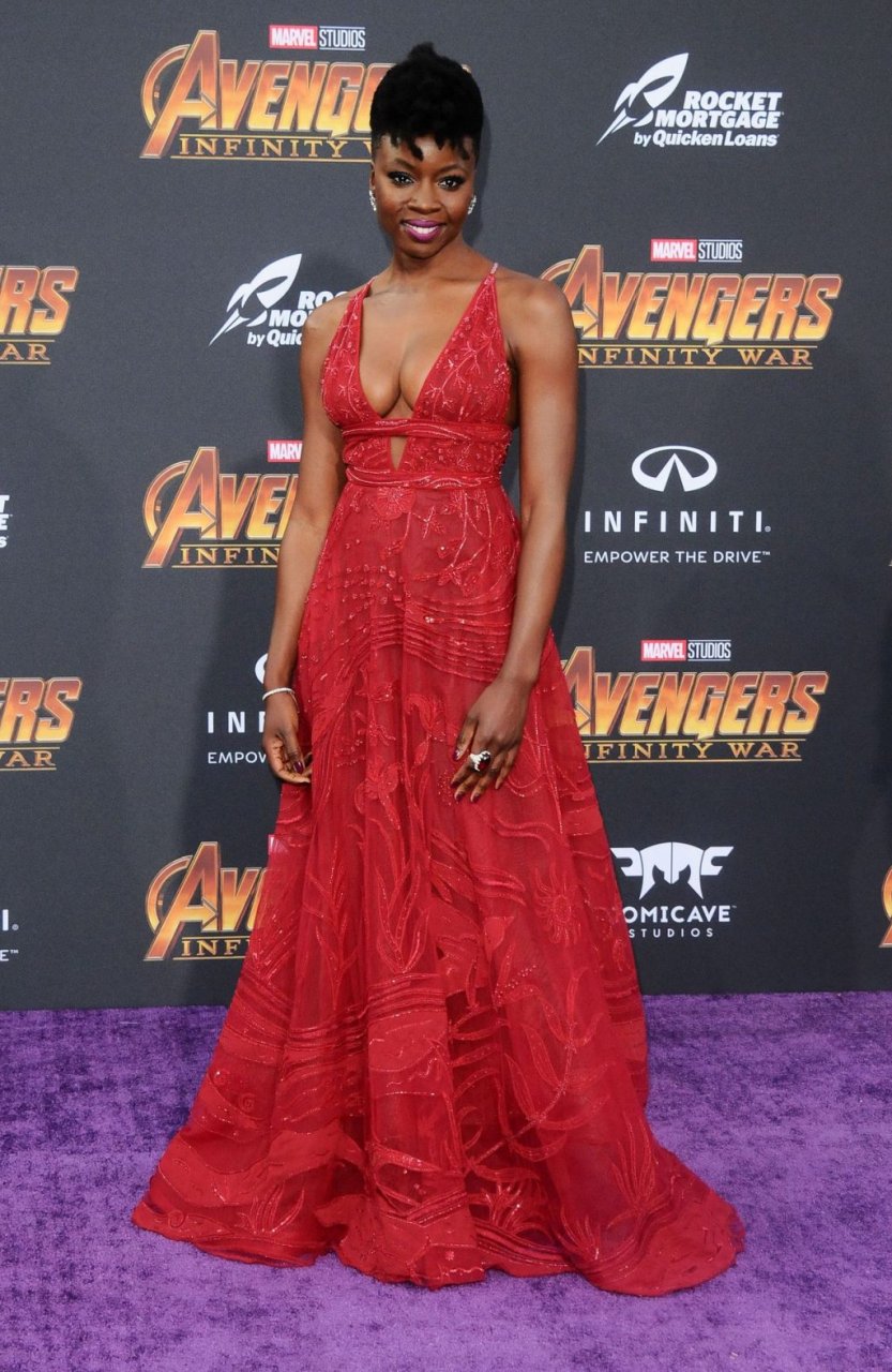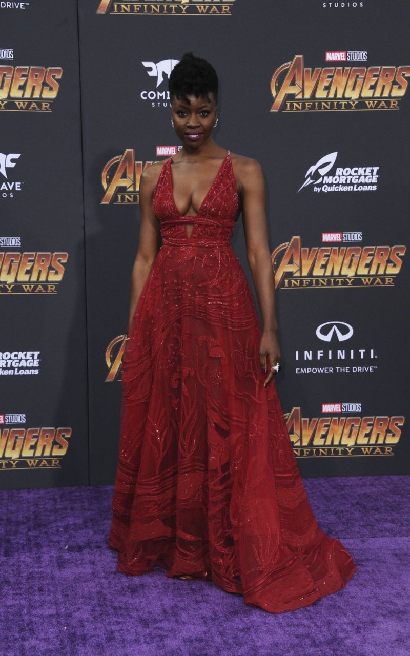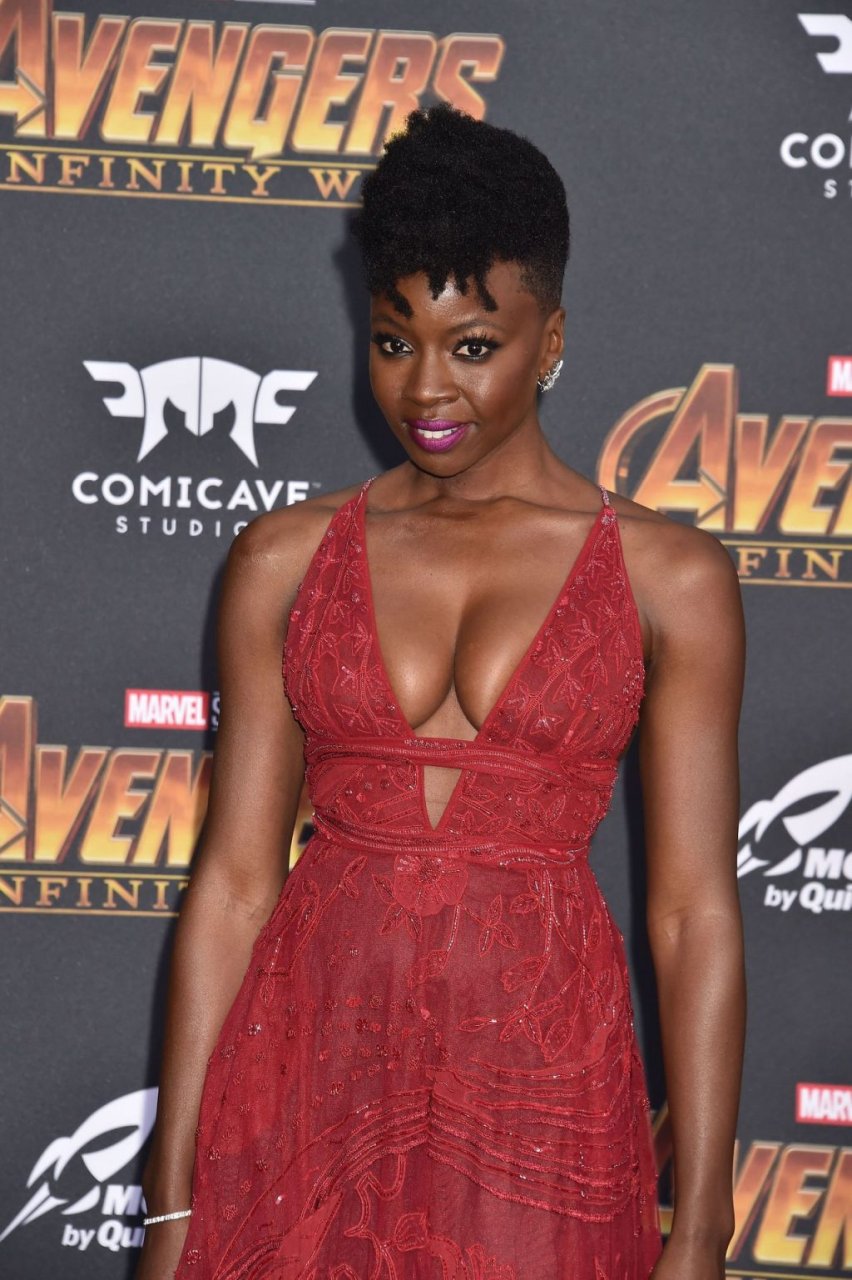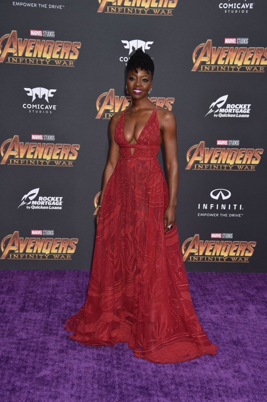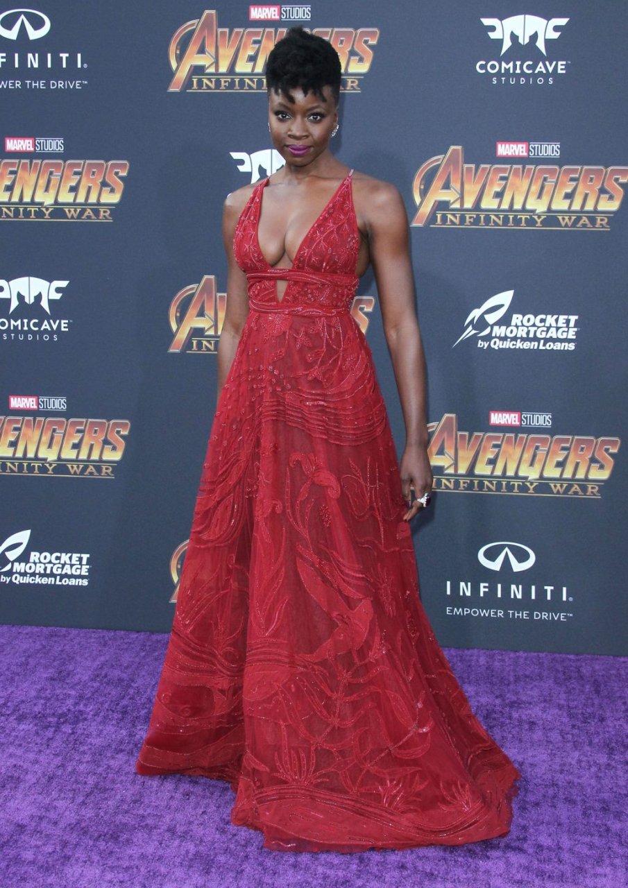 “Walking Dead” estrella, la actriz Danai Gurira (40) mostró su escote en el estreno mundial de “Avengers: Infinity War” de Disney y Marvel, celebrado en el El Capitan Theater, Dolby Theatre y TCL Chinese Theater IMAX en Hollywood, 23/04/2018.