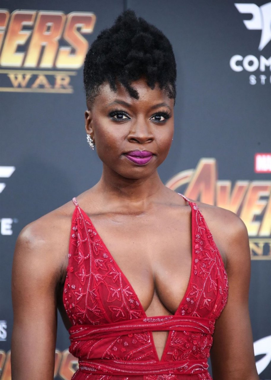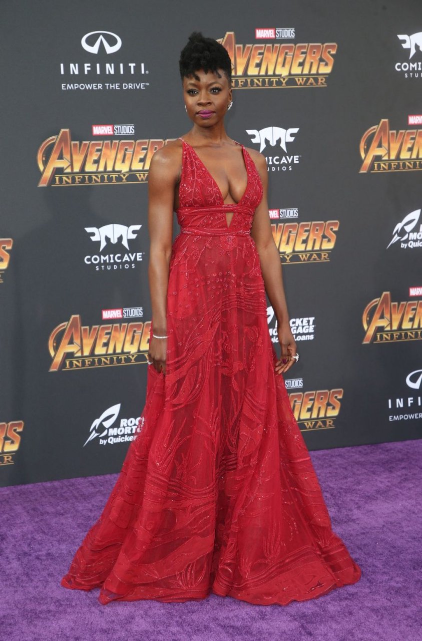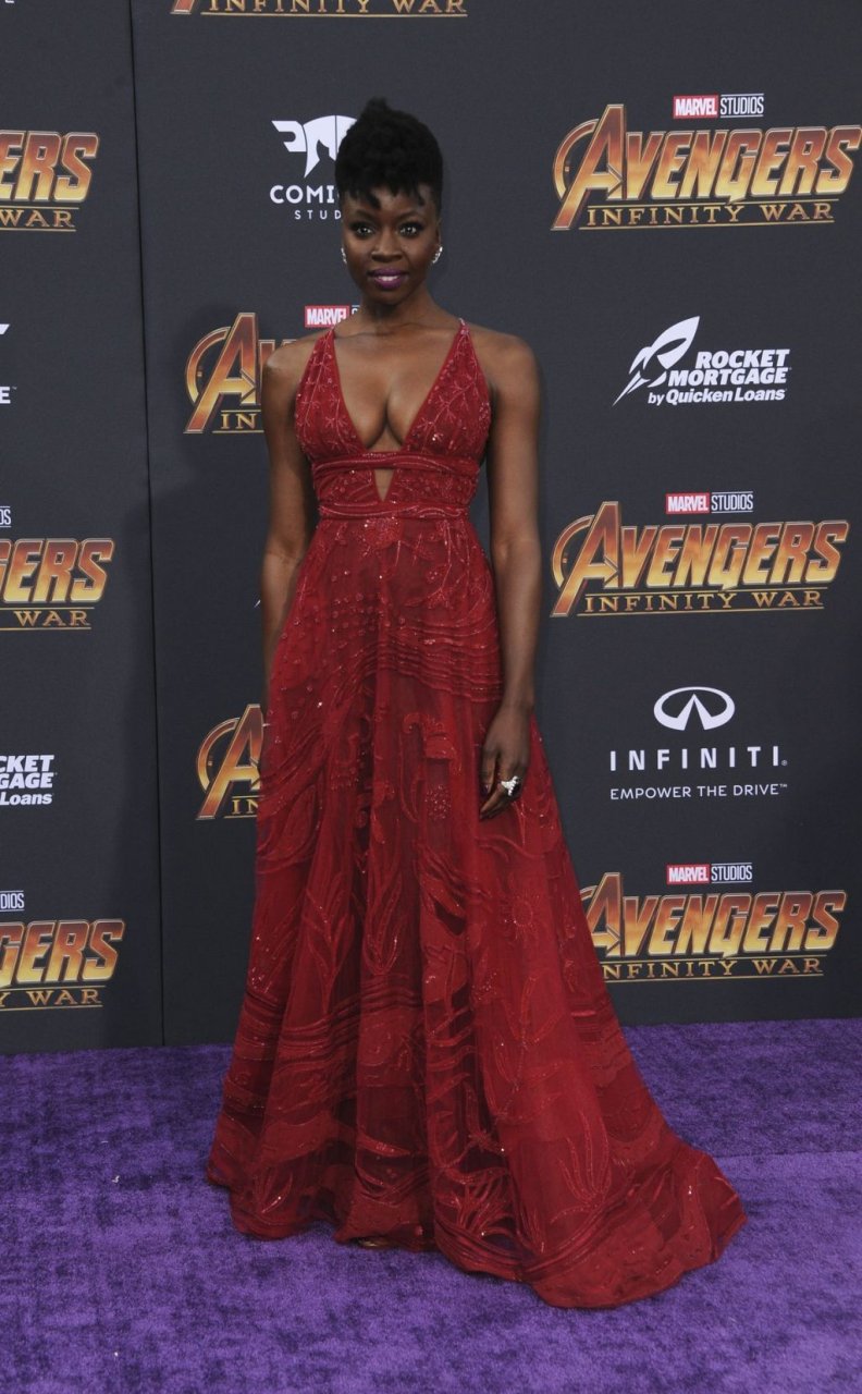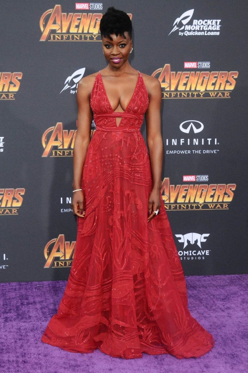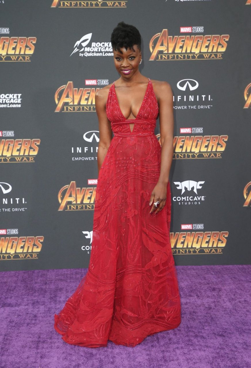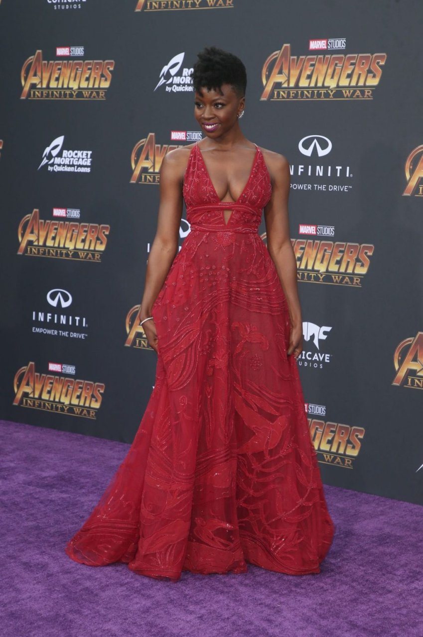 “Walking Dead” estrella, la actriz Danai Gurira (40) mostró su escote en el estreno mundial de “Avengers: Infinity War” de Disney y Marvel, celebrado en el El Capitan Theater, Dolby Theatre y TCL Chinese Theater IMAX en Hollywood, 23/04/2018.