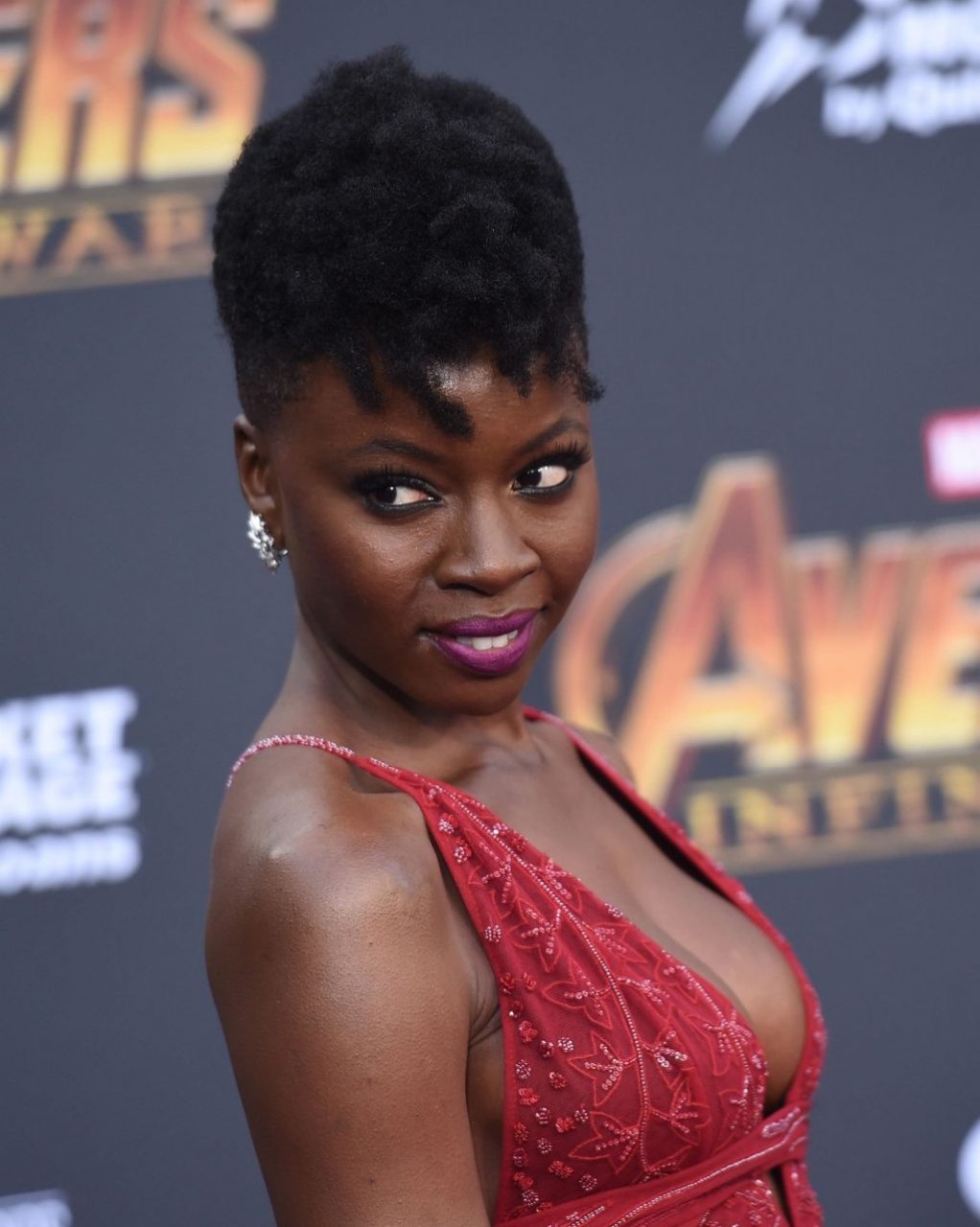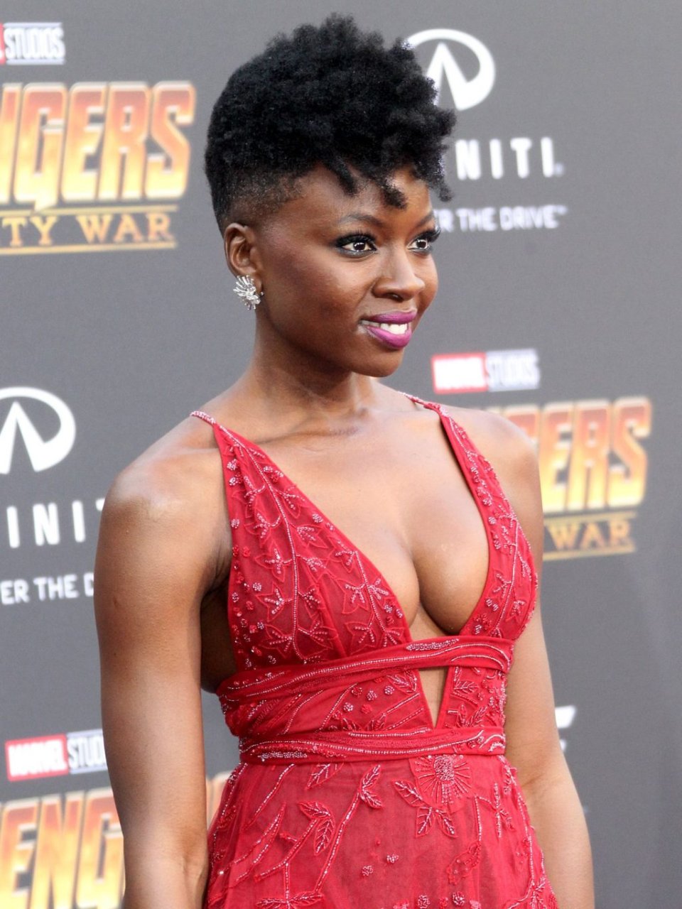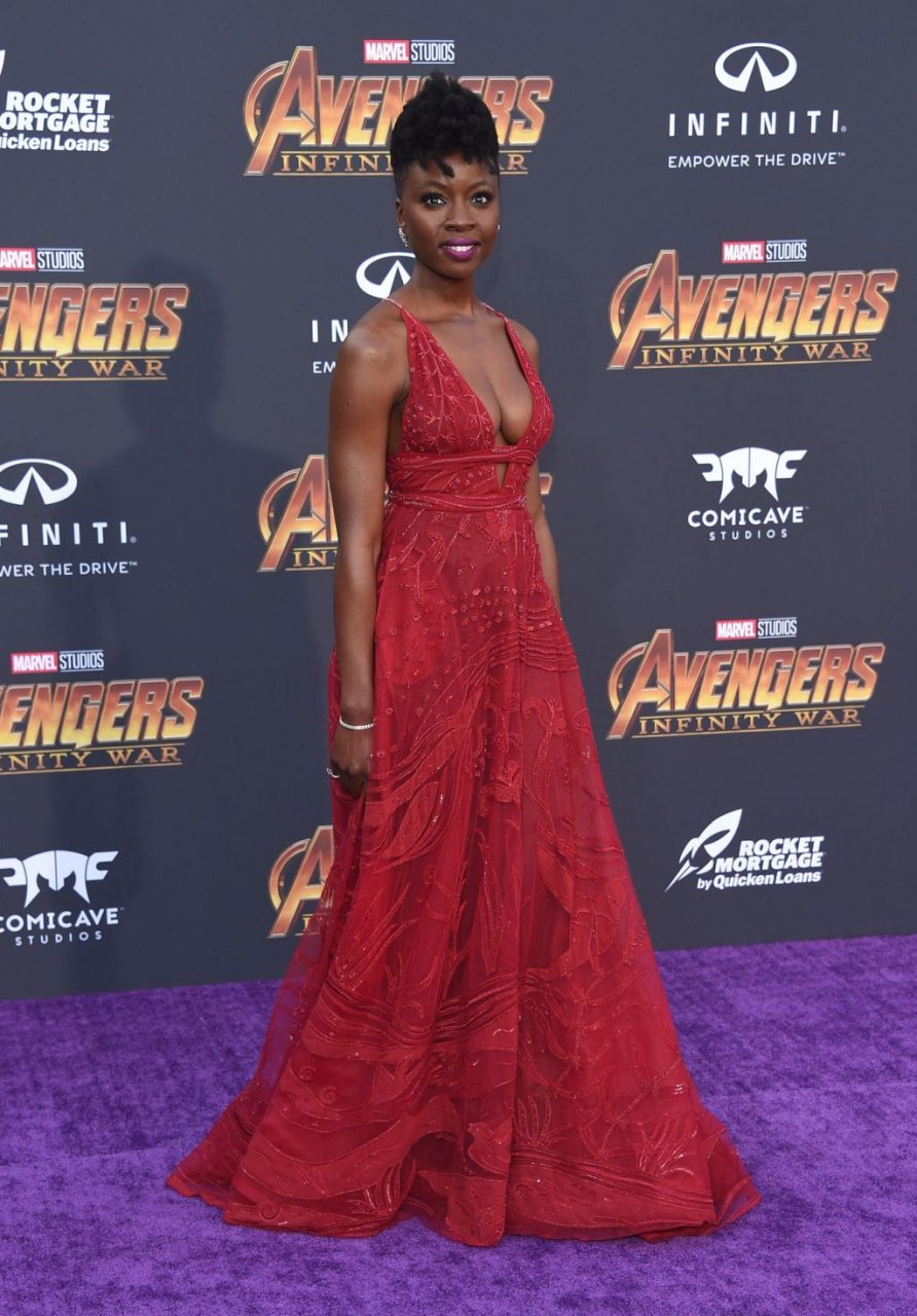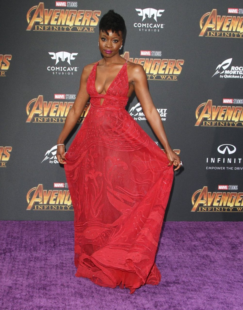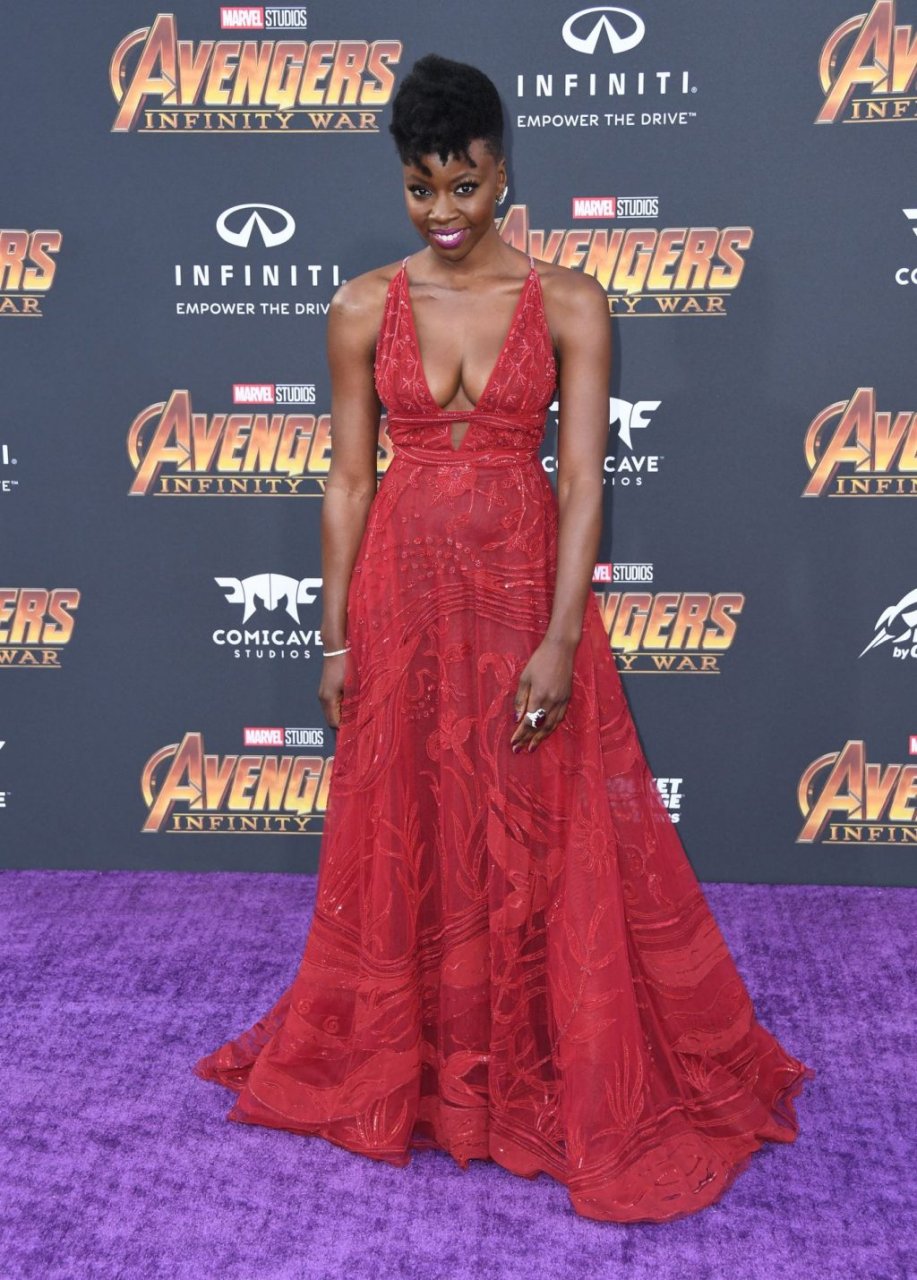 “Walking Dead” estrella, la actriz Danai Gurira (40) mostró su escote en el estreno mundial de “Avengers: Infinity War” de Disney y Marvel, celebrado en el El Capitan Theater, Dolby Theatre y TCL Chinese Theater IMAX en Hollywood, 23/04/2018.