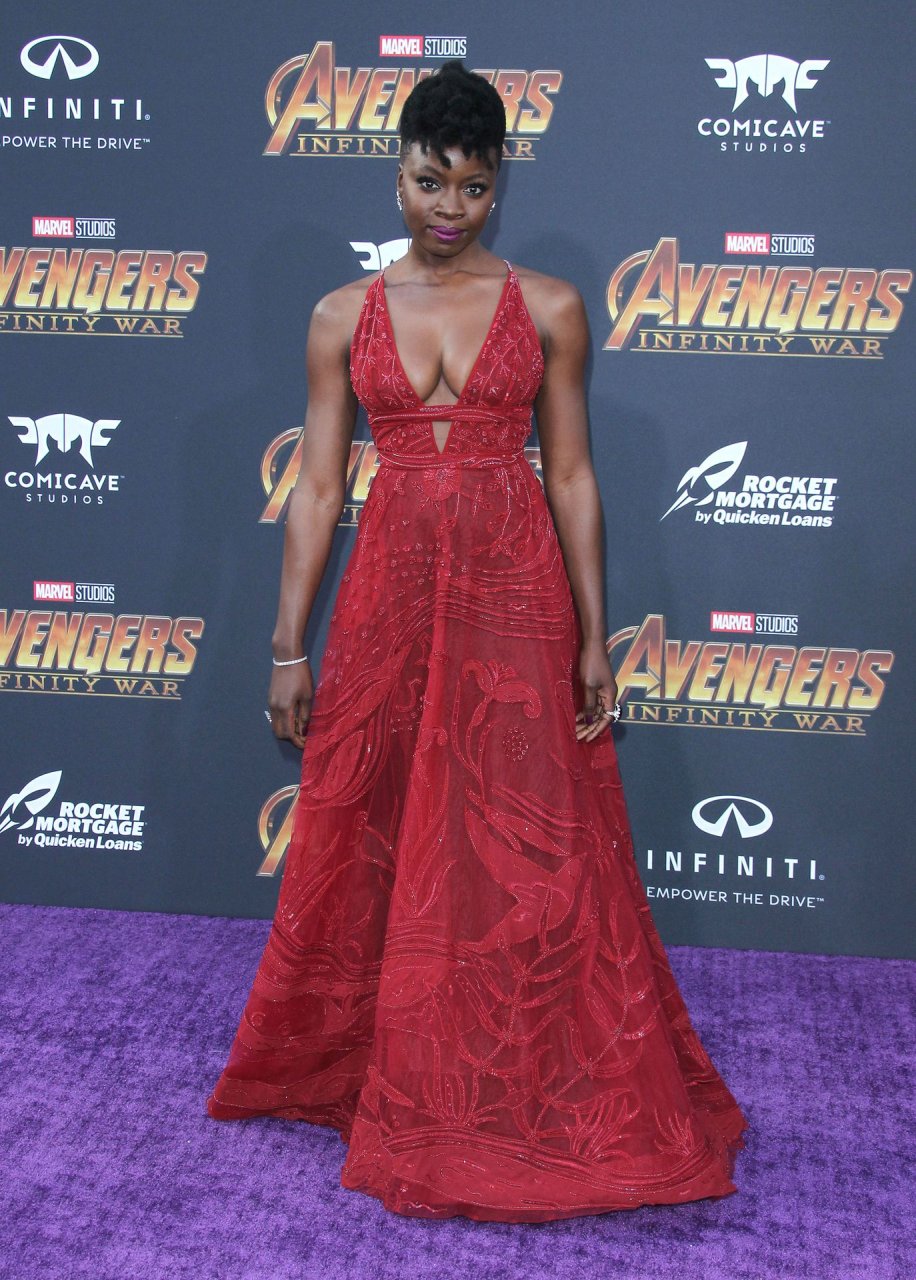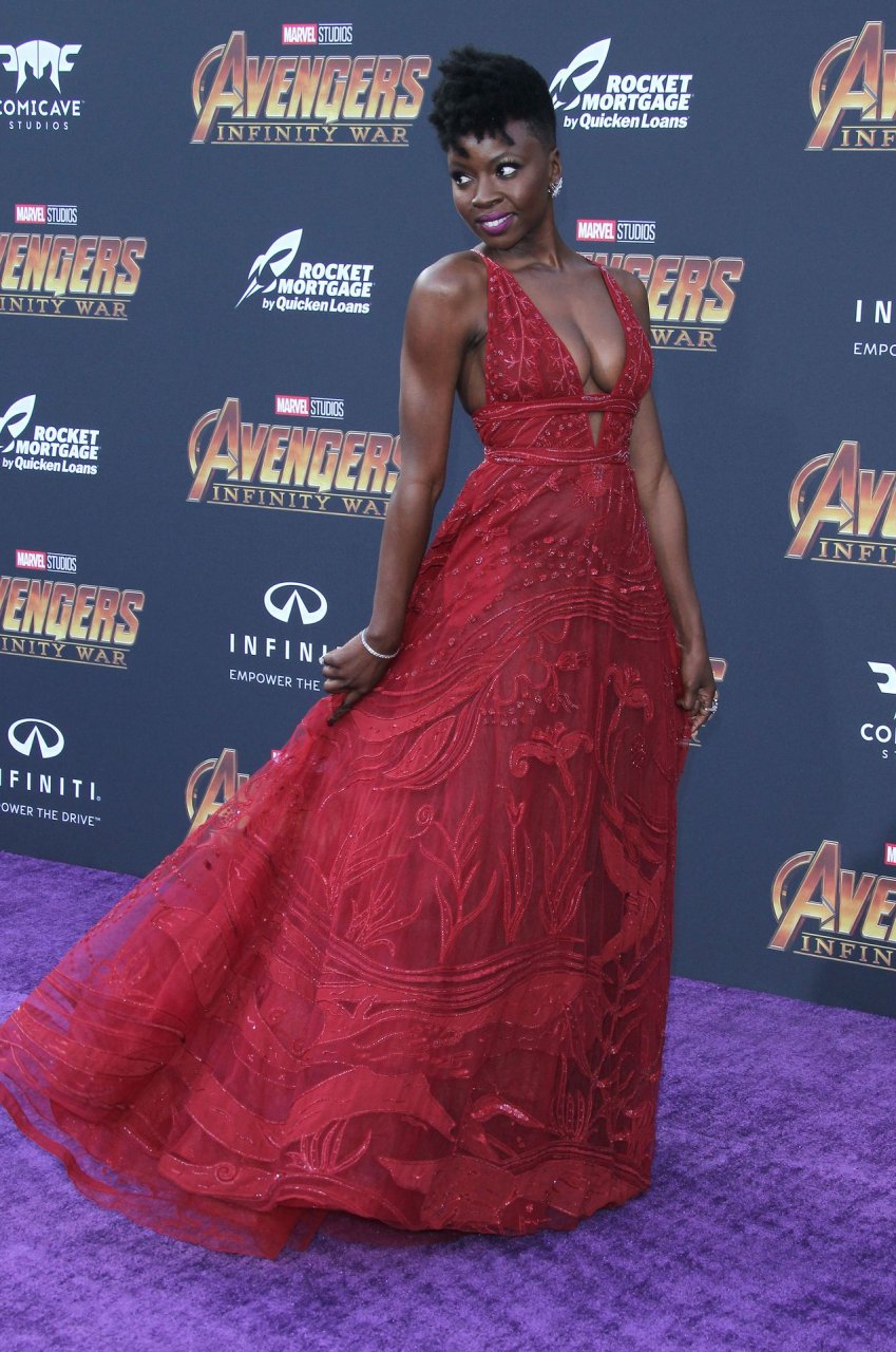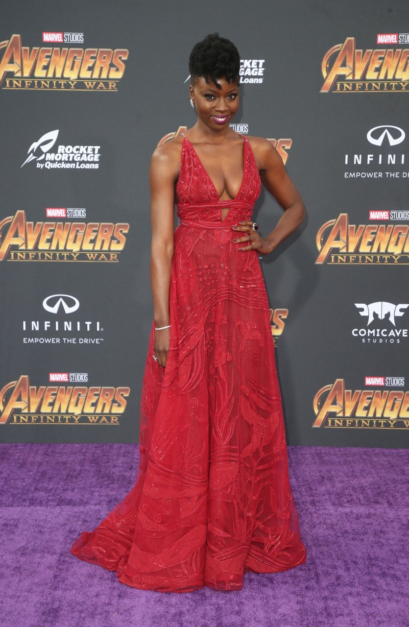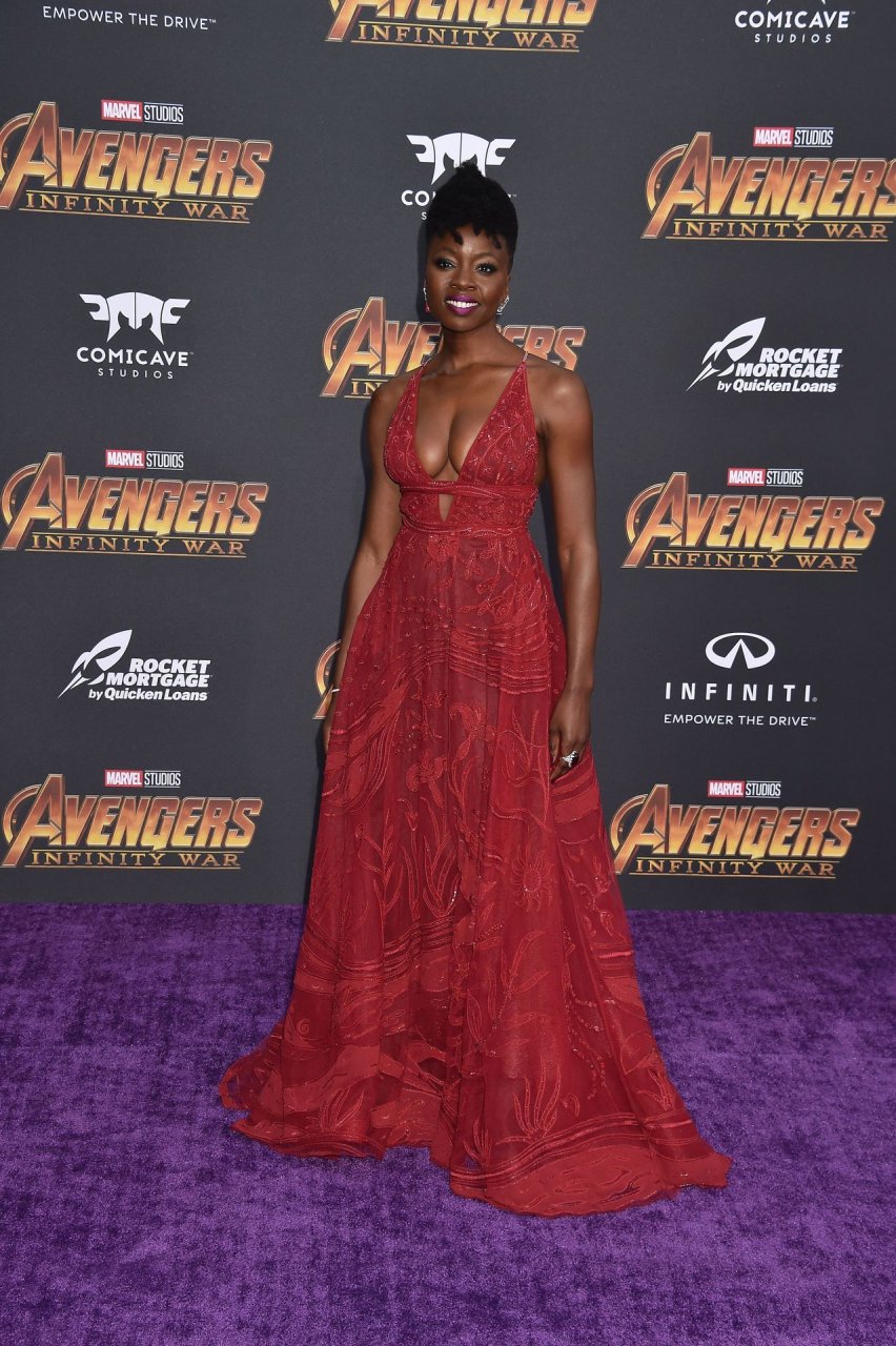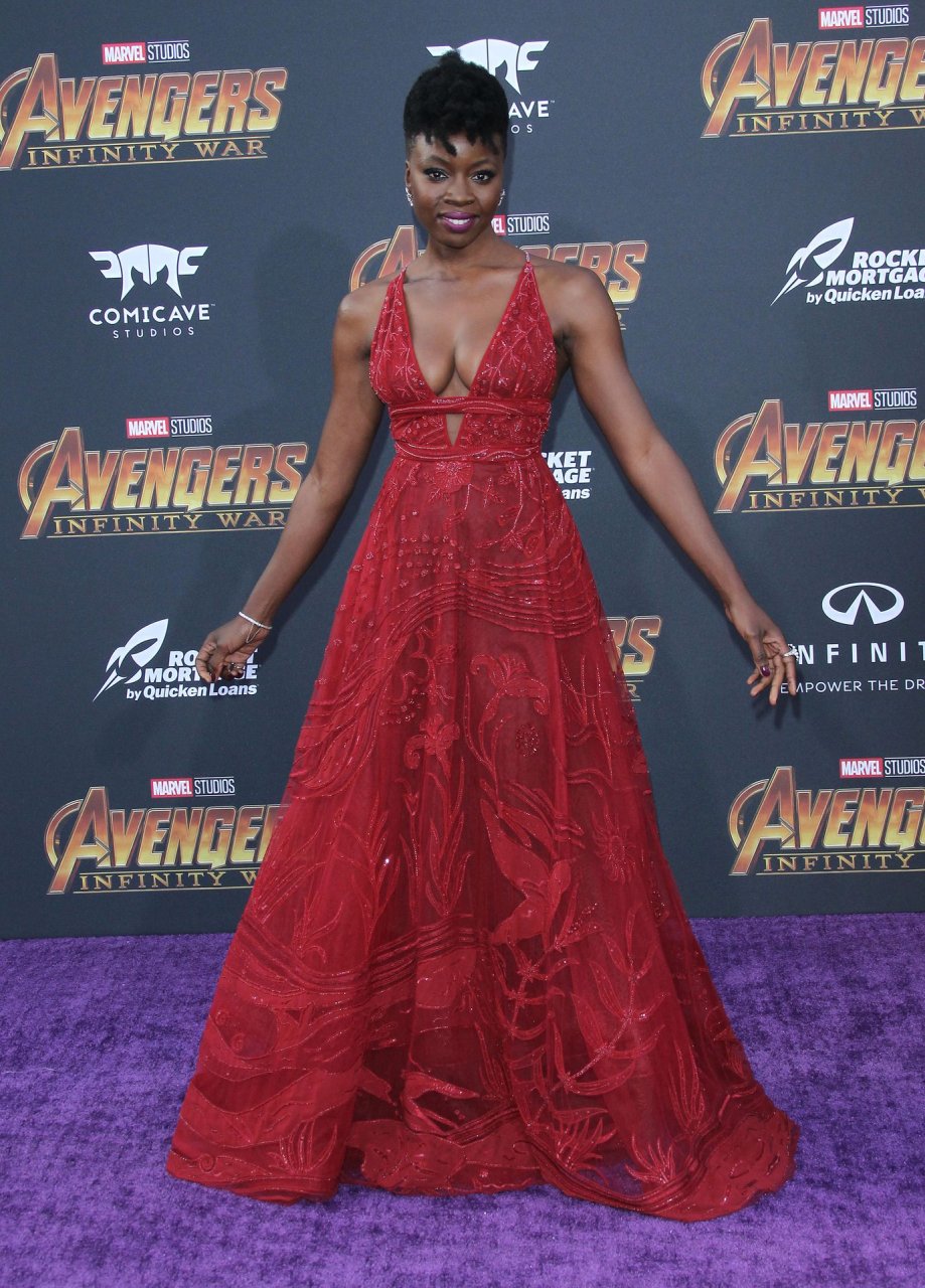 “Walking Dead” estrella, la actriz Danai Gurira (40) mostró su escote en el estreno mundial de “Avengers: Infinity War” de Disney y Marvel, celebrado en el El Capitan Theater, Dolby Theatre y TCL Chinese Theater IMAX en Hollywood, 23/04/2018.