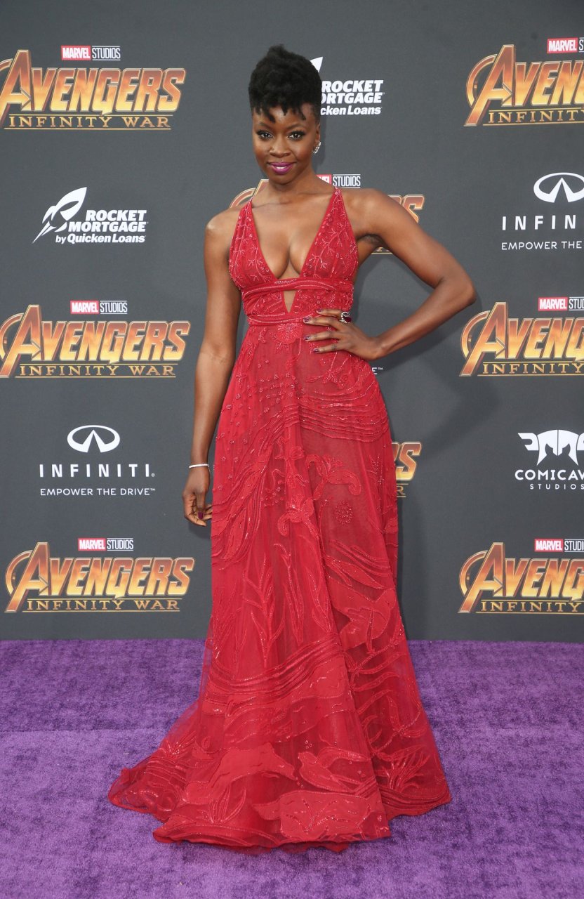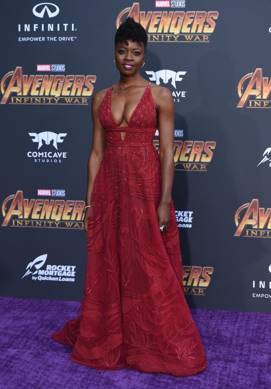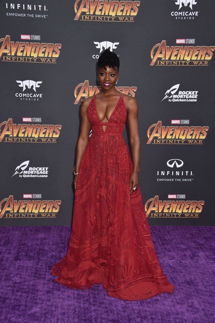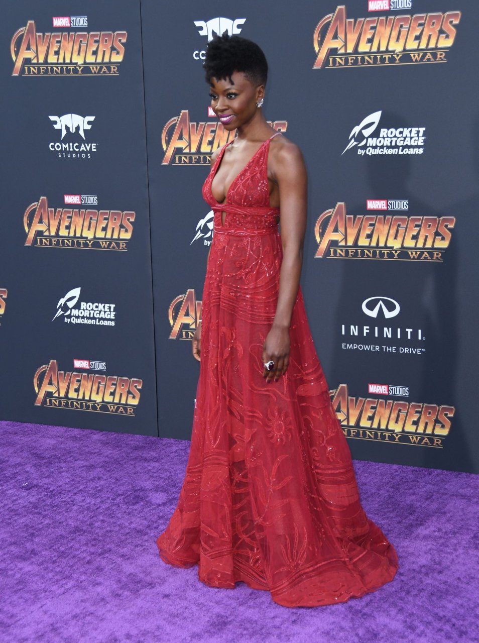 “Walking Dead” estrella, la actriz Danai Gurira (40) mostró su escote en el estreno mundial de “Avengers: Infinity War” de Disney y Marvel, celebrado en el El Capitan Theater, Dolby Theatre y TCL Chinese Theater IMAX en Hollywood, 23/04/2018.