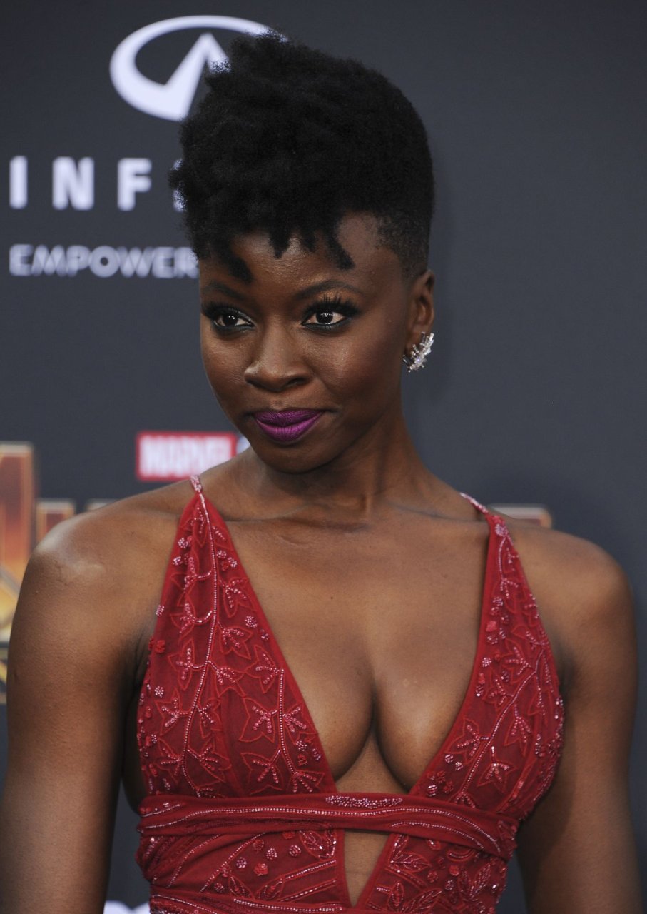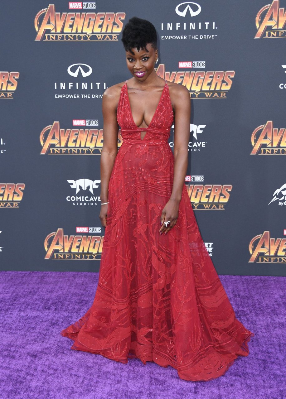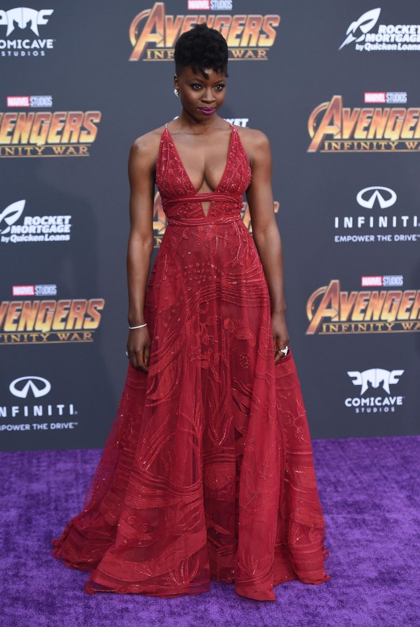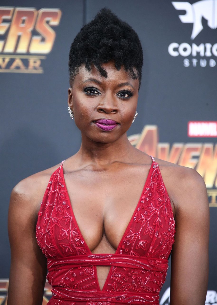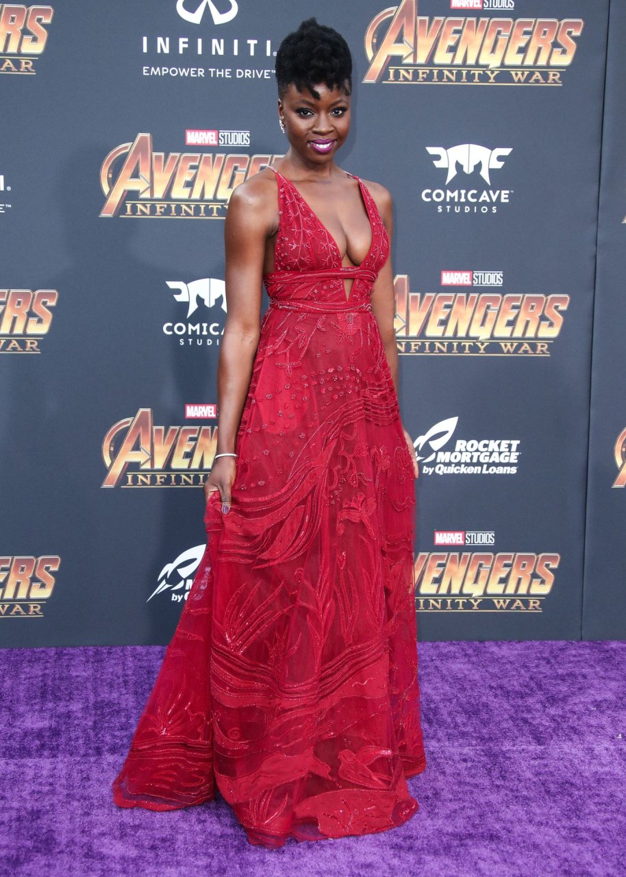 “Walking Dead” estrella, la actriz Danai Gurira (40) mostró su escote en el estreno mundial de “Avengers: Infinity War” de Disney y Marvel, celebrado en el El Capitan Theater, Dolby Theatre y TCL Chinese Theater IMAX en Hollywood, 23/04/2018.