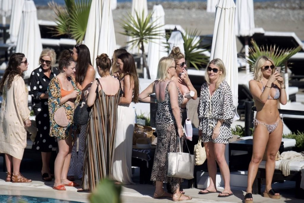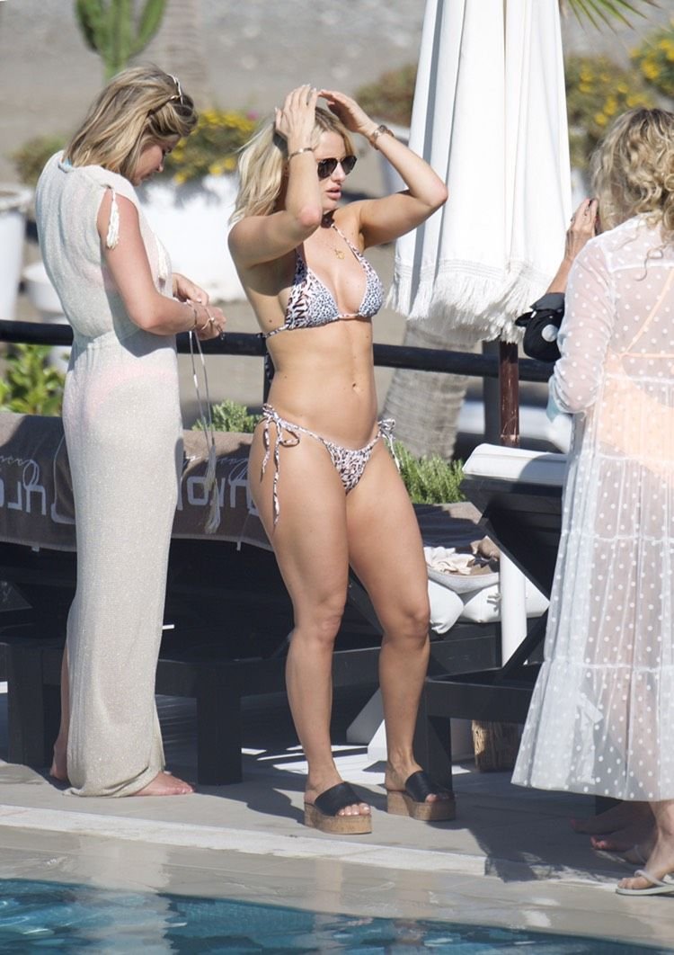 Danielle Armstrong continúa sus vacaciones en Marbella, 27/05/2019. La estrella de televisión de 31 años fue vista en bikini junto a la piscina con amigos.